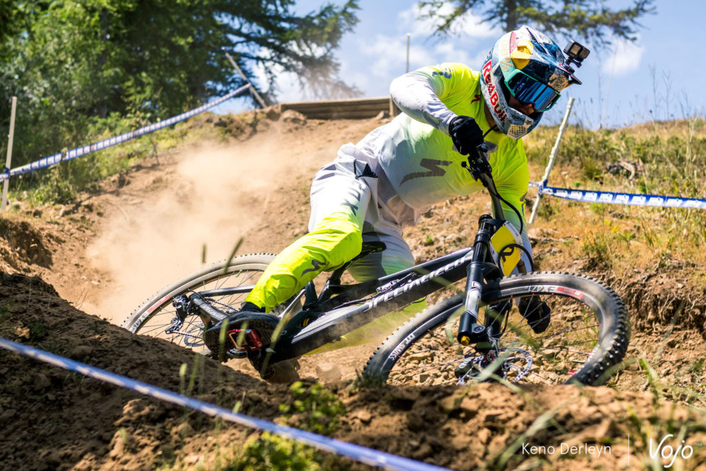Il faut donc être capable de démarrer très fort et de tenir rythme jusqu’en bas pour se montrer rapide sur ce tracé, d’autant que les virages sont souvent serrés et qu’il n’est pas évident de trouver le bon « flow ». C’était d’ailleurs encore plus difficile en milieu de semaine lors des premiers entraînements, mais l’équipe d’organisation a bien travaillé la piste tout au long de l’évènement et a bénéficié en plus d’un petit coup de main de la météo, sous la forme d’un gros orage vendredi après-midi. Au final, si des critiques avait été émises les premiers jours, la version finale du parcours a plutôt satisfait les pilotes.