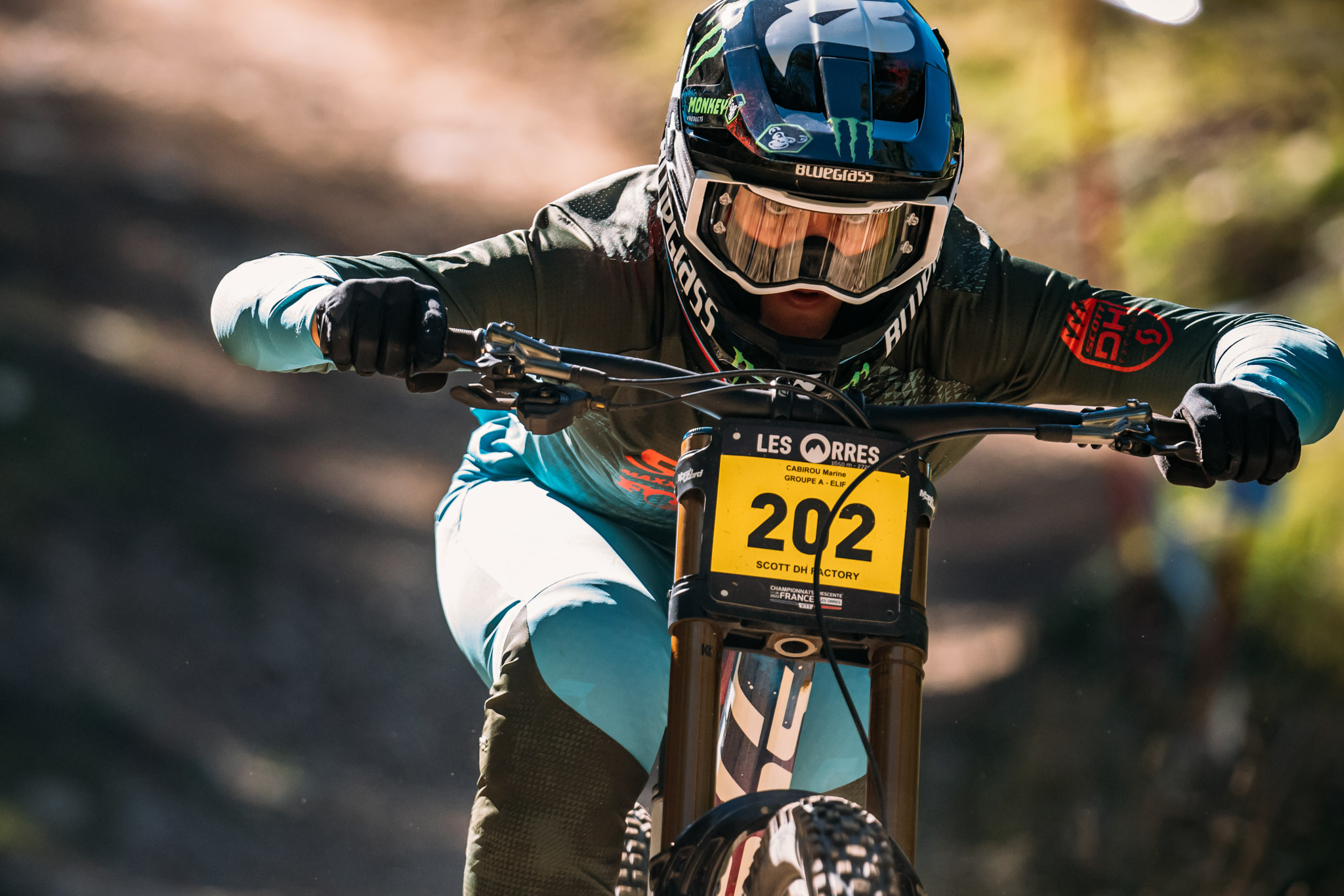 Et ce rival direct n’est autre que Loic Bruni ! Le pilote Specialized s’est vu chaparder la première place à un centième de seconde, franchissant la ligne d’arrivée avec un temps de 3 minutes et 55,04 secondes. On remarque également qu’après une saison internationale comblée de réussite, Loic Bruni profite de la fin de la saison pour s’aligner sur le prototype Specialized déjà aperçu aux mains de Finn Iles.