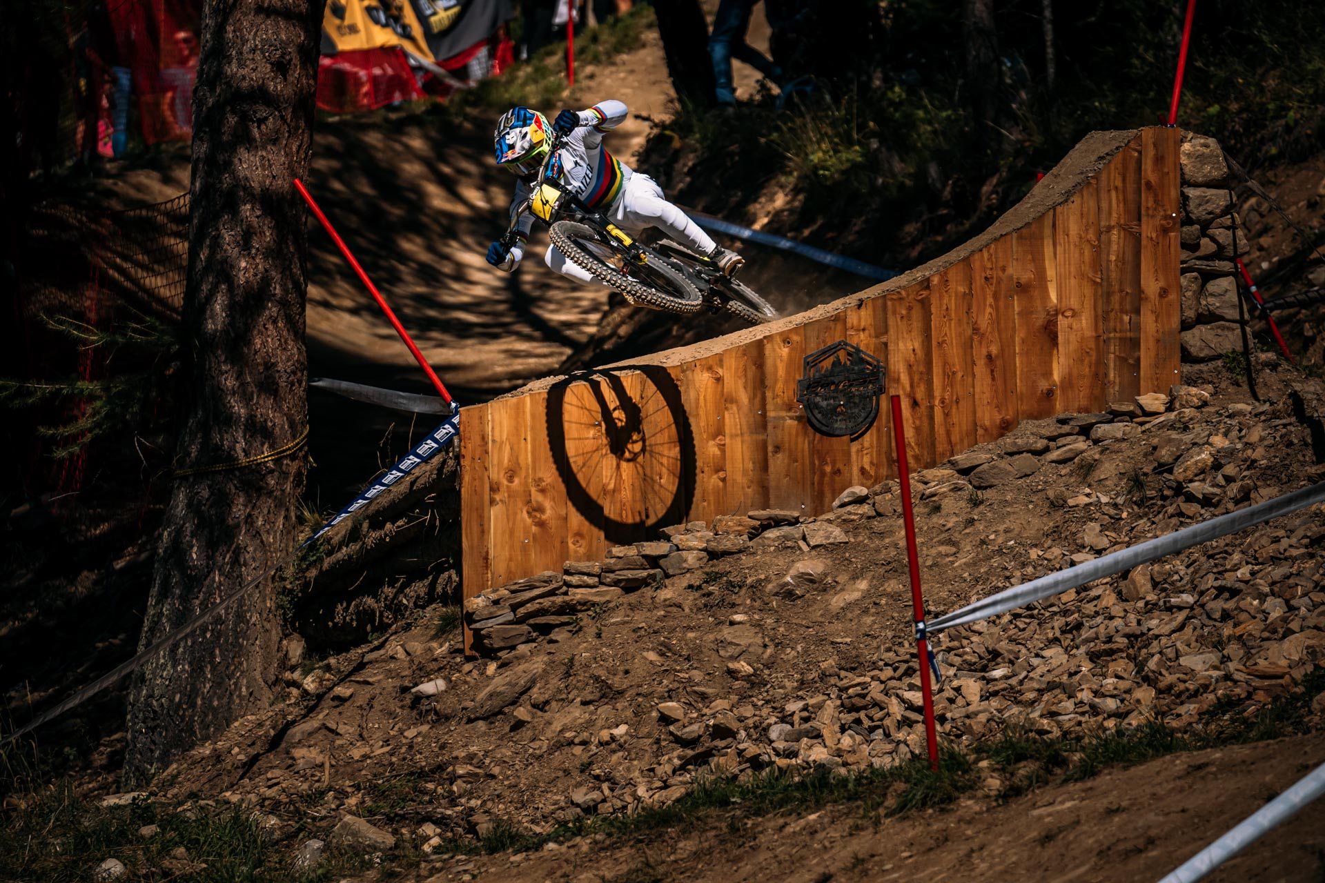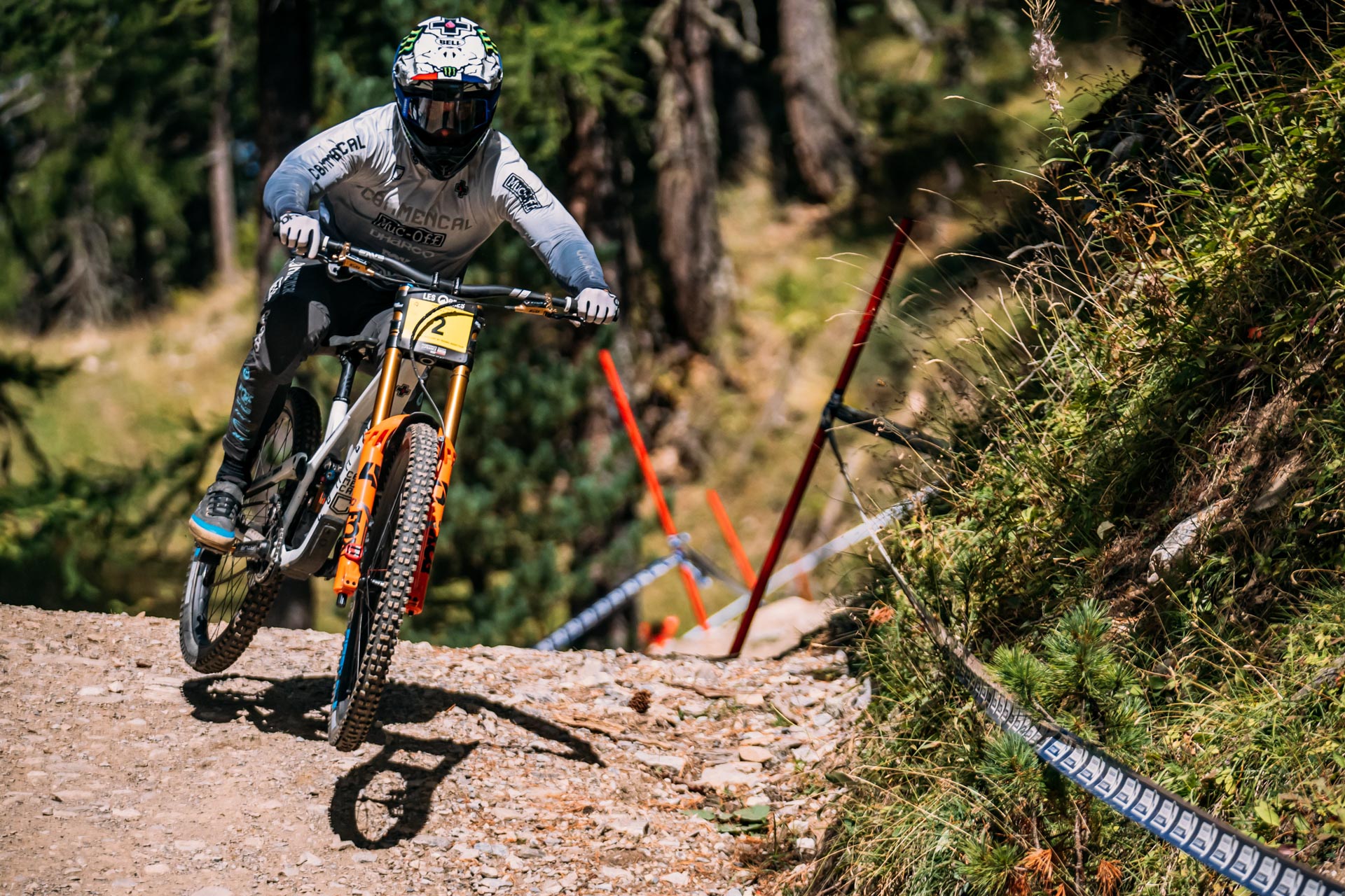 C’est dans une ambiance très conviviale et sur une piste naturelle tout du long que les pilotes se sont livré bataille ce week-end. Le tracé est plutôt technique d’entrée de jeu, avec de la pente et des grandes traversées en dévers. Au-delà d’un pierrier massif qui a posé problème à plusieurs pilotes (notamment Loic Bruni ou Amaury Pierron qui y ont chuté – sans gravité pour les deux pilotes), la piste rejoint le bikepark et ses imposants sauts. De nombreux changements de rythme ont obligé les pilotes à travailler sur leur conservation de vitesse durant l’ensemble de leurs runs.