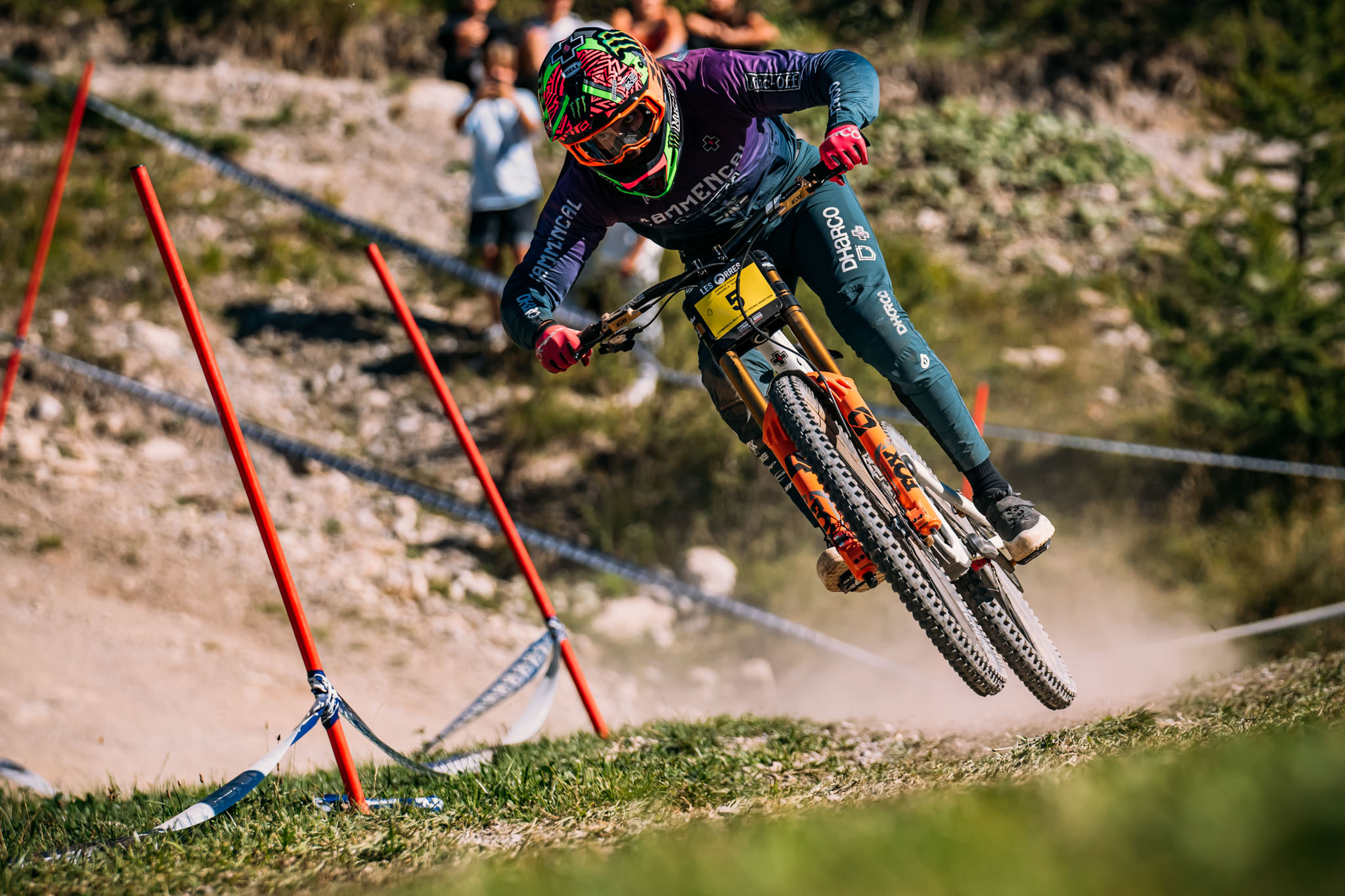 C’est dans une ambiance très conviviale et sur une piste naturelle tout du long que les pilotes se sont livré bataille ce week-end. Le tracé est plutôt technique d’entrée de jeu, avec de la pente et des grandes traversées en dévers. Au-delà d’un pierrier massif qui a posé problème à plusieurs pilotes (notamment Loic Bruni ou Amaury Pierron qui y ont chuté – sans gravité pour les deux pilotes), la piste rejoint le bikepark et ses imposants sauts. De nombreux changements de rythme ont obligé les pilotes à travailler sur leur conservation de vitesse durant l’ensemble de leurs runs.
