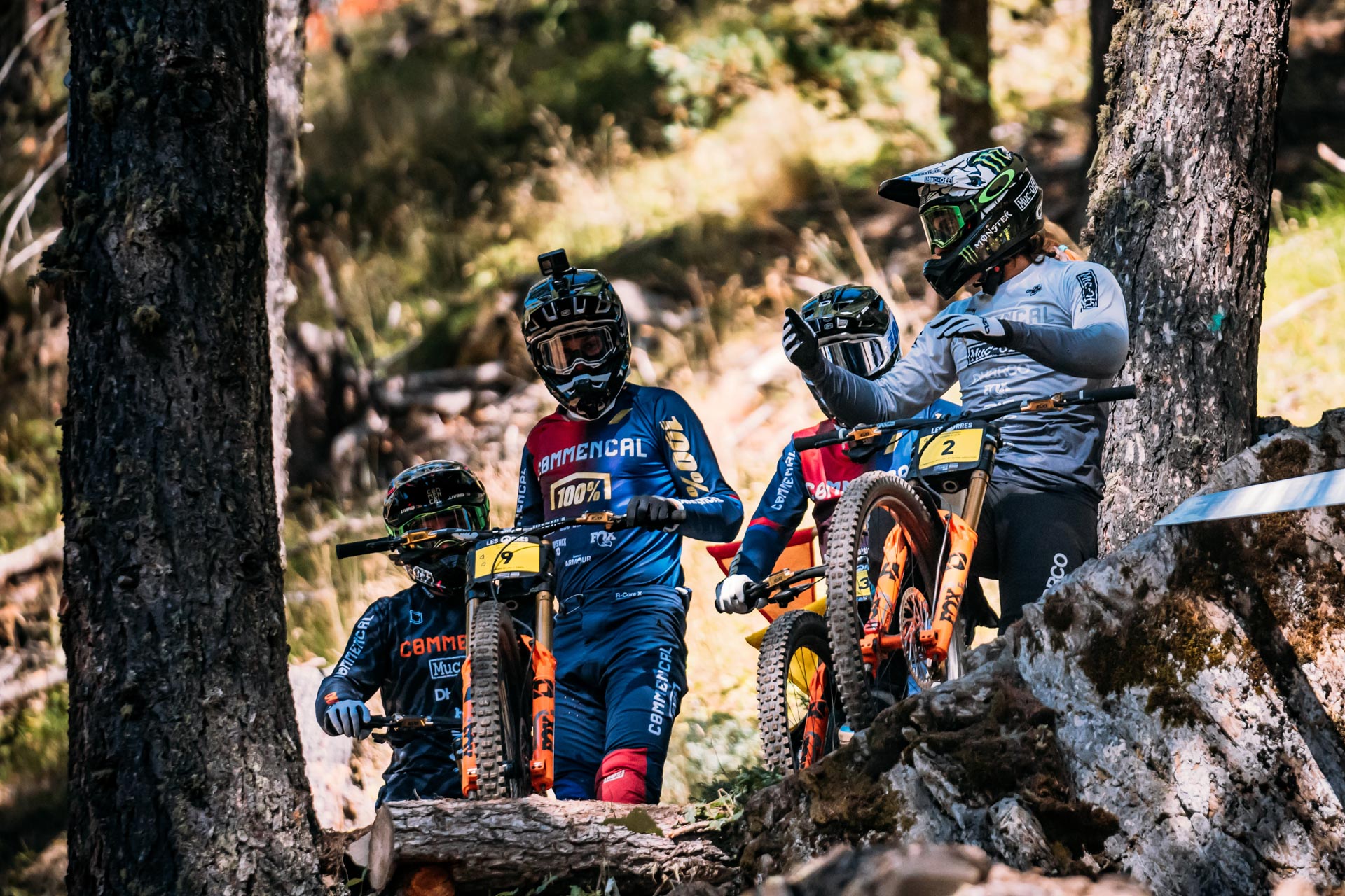 Chez les hommes, le plateau était également relevé, malgré la fatigue générale des pilotes internationaux après 3 semaines de course ! C’est Antoine Vidal qui signait le meilleur temps lors de la séance de placement de ce vendredi, devant un solide Benoit Coulanges et le pilote Commencal-100%, Hugo Frixtalon. Au départ, nous retrouvions également le trio victorieux des championnats du monde aux Gets : Loic Bruni, Amaury Pierron et Loris Vergier !