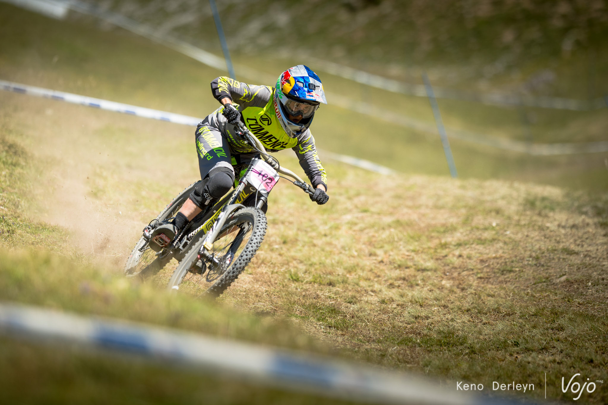 Morgane Charre s’est rapprochée de la pilote Commencal-Vallnord sans toutefois trop la déranger. Elle termine à 5 secondes de cette dernière.
