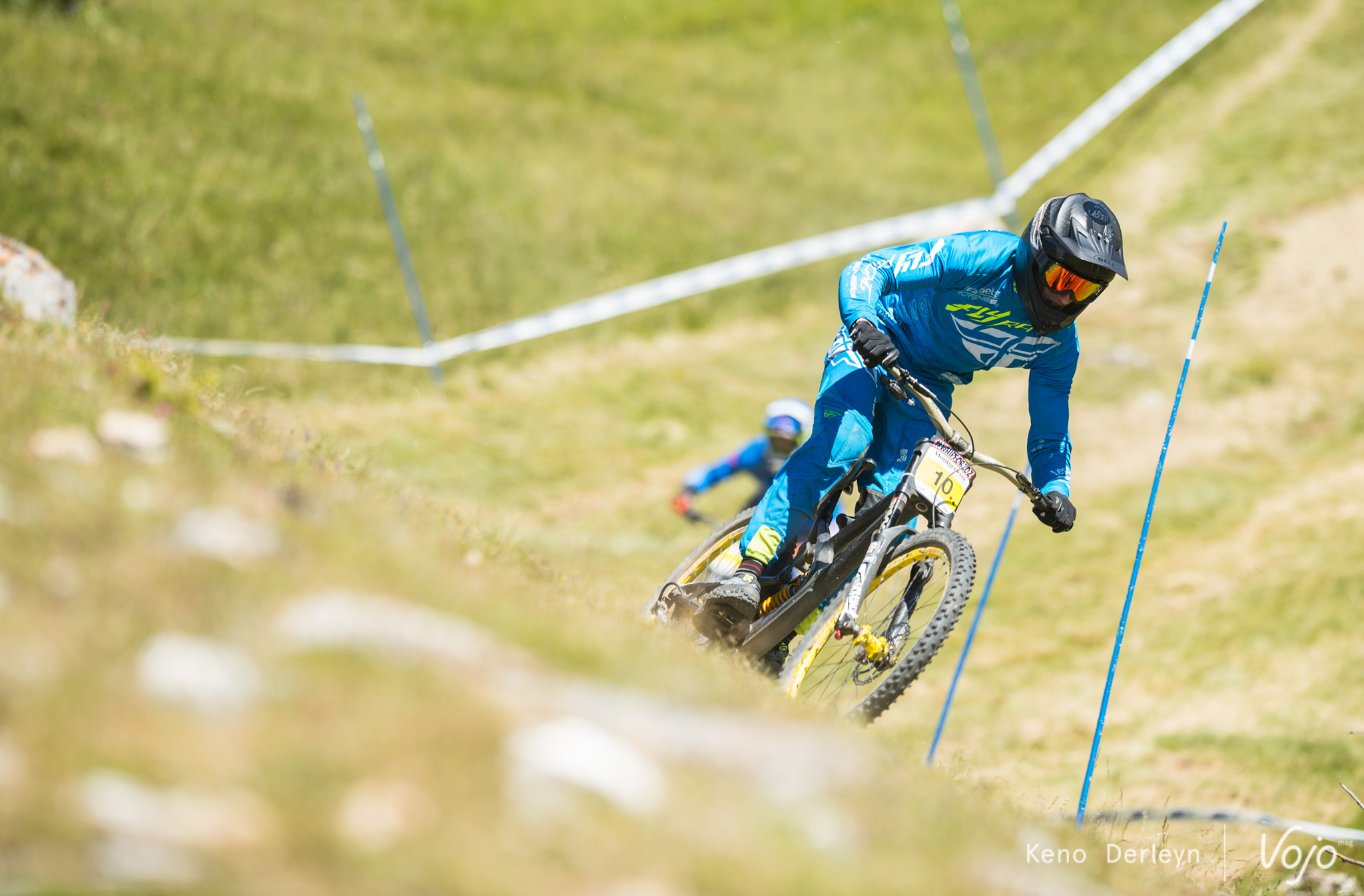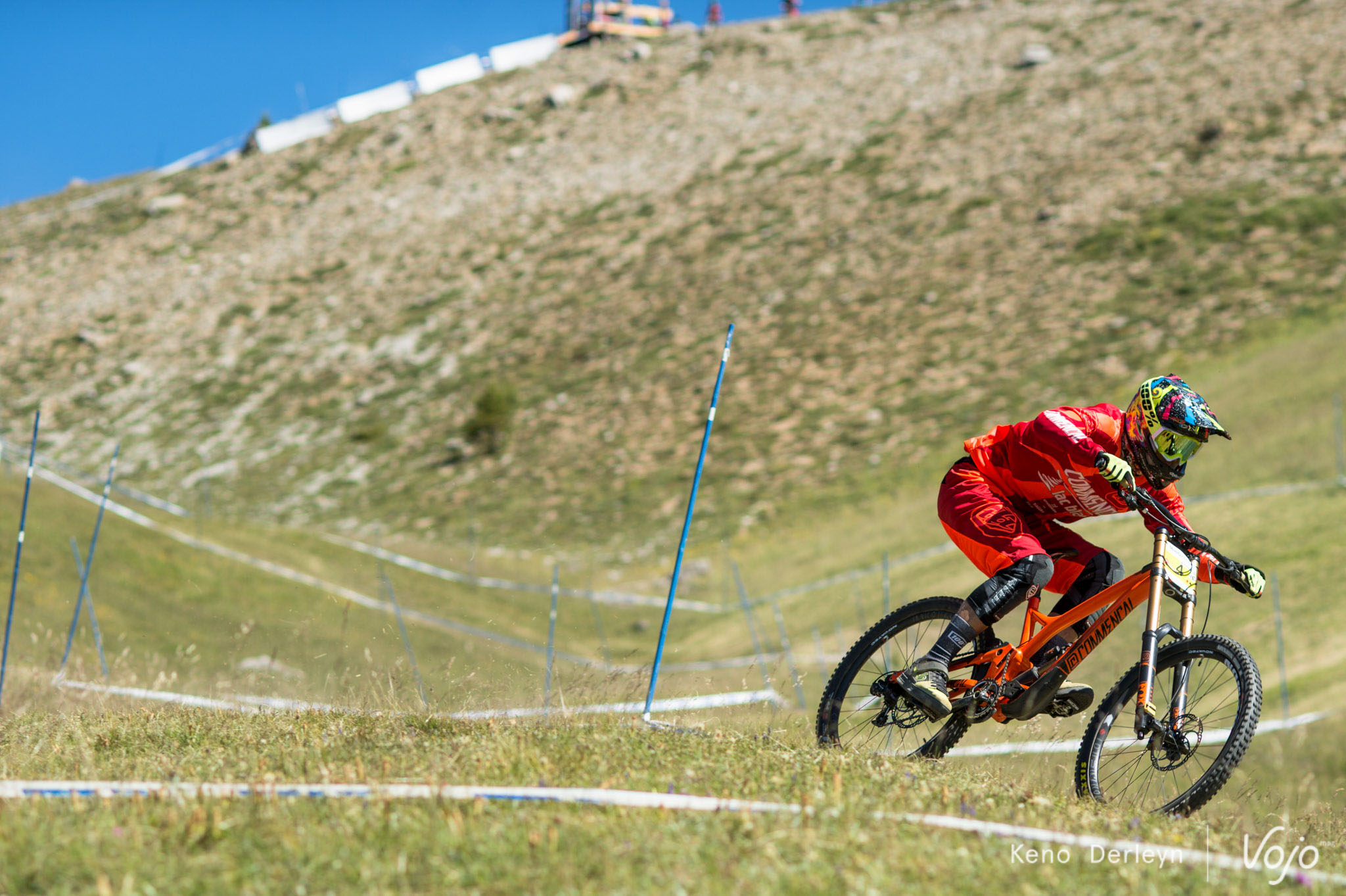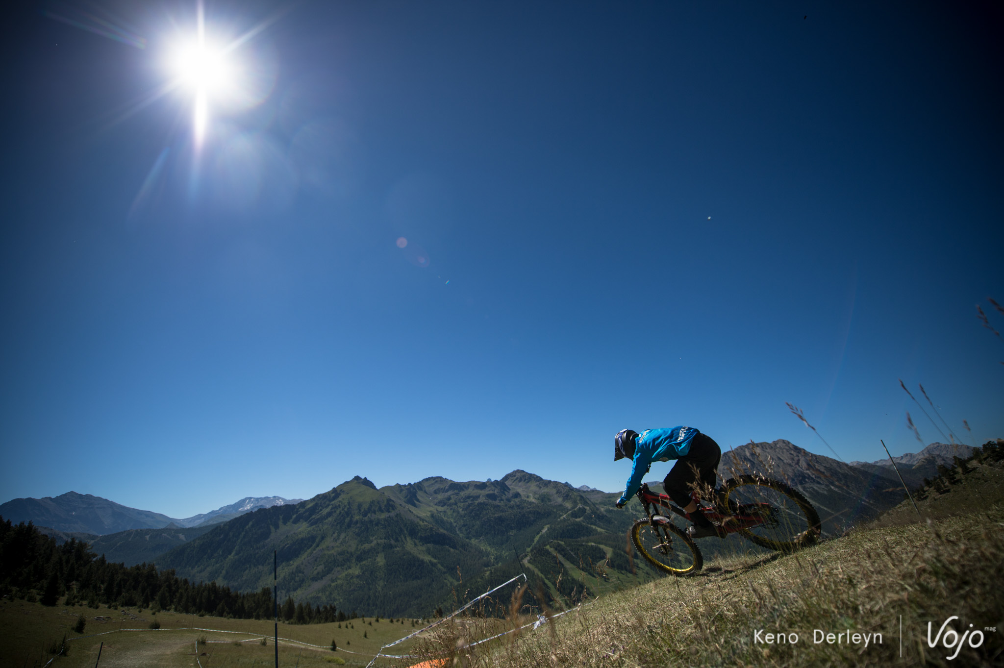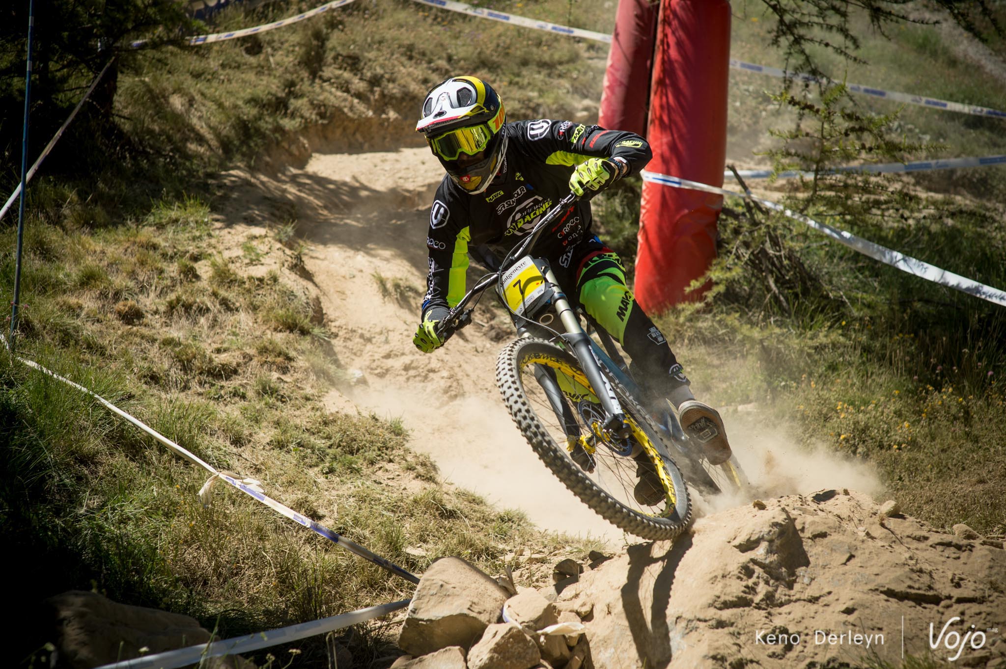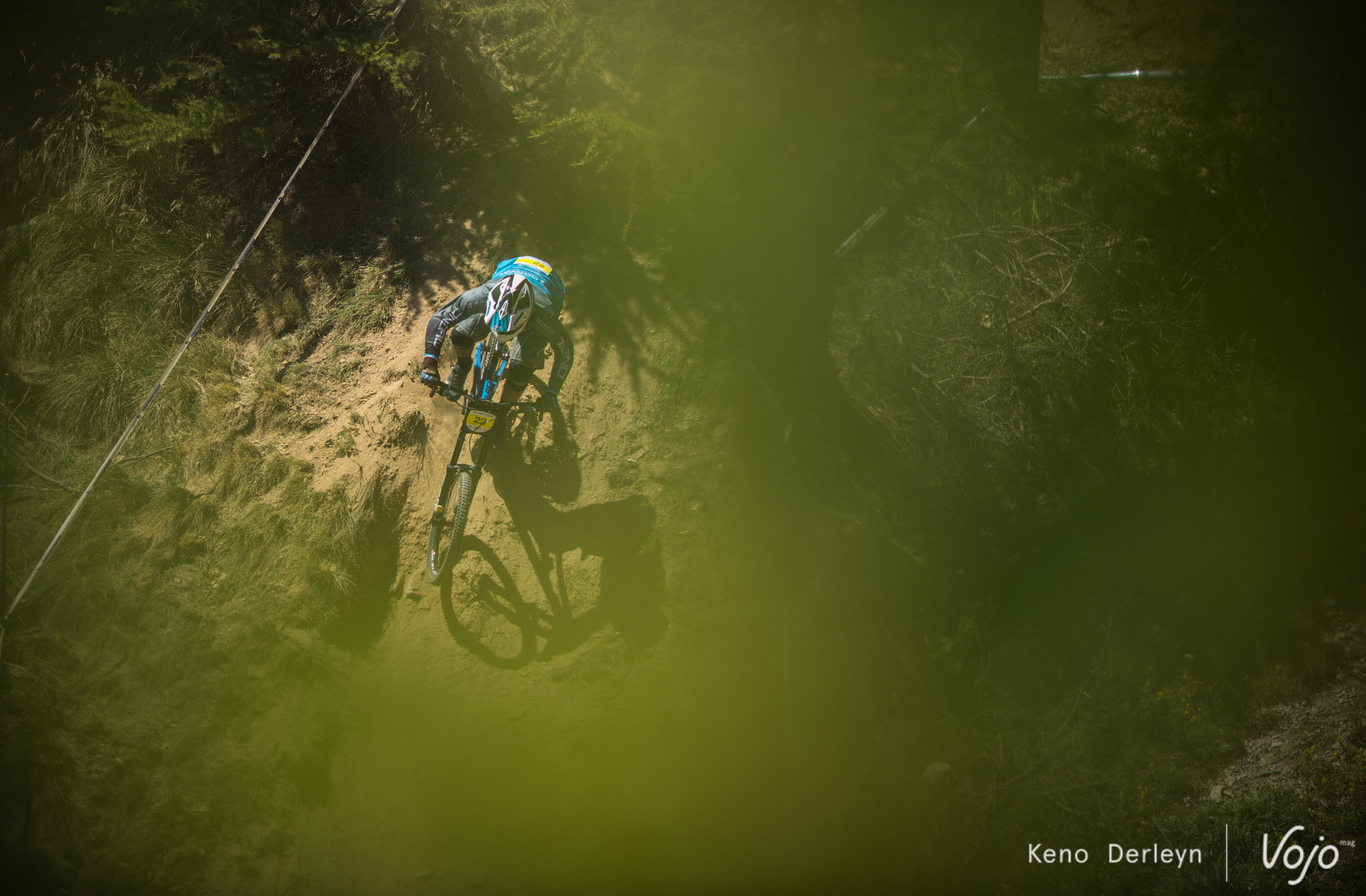 Derrière lui, Amaury Pierron prouve que sa blessure australienne n’est plus qu’un lointain souvenir. Il est à une seconde du team manager de l’équipe Commencal Vallnord.