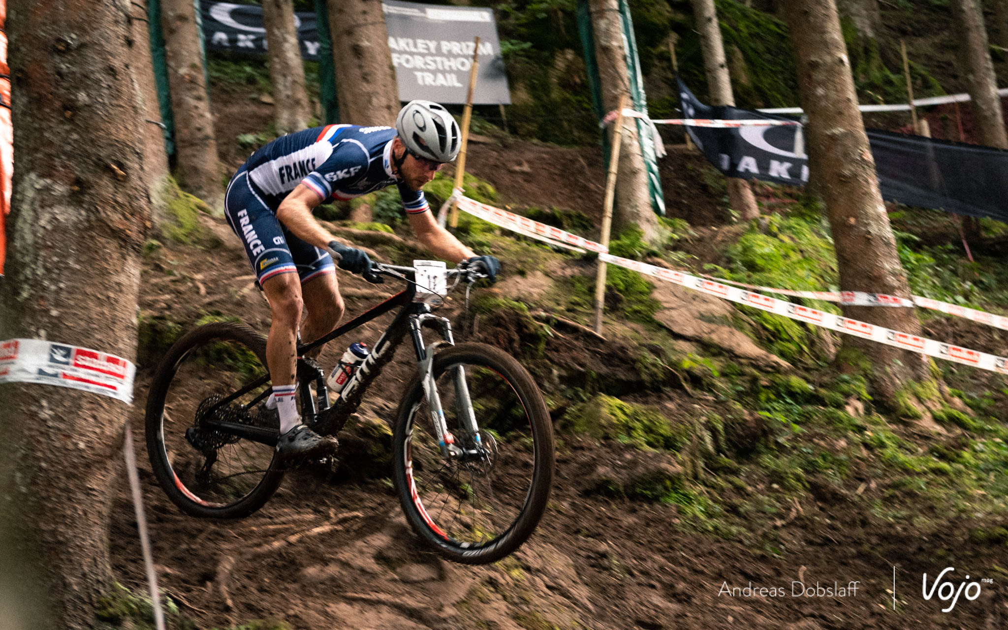 Titouan Carod, le dernier homme à résister aux accélérations et changements de rythmes incessants en montée comme en descente de Mathias Flueckiger, prend la troisième place. Une médaille qui a des allures de cerise sur le gâteau pour l’équipe de France, déjà auréolée de deux titres mondiaux plus tôt dans la journée avec Pauline Ferrand-Prévot chez les Elites Dames et Loana Lecomte chez les Espoirs Dames.