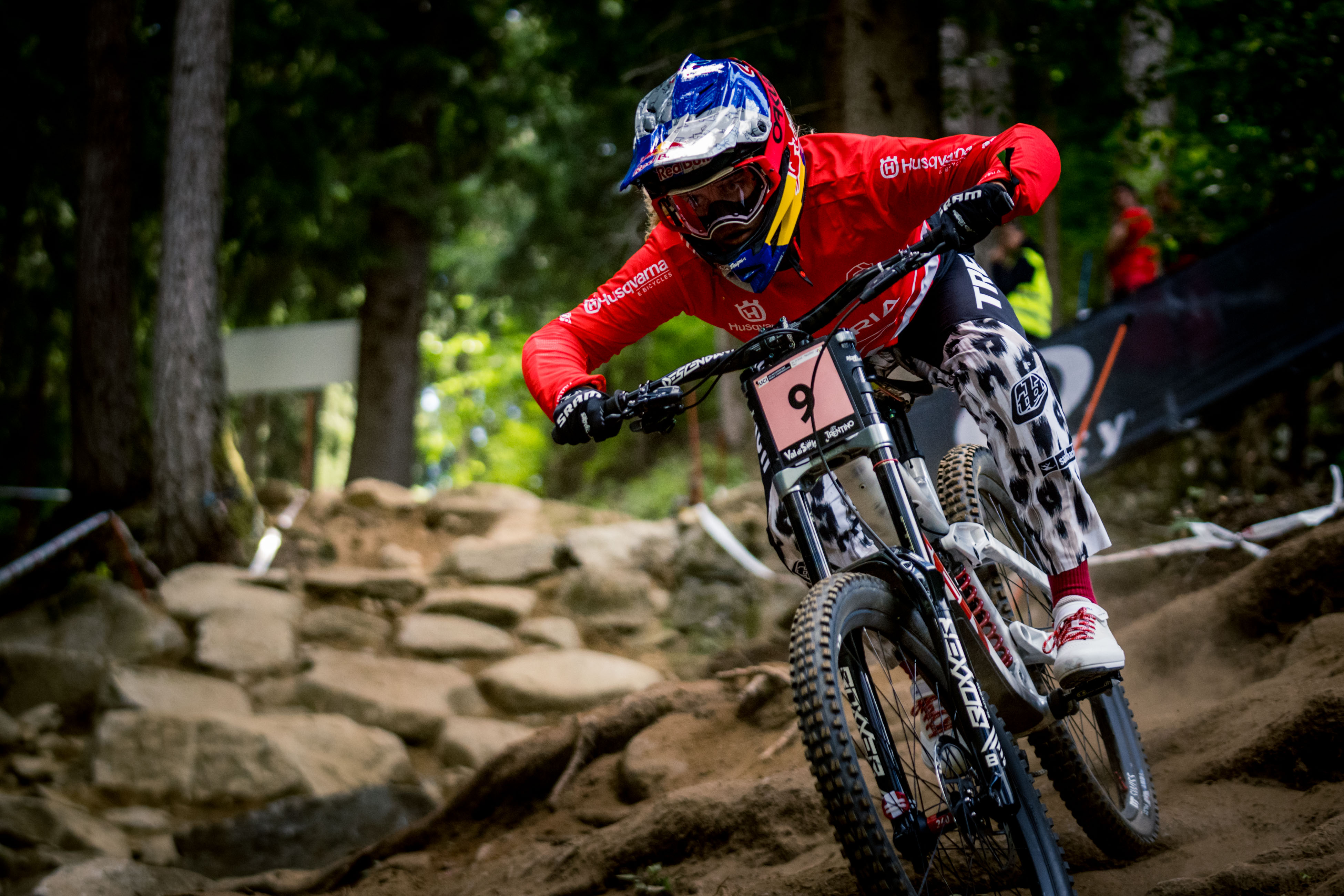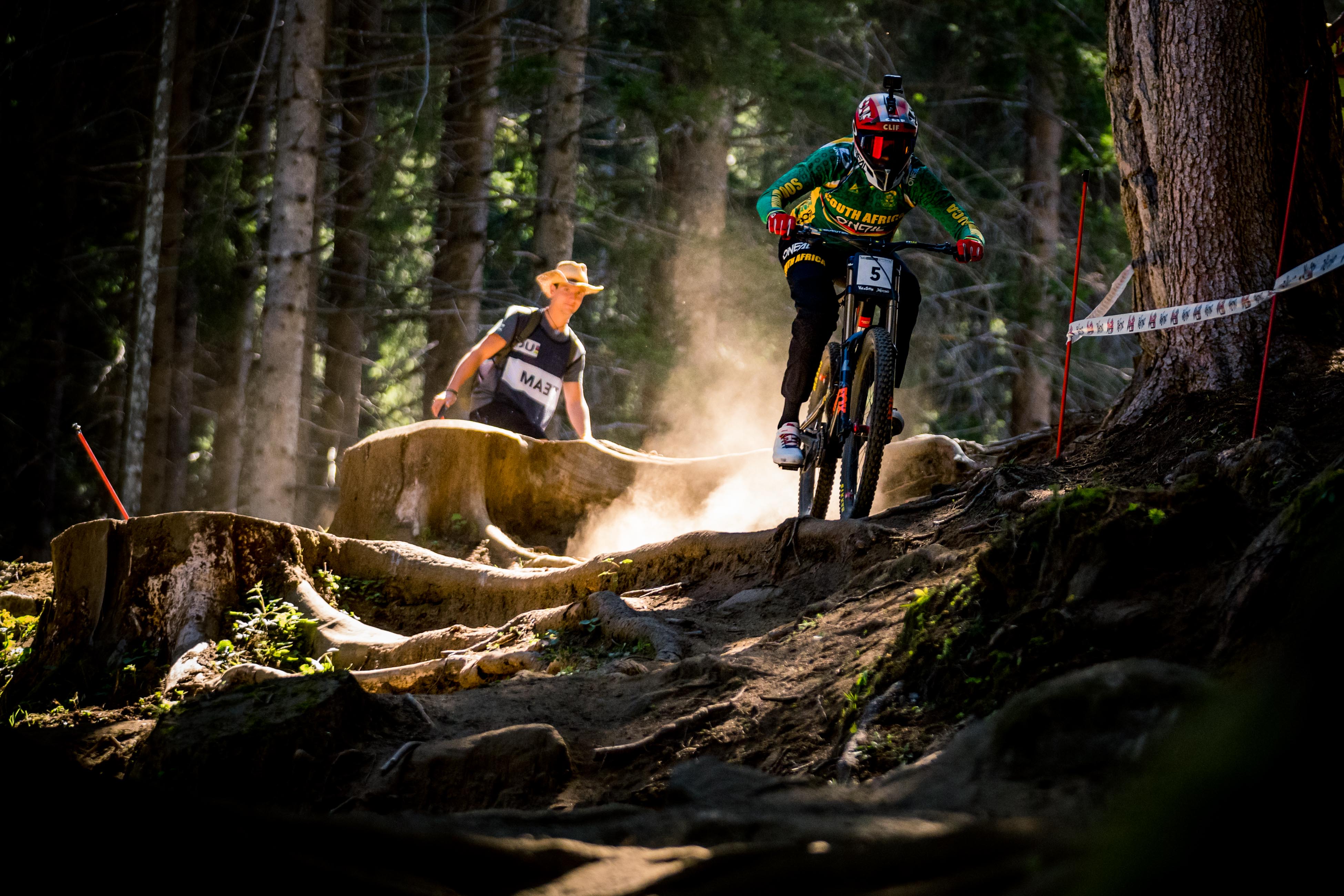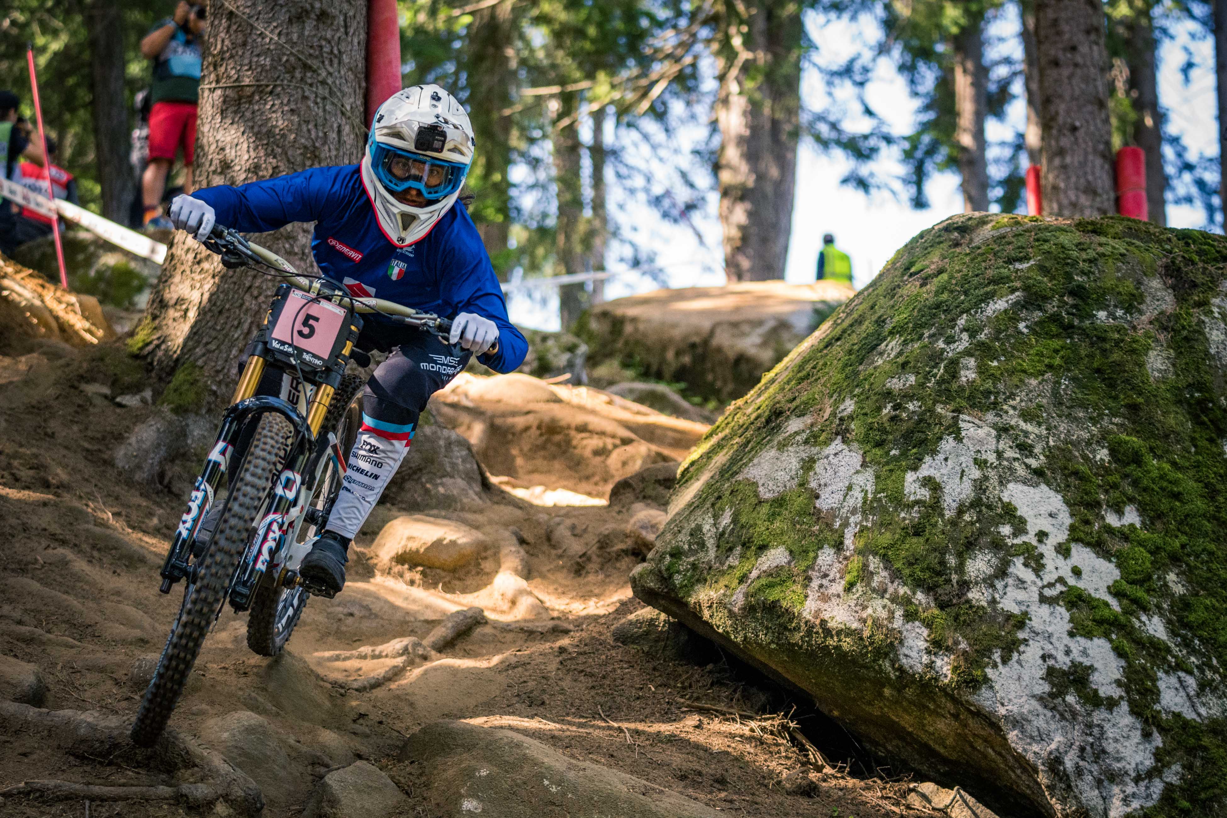 Un run de quelques minutes à peine, et au bout, la gloire et le droit d’arborer pendant un an le maillot distinctif le plus convoité qui soit. Telle est la magie de la descente aux championnats du monde ! Quand, en plus, le rendez-vous de l’année pour les descendeurs se dispute sur une piste hors norme comme celle de Val di Sole – rapide, rocheuse mais surtout très pentue -, l’excitation était à son comble pour les pilotes comme pour les fans…