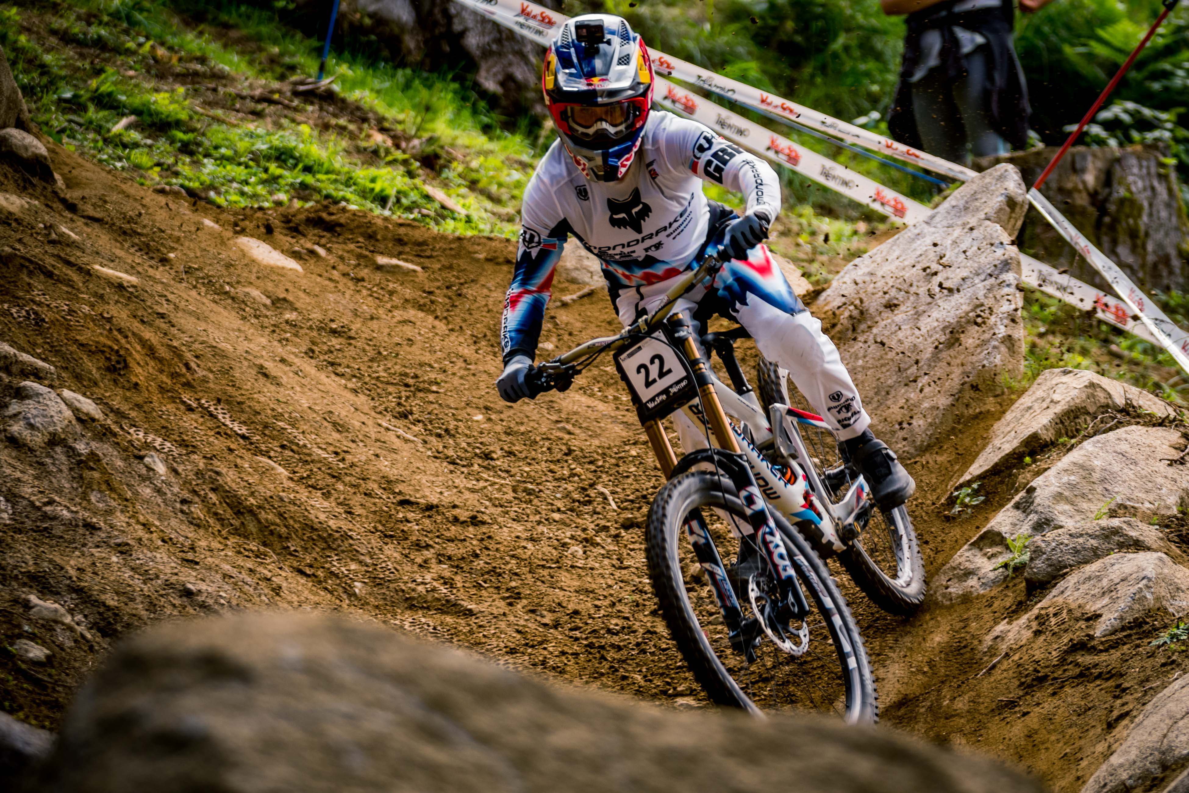 Si quelqu’un sait comment sortir un run victorieux en championnat du monde à Val di Sole, c’est bien Danny Hart, lui qui avait décroché son 2e titre mondial sur la piste italienne en 2016. Agressif et efficace, il explose le temps de Kolb de 2.539s !