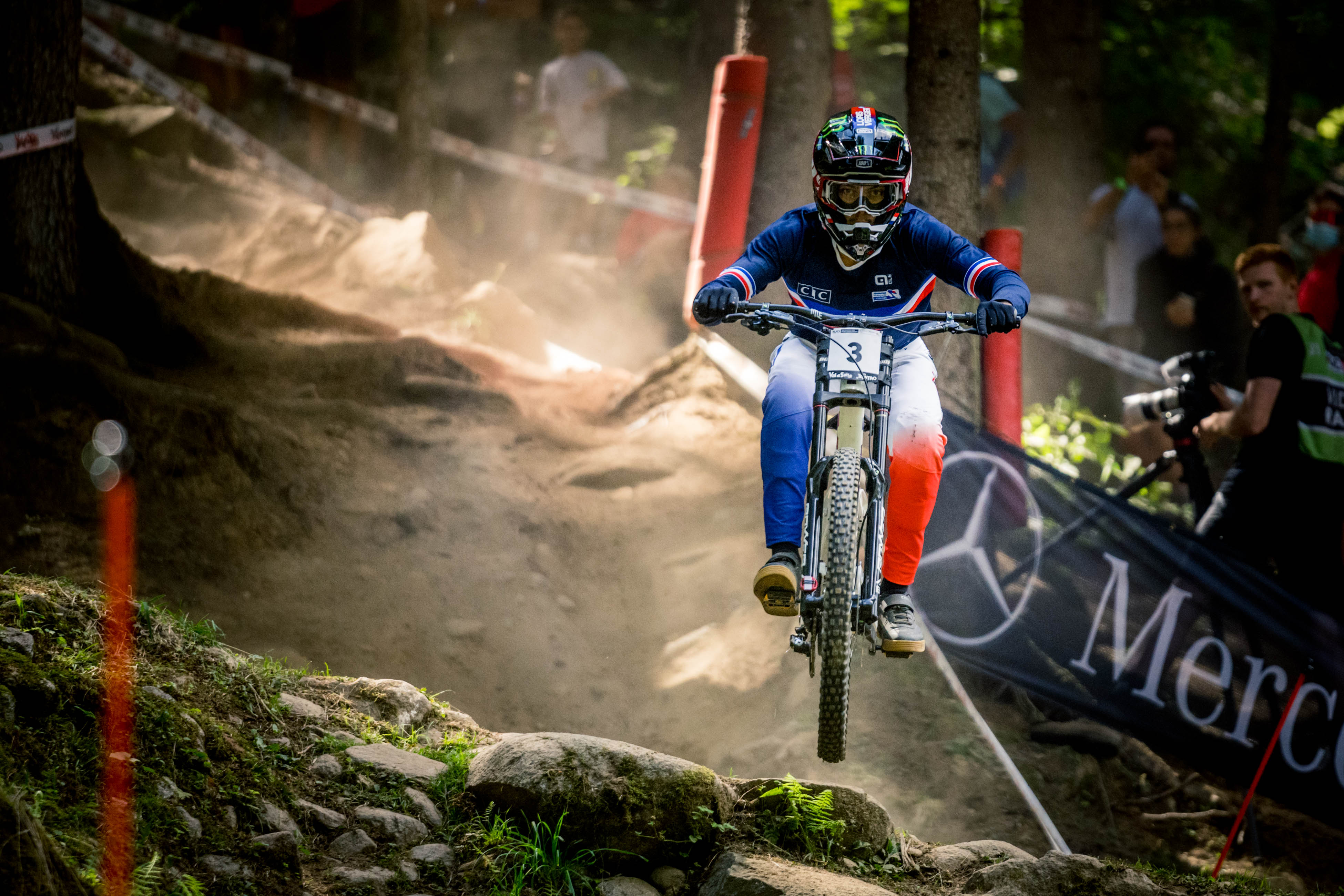 14h10, nous y voilà, c’est l’heure de l’apothéose et de l’ultime finale de ces championnats du monde 2021 ! Trois Français seront les derniers à s’élancer : Loïc Bruni, Loris Vergier et enfin Thibaut Dapréla. Mais avant ça, pas mal d’autres candidats au titre mondial. En vrac, Greg Minnaar, Laurie Greenland, Danny Hart, Troy Brosnan ou encore le champion sortant, Reece Wilson. Et au-delà de ces grands noms, bien sûr, un paquet de pilotes tout simplement transcendés par l’enjeu…