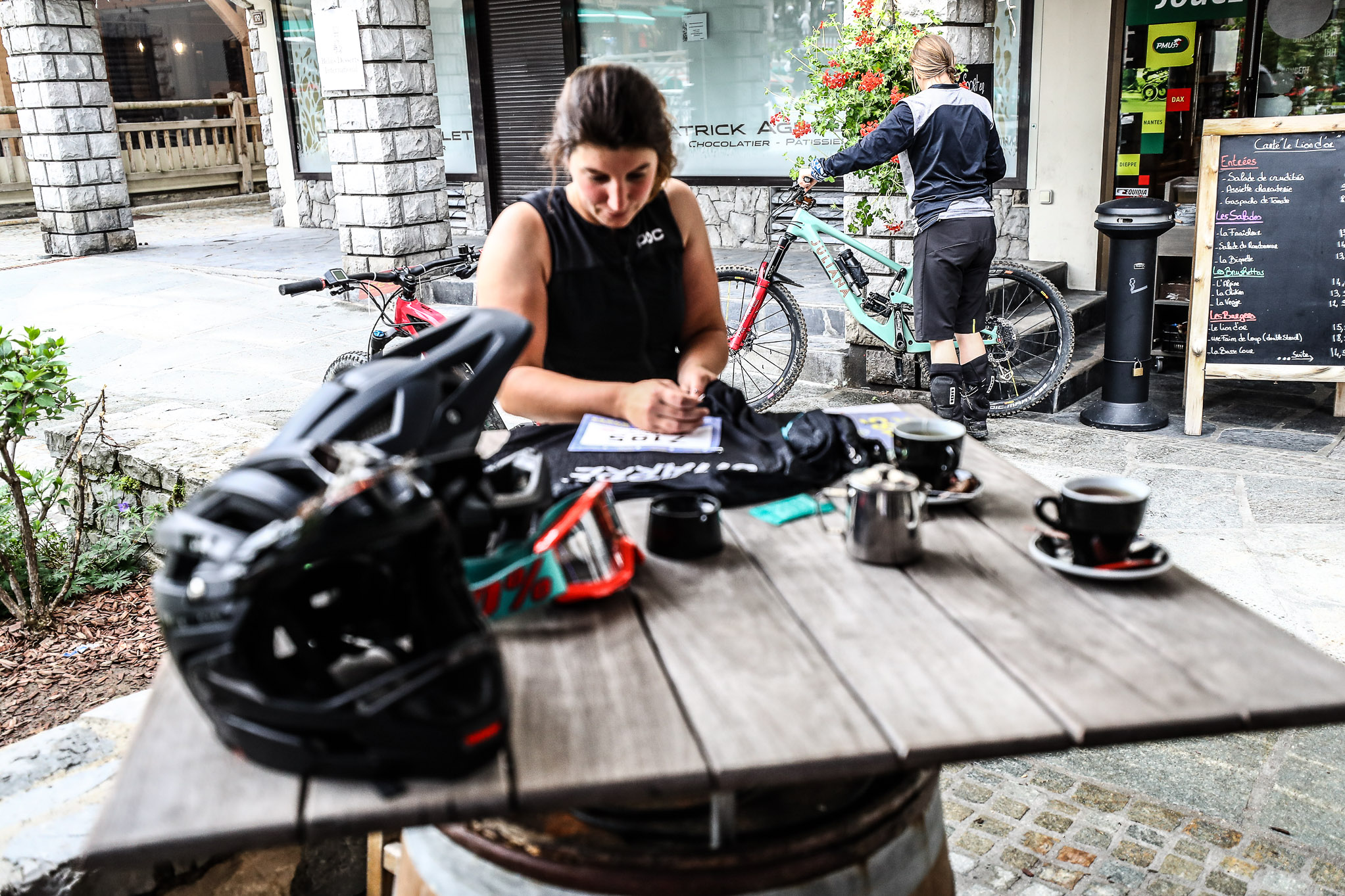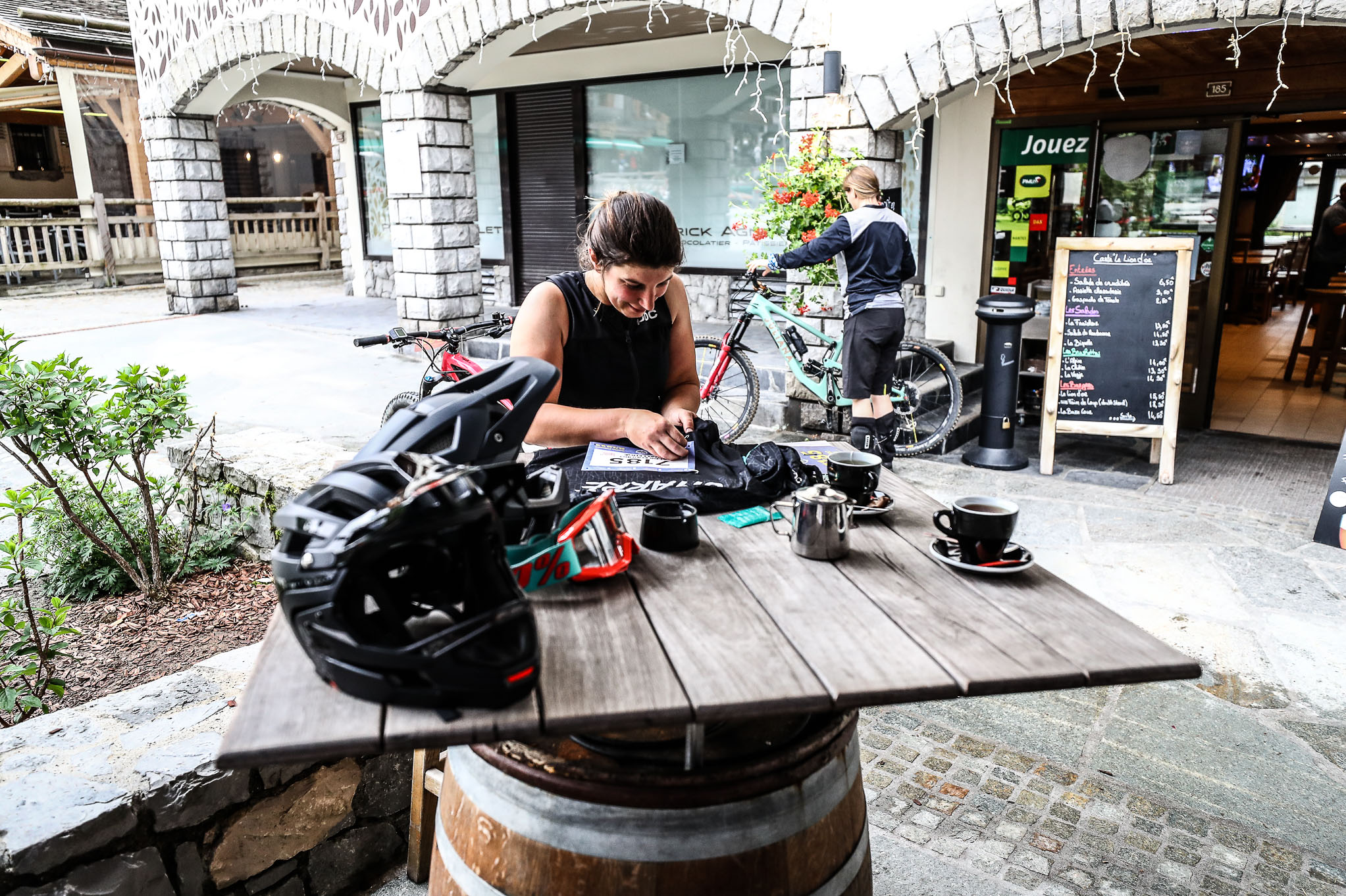 Et si, le vendredi, premier jour de l’Enduro Challenge, les marathoniens sont partis à 8h30, les enduristes, eux, ont pu tranquillement finir de se préparer avant le coup d’envoi, à 11h30. L’occasion de retrouver Morgane au bar du Lion, en plein cœur du village, spot de rendez-vous privilégié, et de finir d’épingler les dossards. « – Un petit thé, Momo ? – À la menthe, si possible. » Si les risques d’orages nous épargnaient, ça promettait d’être vraiment sympa, cet enduro.
