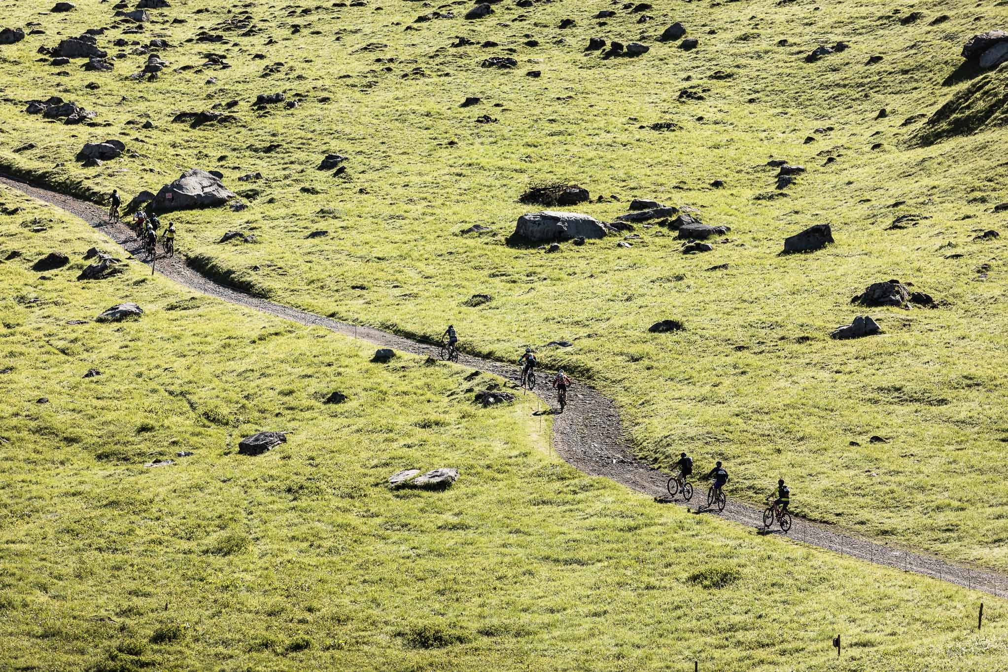 Mais revenons à nos moutons et à notre Morgane car, sur l’Enduro Challenge, de la montée, il n’y en avait pas des masses. Enfin si, mais pas à la pédale. Avec 8 spéciales, pour 30 km de sections chronométrées et 4706 m de D-, le but était surtout de mettre en avant les pistes d’enduro/all-mountain tracées et entretenues avec amour par Jonathan Duvillard, shaper de La Clusaz, et Kilian Bron (au micro).