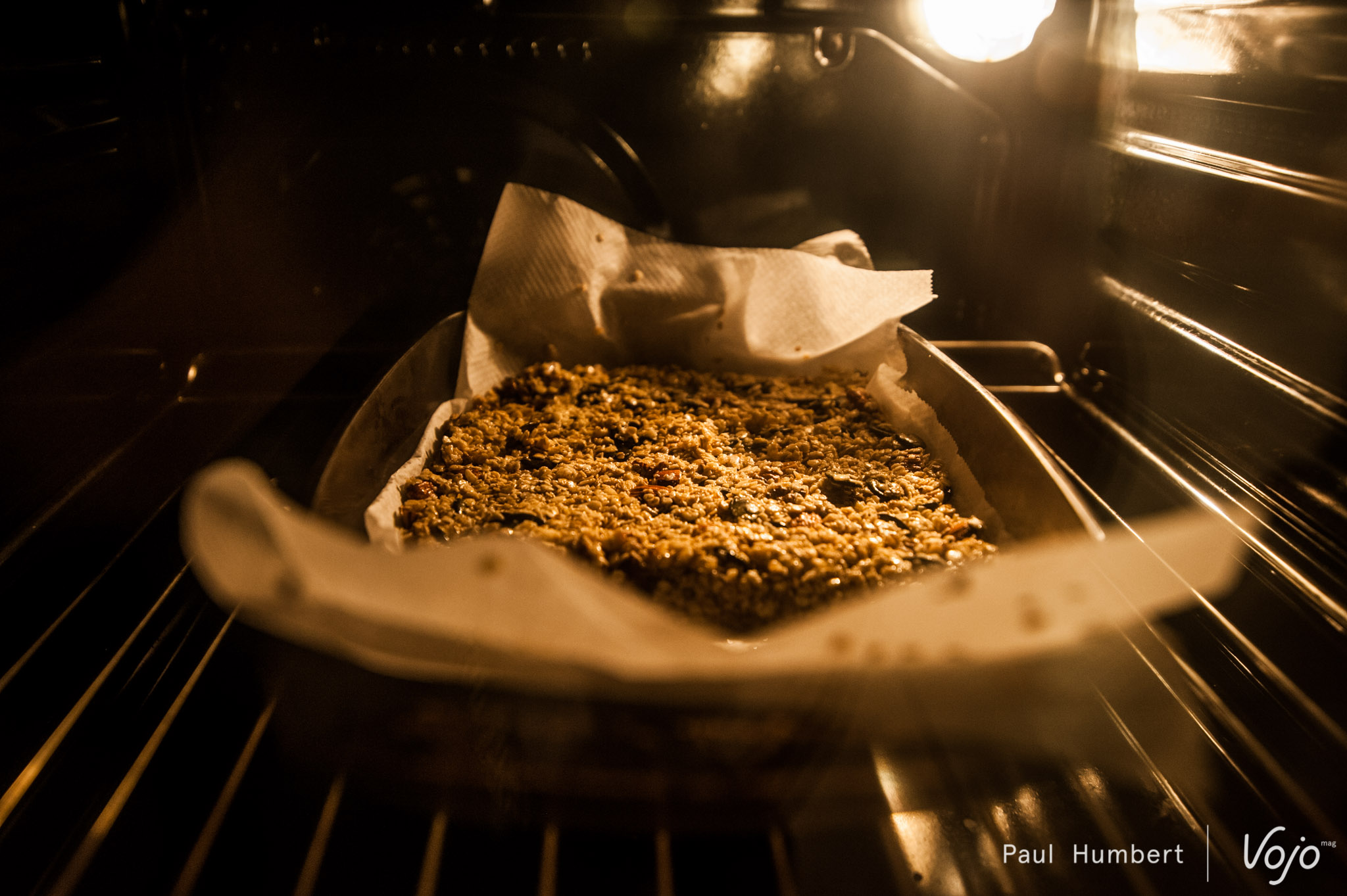 - Verser le sirop d’agave et l’huile au mélange (l’alternative Vojo : utiliser de l’huile de coco pour plus de liant et pour un peu plus de goût)