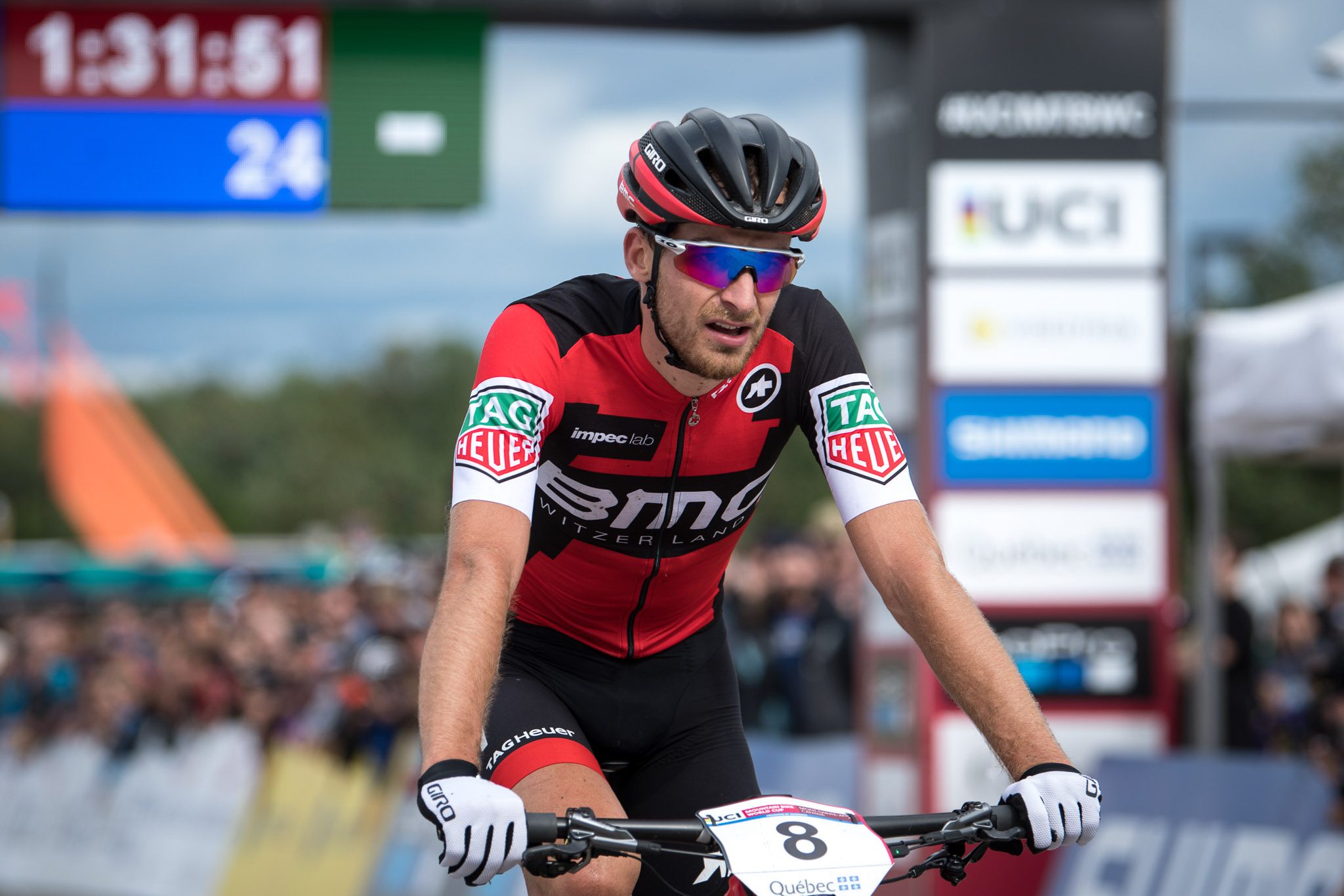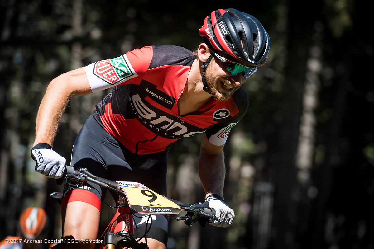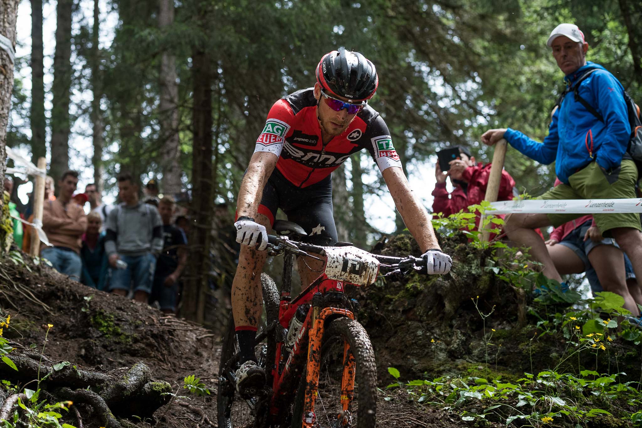 Je fais un très bon départ et me retrouve très vite en 2ème position dans la roue de Nino (Schurter). Je fais toute la course dans sa roue, c’est juste incroyable de rouler devant avec lui et de jouer le podium ! A deux tours de l’arrivée je ne parviens pas à suivre ses attaques et me retrouve deuxième pendant un tour et demi.