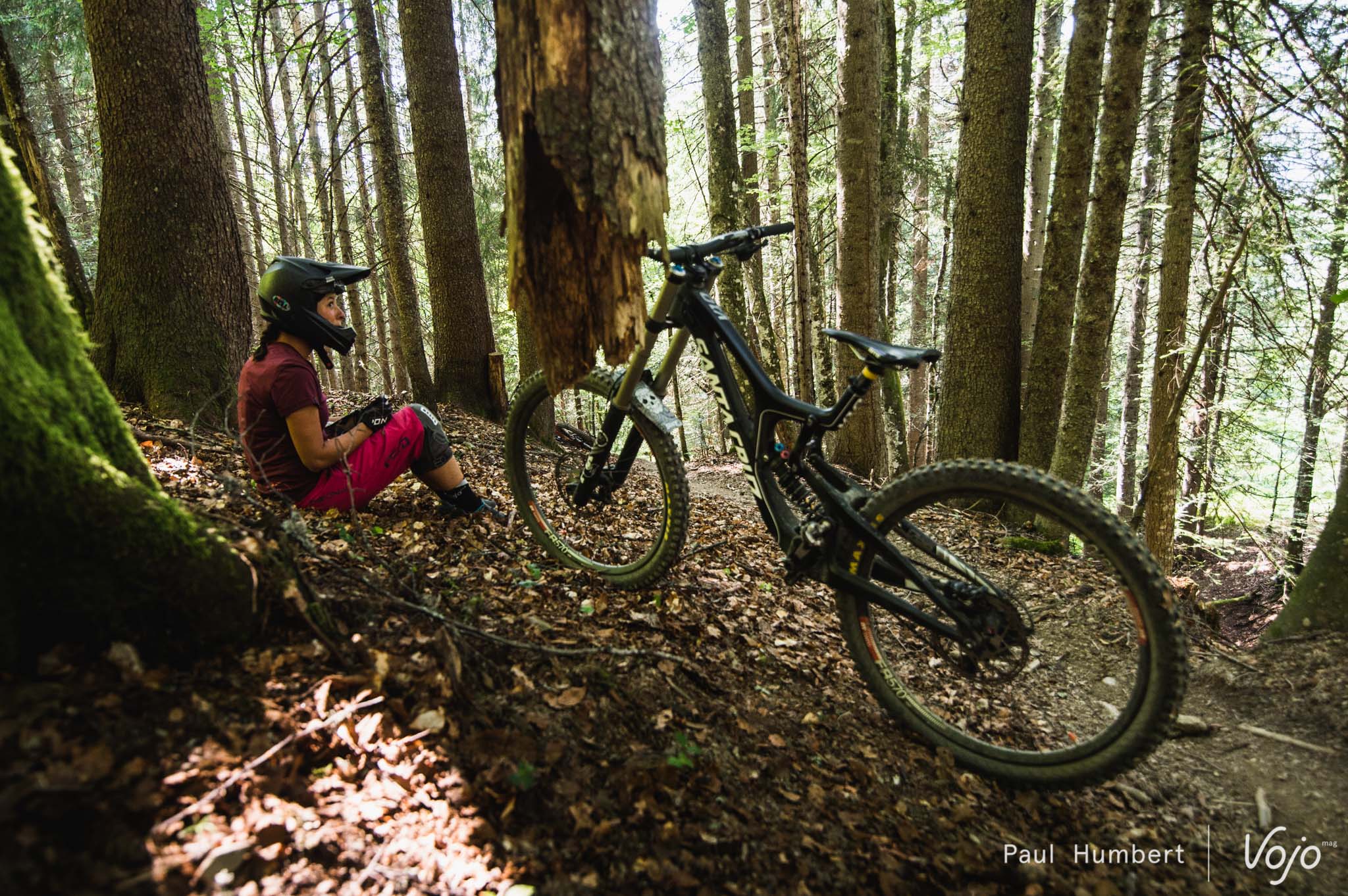 À ma grande surprise, je suis globalement contente d’avoir pu rouler sur ce vélo. C’est peut être dans la tête, mais plus le vélo est gros, plus j’ose engager. J’ai réussi à enchaîner des passages que je n’aurais jamais imaginé faire avec un enduro. J’ai trouvé mes marques assez rapidement et ça a été une chouette première expérience en vélo de descente. C’est sûr que quelques jours ne suffisent pas pour exploiter tout le potentiel du Santa Cruz mais je serais curieuse de voir les progrès que je pourrais faire sur la durée, notamment au niveau des sauts et de la fluidité en général. C’est également un bon élément de progression dans le sens où, d’après moi, la pratique avec les deux vélos est complémentaire : l’enduro apporte la technique pour la descente, et la descente apporte la vitesse pour l’enduro !