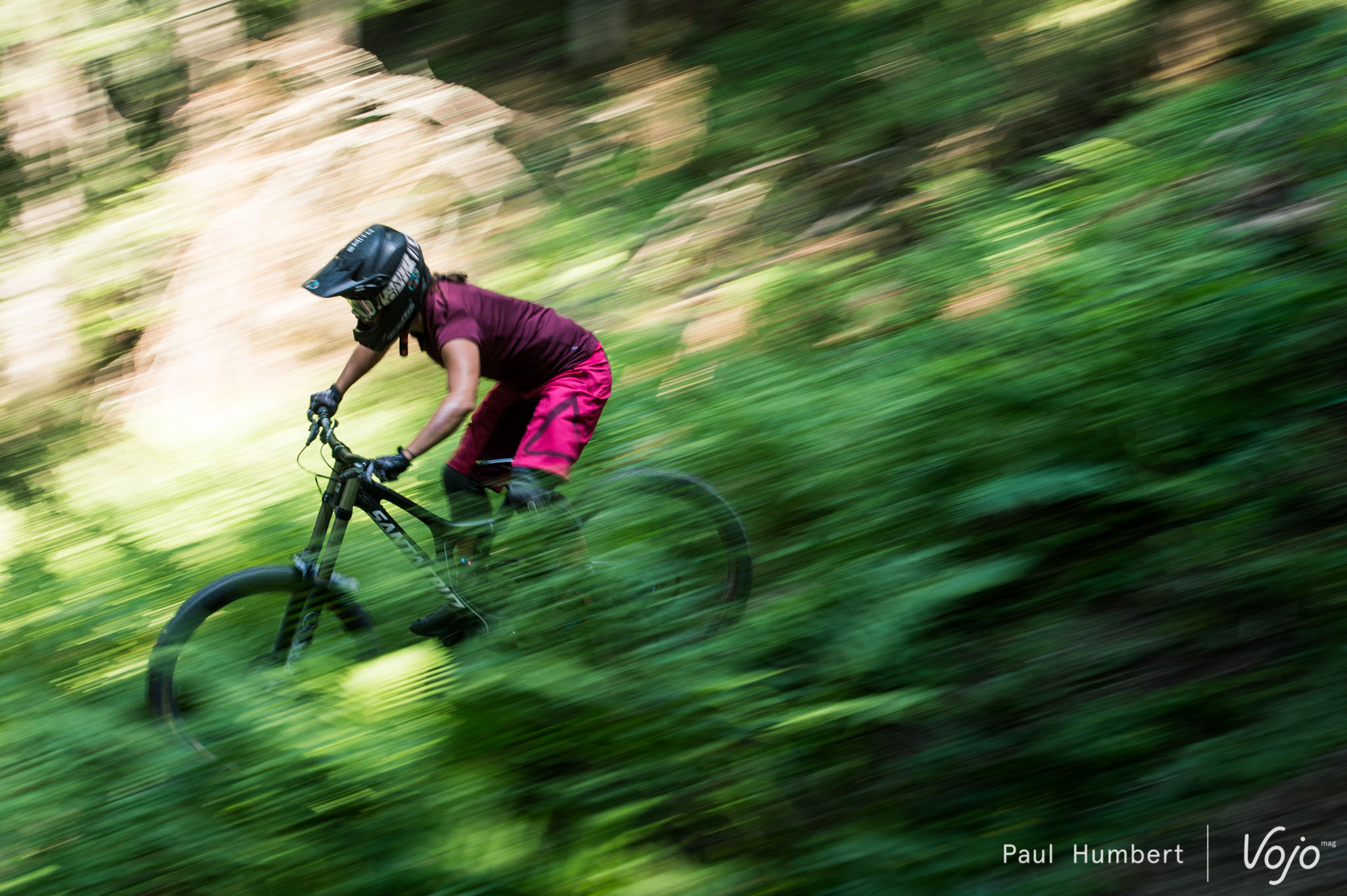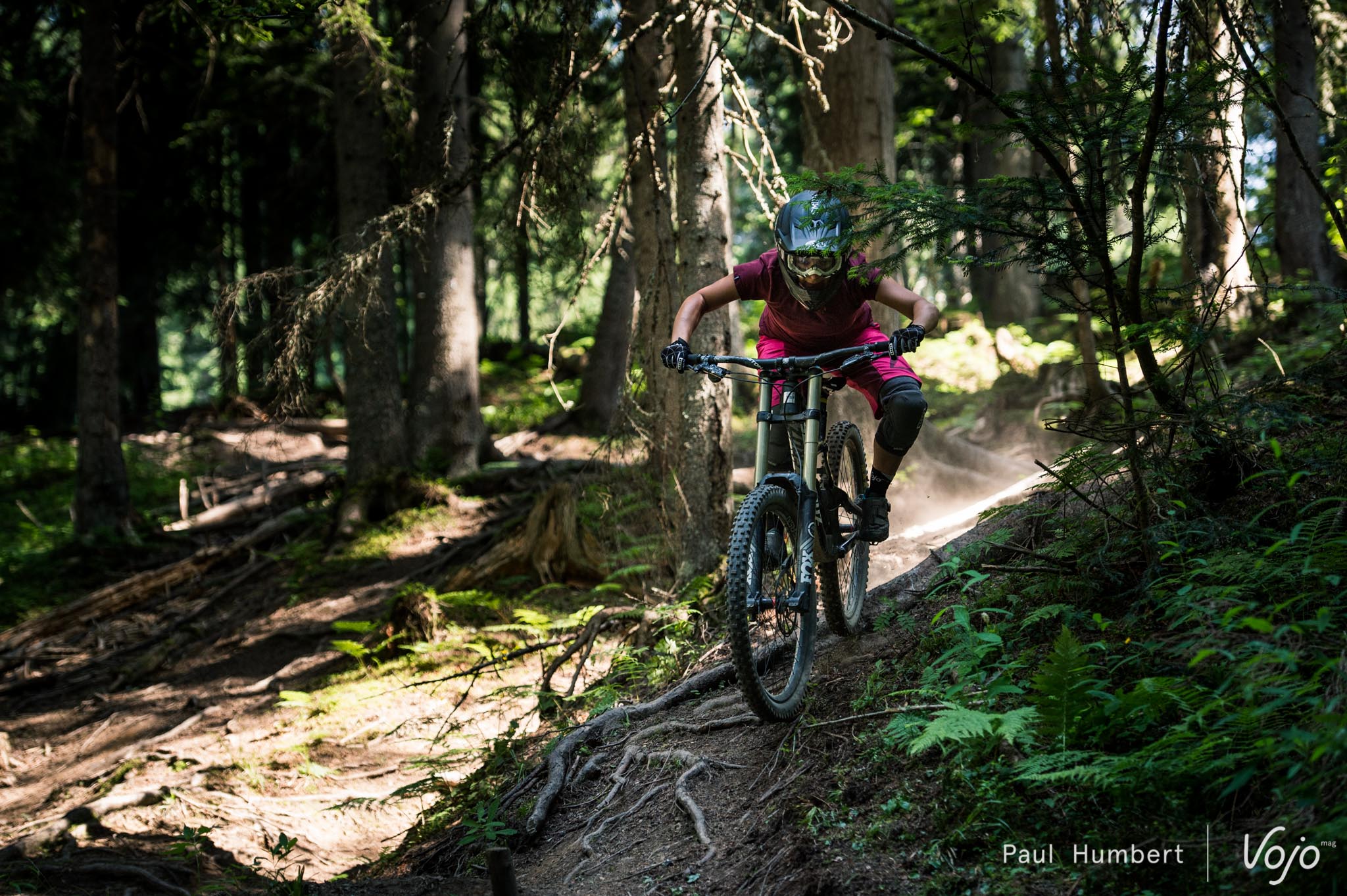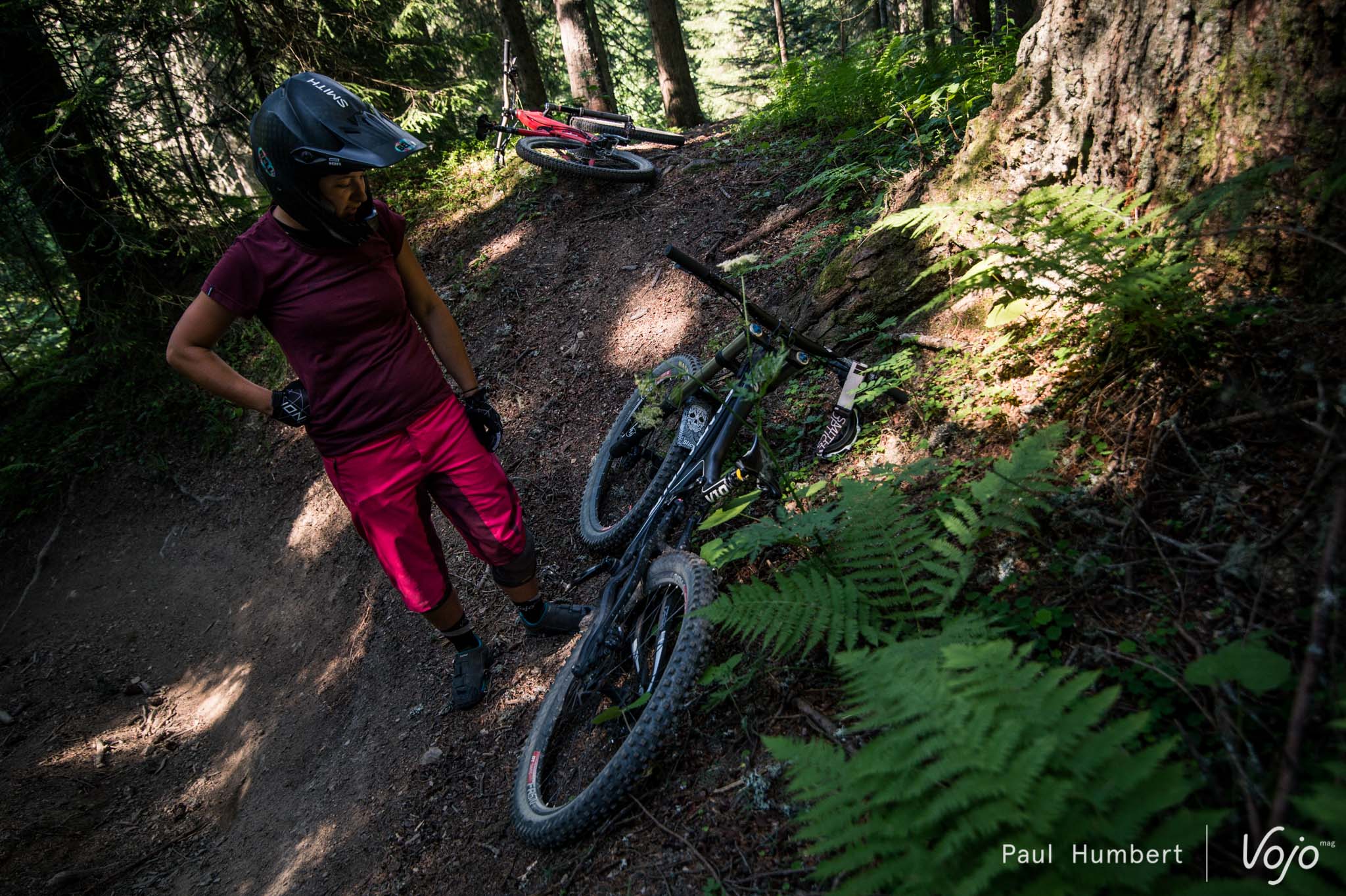 À ma grande surprise, je suis globalement contente d’avoir pu rouler sur ce vélo. C’est peut être dans la tête, mais plus le vélo est gros, plus j’ose engager. J’ai réussi à enchaîner des passages que je n’aurais jamais imaginé faire avec un enduro. J’ai trouvé mes marques assez rapidement et ça a été une chouette première expérience en vélo de descente. C’est sûr que quelques jours ne suffisent pas pour exploiter tout le potentiel du Santa Cruz mais je serais curieuse de voir les progrès que je pourrais faire sur la durée, notamment au niveau des sauts et de la fluidité en général. C’est également un bon élément de progression dans le sens où, d’après moi, la pratique avec les deux vélos est complémentaire : l’enduro apporte la technique pour la descente, et la descente apporte la vitesse pour l’enduro !