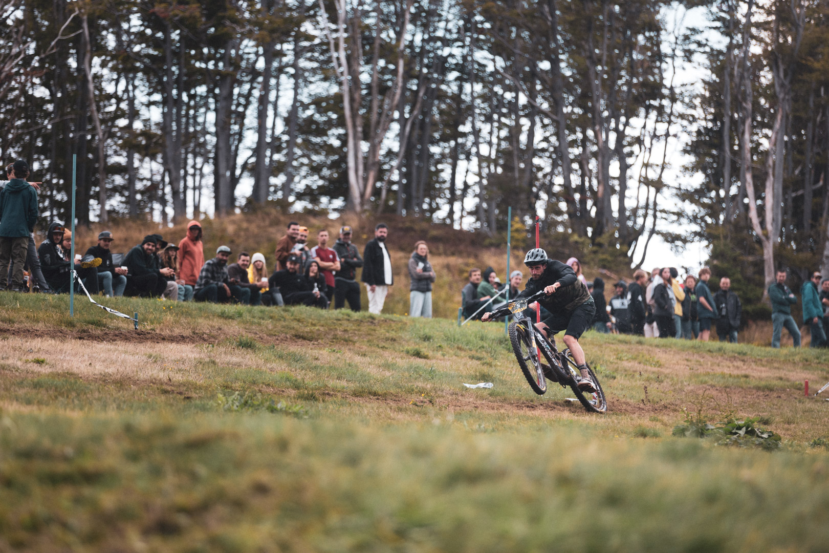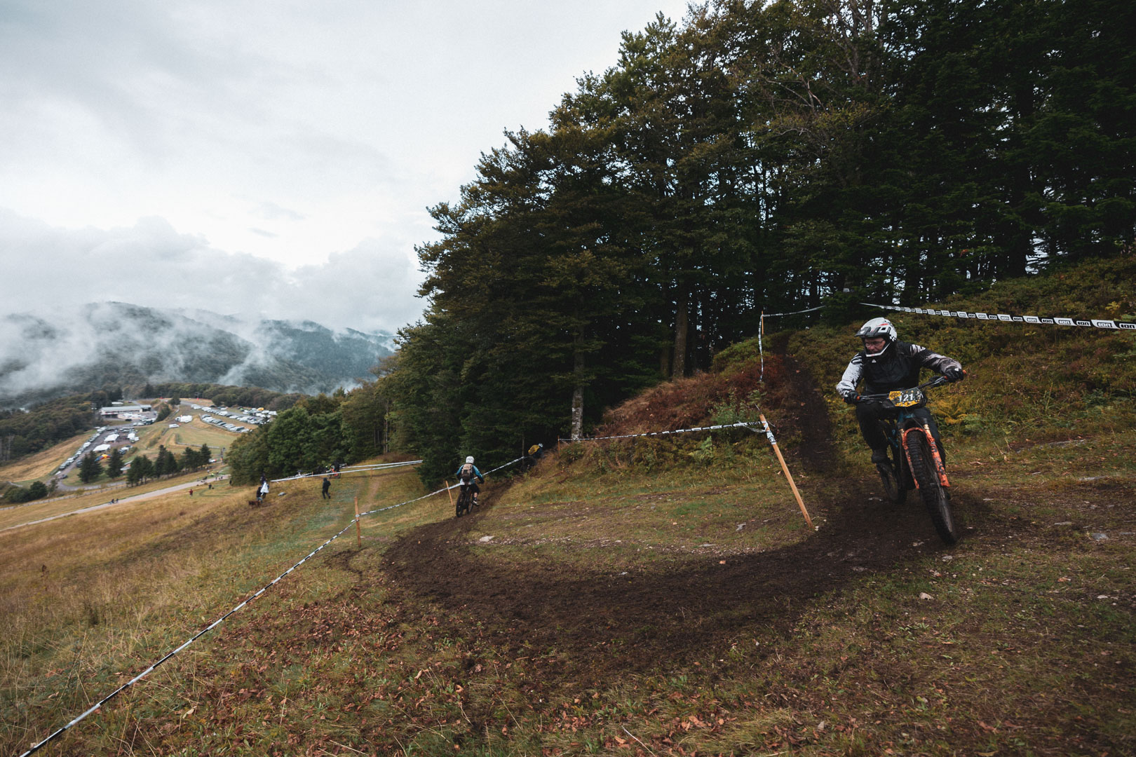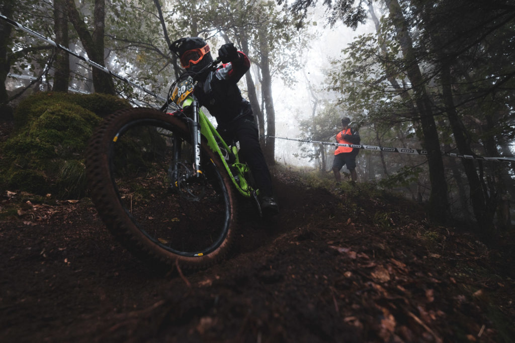 Malgré les conditions humides du jour, le terrain offre plus de grip qu’il n’y paraît. Les passages techniques s’enchaînent et les pilotes semblent apprécier ce que la région leurs offre.