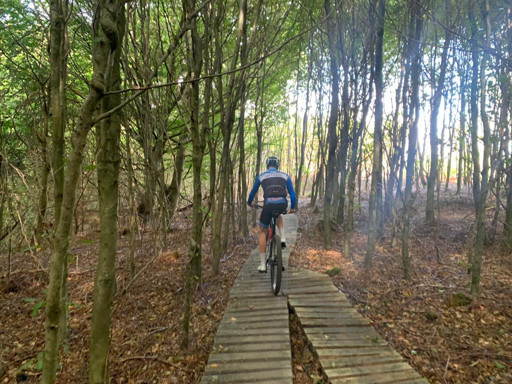 Le départ de ce circuit se trouve au centre de la ville, avant de serpenter autour des lacs formés durant la période glaciaire et de s’enfoncer dans la forêt de Pamhule et ses nombreux singletracks. Le parcours, majoritairement plat et roulant, est composé d’un tour de 40 kilomètres qu’il nous faut effectuer à trois reprises. Voilà qui est pratique pour découvrir l’intégralité du tracé les jours précédant la course.