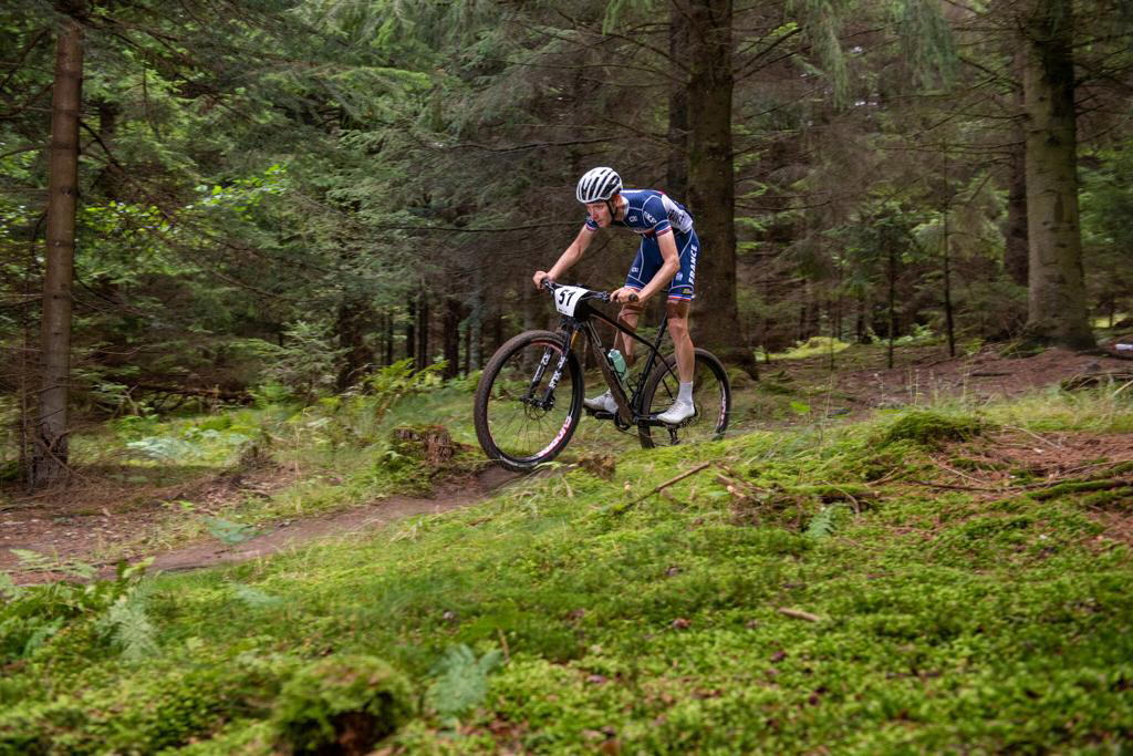 8h30, le départ est donné ! C’est un départ à l’allure d’un ShortTrack plutôt que d’un marathon : ça frotte très fort et les relances se font à fond. Mon objectif est de perdre le moins de places possible avant l’entrée dans les singletracks où il sera plus difficile de passer. Les 8 premiers kilomètres se font à une allure de XCO, c’est du délire. Manquant cruellement de puissance sur le plat, je perds quelques places. Ainsi, je peux voir Jordan Sarrou me passer, suivi quelques mètres plus loin de Simon Andreassen.