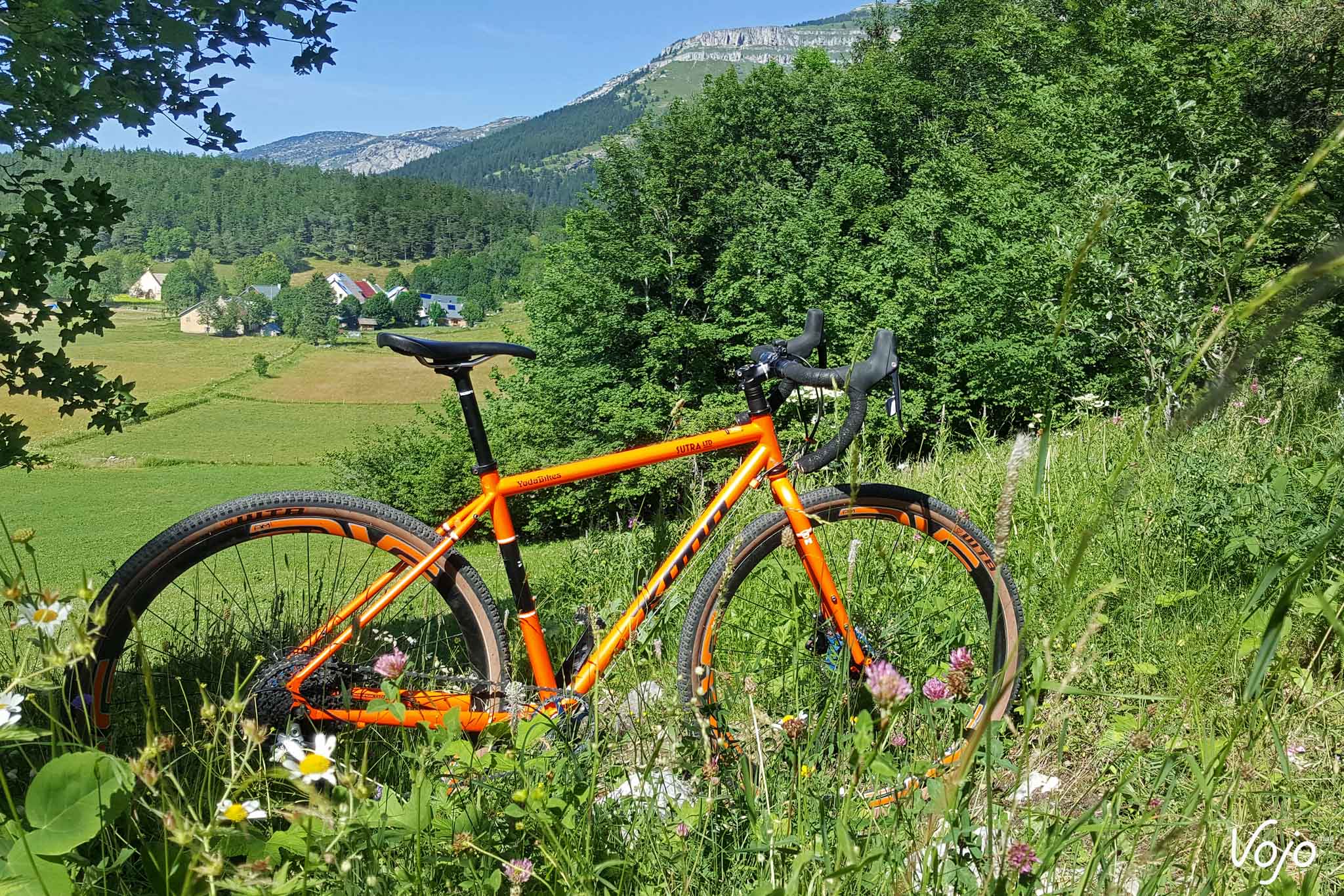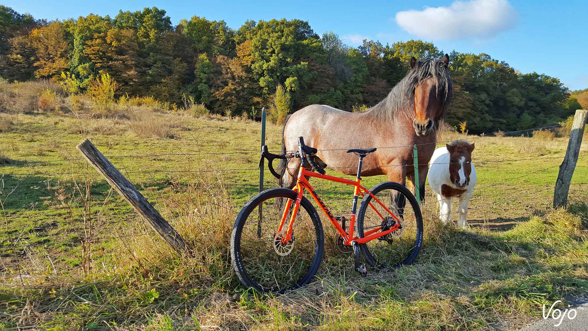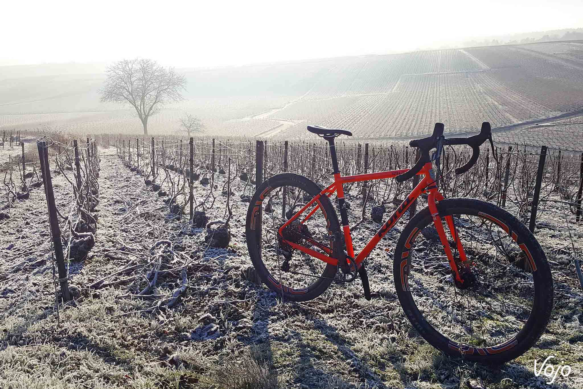 Bonjour à tous. Désolé si je vous parais un peu timide mais comprenez bien que c’est la première fois qu’on me permet de m’exprimer ainsi. Mon prénom est Sutra, et je fais partie de la branche des gravel dans la famille Kona. Le début de ma vie est somme toute assez banal. Né sur une planche à dessin canadienne et soudé loin de chez moi, j’ai ensuite été malmené par les transporteurs, ai subi le mal de mer dans un conteneur maritime puis l’attente et le froid des entrepôts avant d’atterrir dans la cour de ma famille d’accueil. Le scotch se déchire et le carton s’ouvre… Je vais bientôt pouvoir me faire une idée de mon nouveau maître ! Bon à première vue il a l’air sympa, et heureux de faire ma connaissance vu son large sourire. Je pense que je lui ai tout de suite plu ! C’est en tout cas comme cela que j’ai interprété l’impression de joie un peu idiote qui lui déguisait le visage une fois qu’il m’a sorti de ma boîte pour me poser sur le pied d’atelier. Ça et aussi le fait qu’il soit resté planté deux bonnes minutes à me dévisager sans rien faire. Totalement nu sans mes accessoires, j’étais à la fois fier et gêné ! Bon, j’ai un peu déchanté quand il a été question de terminer mon montage. Bien que de petite taille, mon jockey n’a pas la poigne légère quand il s’agit de serrer des vis, et la clé dynamométrique ne fait définitivement pas parti de sa servante d’atelier. Lui, c’est plutôt « on serre à fond jusqu’à ce que ça bloque et on refait un tour pour être sur » ! Je ne vous raconte pas la torture pour mes roulements à peine rodés ! Les restes de peinture sur les filetages n’auront pas résisté longtemps. Pas de coup de brosse. Non ! On force et ça finit par passer. Ah je ne suis pas tombé sur un esthète de la mécanique ou un orfèvre de la clé Allen, c’est le moins qu’on puisse dire. J’avoue que je suis issu d’une basse lignée. Point de particules de carbone, encore moins de pièces exotiques pour gonfler mon pedigree. Mon cadre et ma fourche sont en acier tout ce qu’il y a de plus ordinaire et à défaut de faire rêver, mon équipement est éprouvé. Je suis un petit gars simple, sans prétention, un rustique ! Mais quand même, ce n’est pas une raison pour me maltraiter de la sorte ! Du coup, j’étais déjà en train de m’inquiéter, imaginant finalement que son manque de délicatesse était à mettre sur le dos de mes origines. Que j’allais être cantonné aux basses besognes, à ramener le pain le dimanche, à rouler sous la pluie ou dans la boue quand les « beaux » vélos du garage seraient dispensés d’aller salir leur noble mécanique ou encrasser leurs biellettes si fragiles. Qu’il me faudrait supporter les mauvais traitements des sorties hivernales et le harcèlement psychologique des itinéraires de routine au paysage jamais renouvelé. Bon sang mais c’est bien sûr, il m’avait acheté en automne pour supporter l’hiver ! Jamais je n’apercevrais un coin de ciel bleu ! Le manant que j’étais devait rester dans l’ombre et la fange… Une fois le montage terminé, il m’a à nouveau admiré comme un idiot, avec le même sourire d’idiot et la même pose immobile d’idiot, puis il est remonté, en nous souhaitant « de faire de beaux rêves » ! « On ne monte pas des Enve pour aller chercher le pain ! » C’est la phrase que je me suis répété inlassablement durant la première nuit, à la fois pour me rassurer et m’aider à trouver le sommeil. Faut dire que j’étais bien énervé avec ces deux roues qui me donnaient des allures de vélo bien plus haut de gamme ! Rassurez-vous, il n’était pas question que je ne garde pas les pneus sur terre. Je suis un gars simple, bien décidé à le rester et ça tombe bien, l’avenir va vous montrer que je n’ai pas eu trop le choix. Voilà donc comment j’ai vécu ma première journée. Comme vous l’avez donc constaté quelques lignes plus haut, sa passion est telle qu’il nous parle. Je dis « nous » vu qu’il y a de très nombreux VTT qui cohabitent dans son sous-sol. Je vois déjà les membres de la ligue des défenseurs de vélos crier au scandale. Stop ! Eteignez les porte-voix, baissez les banderoles et posez les cagoules : nos conditions de vie sont parfaites. De la lumière, de la chaleur, une ventilation, des visites aussi fréquentes que nos sorties… et même pas obligé de prendre une douche en rentrant ! En plus de la grosse poignée de modernes de tout poil : des fat bikes un peu impressionnants avec leurs pneus énormes qui racontaient des histoires de neige profonde et de sentiers escarpés, des tout-suspendus représentant l’intégralité des pratiques existantes qui ne pouvaient pas s’empêcher de faire le concours de celui qui saute le plus loin, des rigides et des endurigides infoutus de se mettre d’accord et un XC que j’étais supposé remplacer. Je côtoyais aussi un grand nombre d’anciens, des vieux 26″ qui avaient fait l’histoire du vélo tout-terrain. Pourtant, ça n’avait rien d’un mouroir. Bien au contraire, tous étaient propres, rutilants même et équipés comme à leur première randonnée. Ils m’ont raconté la même histoire, comme quoi si un vélo lui procurait du plaisir et lui offrait de bons souvenirs, il n’était pas revendu et vivait une retraite paisible et heureuse au sein de la famille. Certains se déplacent parfois sur des manifestations, dans des expositions et il y en avait même une douzaine qui étaient actuellement sous les feux des projecteurs d’un magasin de sport. Mais ça, c’est surtout réservé aux plus anciens alors que moi, j’étais le petit nouveau, et le premier gravel. J’avais la pression ! Impossible de vous dire combien de temps il m’a fallu attendre avant de faire notre première balade mais ça n’a pas duré longtemps. Deux ou trois jours tout au plus. Je me souviens très bien comment