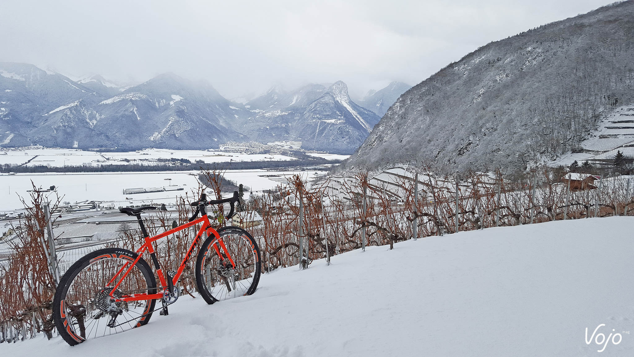 J’ai des souvenirs mémorables de la Suisse, mais un m’a marqué plus que les autres : en fin d’après-midi, nous étions partis pour une ascension au-dessus du village de Morcles, et il s’était mis à neiger assez fort. C’était fin octobre. En une demi-heure le blanc s’était imposé. Après quelques glissades du train arrière, il a dégonflé les pneus et nous avons continué à monter, et à monter encore. J’avais froid aux tubes, et peinais à lui faire garder l’adhérence, mais nous nous élevions, unis dans l’effort (enfin, c’est surtout que là encore, je n’avais pas le choix vu qu’il était bien décidé à arriver en haut coûte que coûte, alors autant que j’y mette un peu du mien). Même les deux chevreuils qui redescendaient ventre à neige vers la vallée n’ont pas envoyé un message suffisamment clair ! Lui, il appuyait sur les pédales en regardant vers le sommet pendant que je tordais mes bases et vrillait mes haubans pour offrir un peu plus d’adhérence.