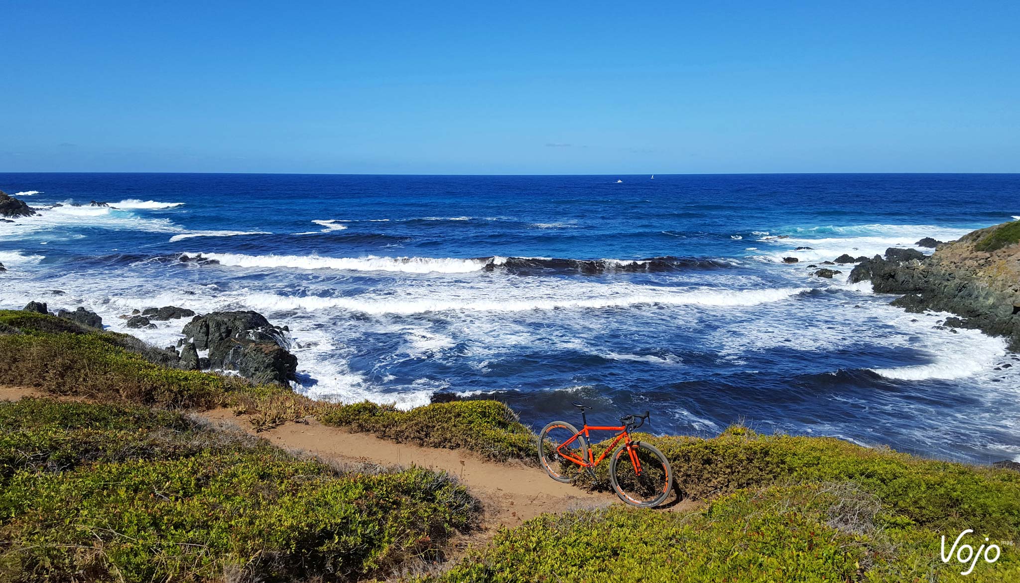 La Corse c’est joli aussi. J’ai eu la chance de m’y rendre tous les étés. Enfin, la chance, c’est quand vous faites les pistes du bord de plage. Moi, c’était les sentiers des douaniers, et les chemins en encorbellement au-dessus de la mer. Là aussi, il avait son itinéraire fétiche qu’il prenait inlassablement avec tous ses vélos. Mais la Corse, c’était un peu mon terrain de jeu : un sol sec offrant une excellente adhérence, et des cailloux entre lesquels mes pneus étroits se faufilaient sans peine. Et puis mon cadre en acier bien souple qui travaillait avec le terrain lui facilitait le pilotage. Mais ça tapait fort, et il fallait vraiment savoir où poser ses roues. Qu’est-ce qu’il rigolait, d’autant plus quand il constatait la mine ahurie des touristes qui se demandaient ce qu’un « vélo de route » faisait là ! Il y avait surtout la grimpette qui menait à la plage de Petit Capo : le chemin prenait naissance juste en dessous d’un mur d’escalade et débutait par un goulet raviné assez raide. Le reste du sentier n’étaient que succession de pierres et de rochers sur les 200 mètres qui suivaient. Eh bien nous montions, à la stupéfaction des nombreux promeneurs et autres vététistes qui voyaient un vélo à guidon de route arriver et grimper inexorablement, sans poser le pied à terre. Une fois en haut, il se marrait, et prenait des photos… Et moi, ben j’étais fier de l’avoir grimpé là-haut.