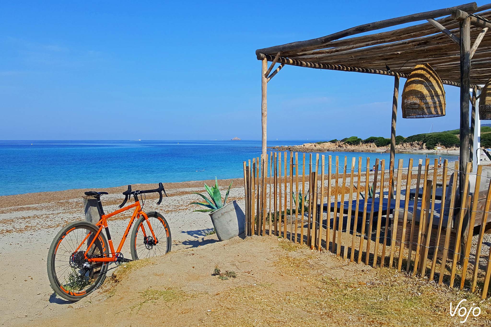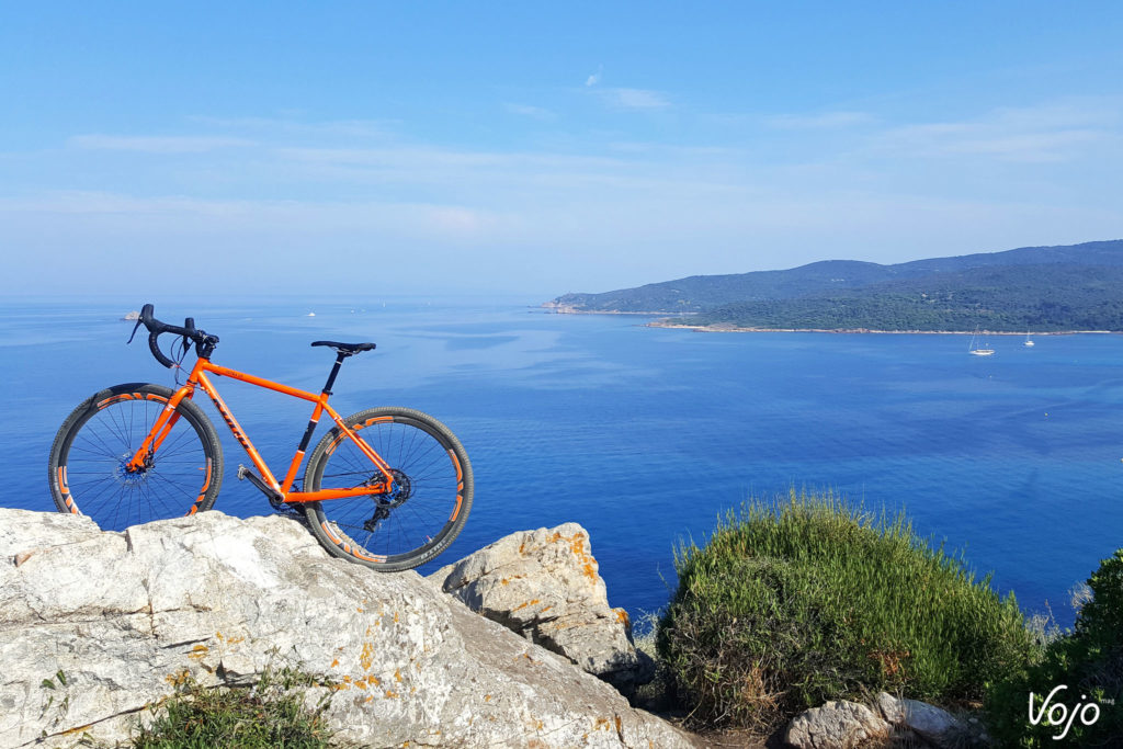 La Corse c’est joli aussi. J’ai eu la chance de m’y rendre tous les étés. Enfin, la chance, c’est quand vous faites les pistes du bord de plage. Moi, c’était les sentiers des douaniers, et les chemins en encorbellement au-dessus de la mer. Là aussi, il avait son itinéraire fétiche qu’il prenait inlassablement avec tous ses vélos. Mais la Corse, c’était un peu mon terrain de jeu : un sol sec offrant une excellente adhérence, et des cailloux entre lesquels mes pneus étroits se faufilaient sans peine. Et puis mon cadre en acier bien souple qui travaillait avec le terrain lui facilitait le pilotage. Mais ça tapait fort, et il fallait vraiment savoir où poser ses roues. Qu’est-ce qu’il rigolait, d’autant plus quand il constatait la mine ahurie des touristes qui se demandaient ce qu’un « vélo de route » faisait là ! Il y avait surtout la grimpette qui menait à la plage de Petit Capo : le chemin prenait naissance juste en dessous d’un mur d’escalade et débutait par un goulet raviné assez raide. Le reste du sentier n’étaient que succession de pierres et de rochers sur les 200 mètres qui suivaient. Eh bien nous montions, à la stupéfaction des nombreux promeneurs et autres vététistes qui voyaient un vélo à guidon de route arriver et grimper inexorablement, sans poser le pied à terre. Une fois en haut, il se marrait, et prenait des photos… Et moi, ben j’étais fier de l’avoir grimpé là-haut.