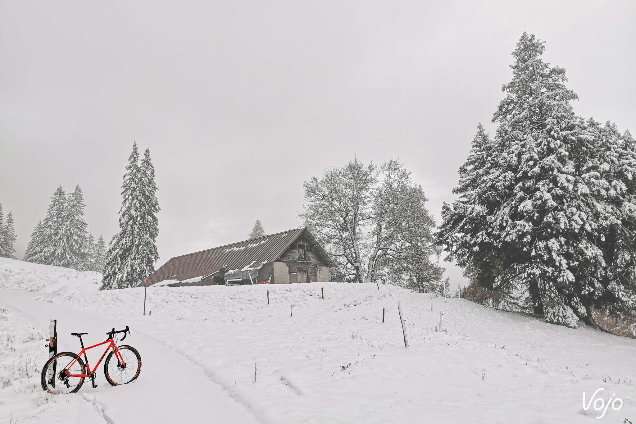 J’ai des souvenirs mémorables de la Suisse, mais un m’a marqué plus que les autres : en fin d’après-midi, nous étions partis pour une ascension au-dessus du village de Morcles, et il s’était mis à neiger assez fort. C’était fin octobre. En une demi-heure le blanc s’était imposé. Après quelques glissades du train arrière, il a dégonflé les pneus et nous avons continué à monter, et à monter encore. J’avais froid aux tubes, et peinais à lui faire garder l’adhérence, mais nous nous élevions, unis dans l’effort (enfin, c’est surtout que là encore, je n’avais pas le choix vu qu’il était bien décidé à arriver en haut coûte que coûte, alors autant que j’y mette un peu du mien). Même les deux chevreuils qui redescendaient ventre à neige vers la vallée n’ont pas envoyé un message suffisamment clair ! Lui, il appuyait sur les pédales en regardant vers le sommet pendant que je tordais mes bases et vrillait mes haubans pour offrir un peu plus d’adhérence.