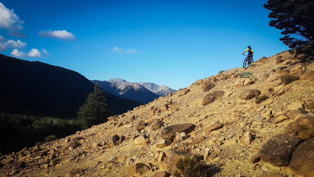 Nous restons au nord de l’île du Sud et là, attention les yeux, attention les racines ! Ne vous fiez pas aux apparences, il ne s’agit effectivement « que » de 25 km, mais comptez entre 4 et 7 heures pour le faire ! Déjà, vous avez plus de 2200 mètres d’altitude à monter (pour autant de descente, je vous rassure), et les trois principales côtes sont toutes truffées de singletracks assez ‘trialisants’. D’où une cadence peu élevée alors allez-y en bonne forme, conseil d’ami, et évitez les jours de pluie, conseil des locaux. Voilà pour la partie « soyez responsables ». Pour le reste, tout est magnifique ! Prenez le temps de regarder vos trajectoires et aussi les paysages (pas en même temps, hein !) et vous en oublierez l’effort !
