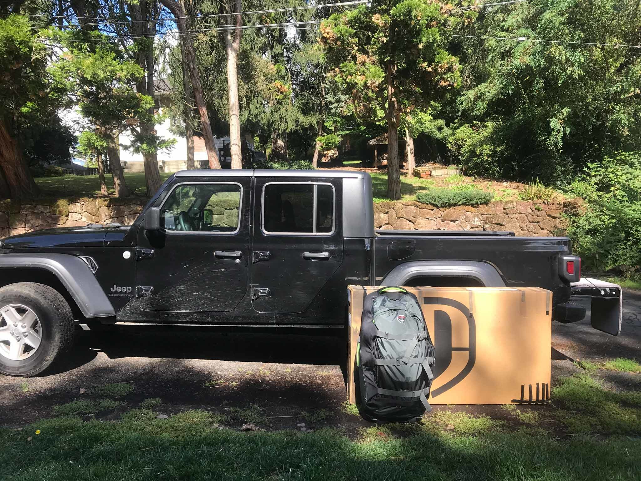 Arrive le moment de préparer les affaires. Dans la « check list » de la Trans-Cascadia, on nous dit bien de tout prendre en double (voire triple), et surtout d’avoir des vêtements de pluie et chauds. Je me demande où je vais bien pouvoir faire rentrer ça, mais voilà, le vélo est emballé, le sac est bouclé !
