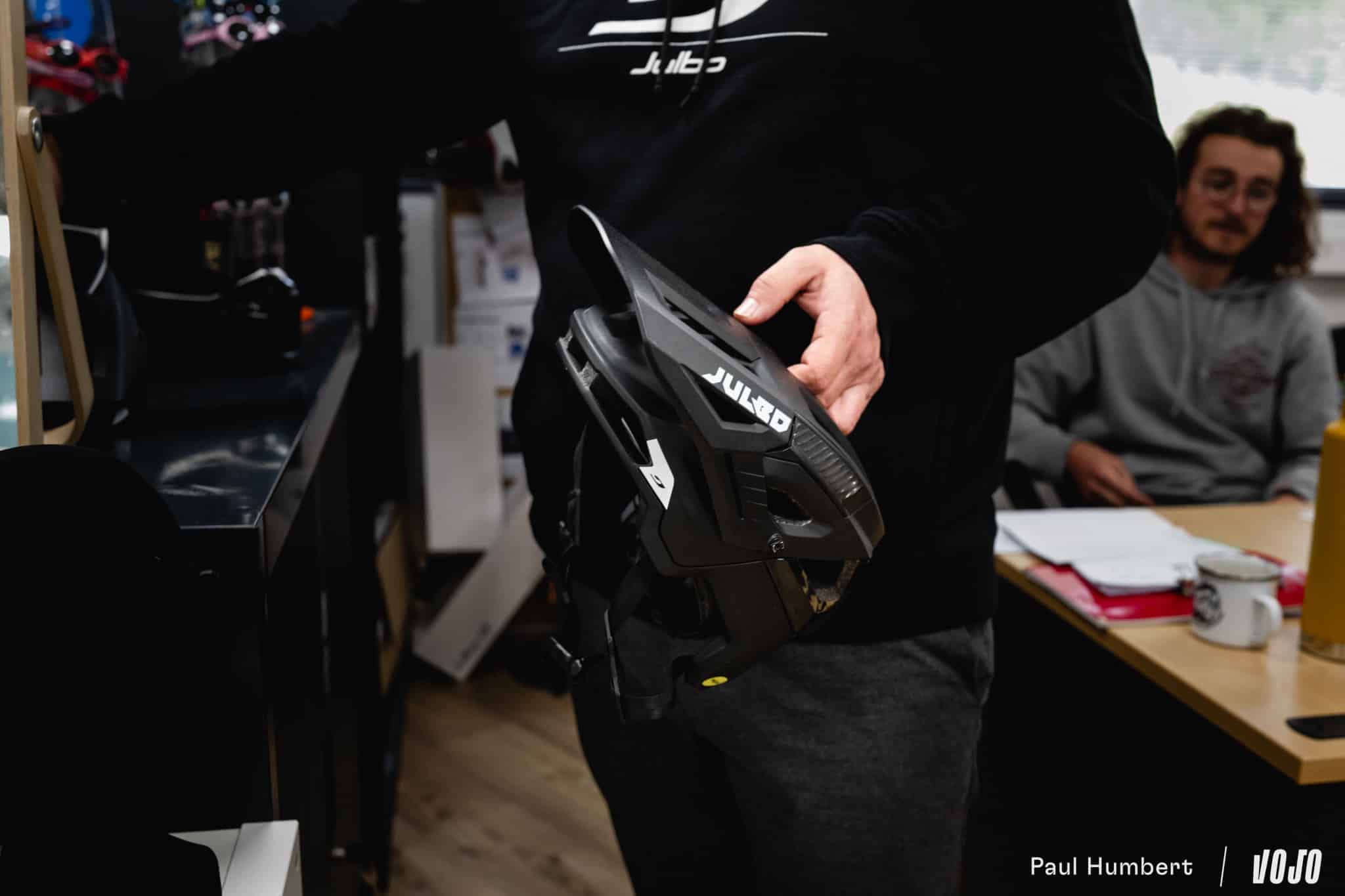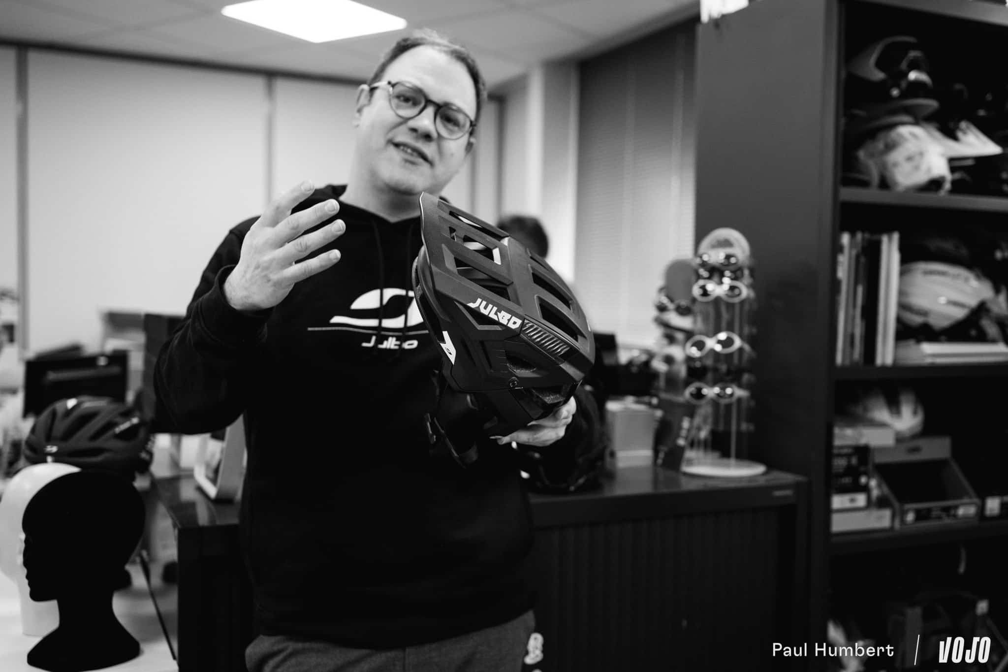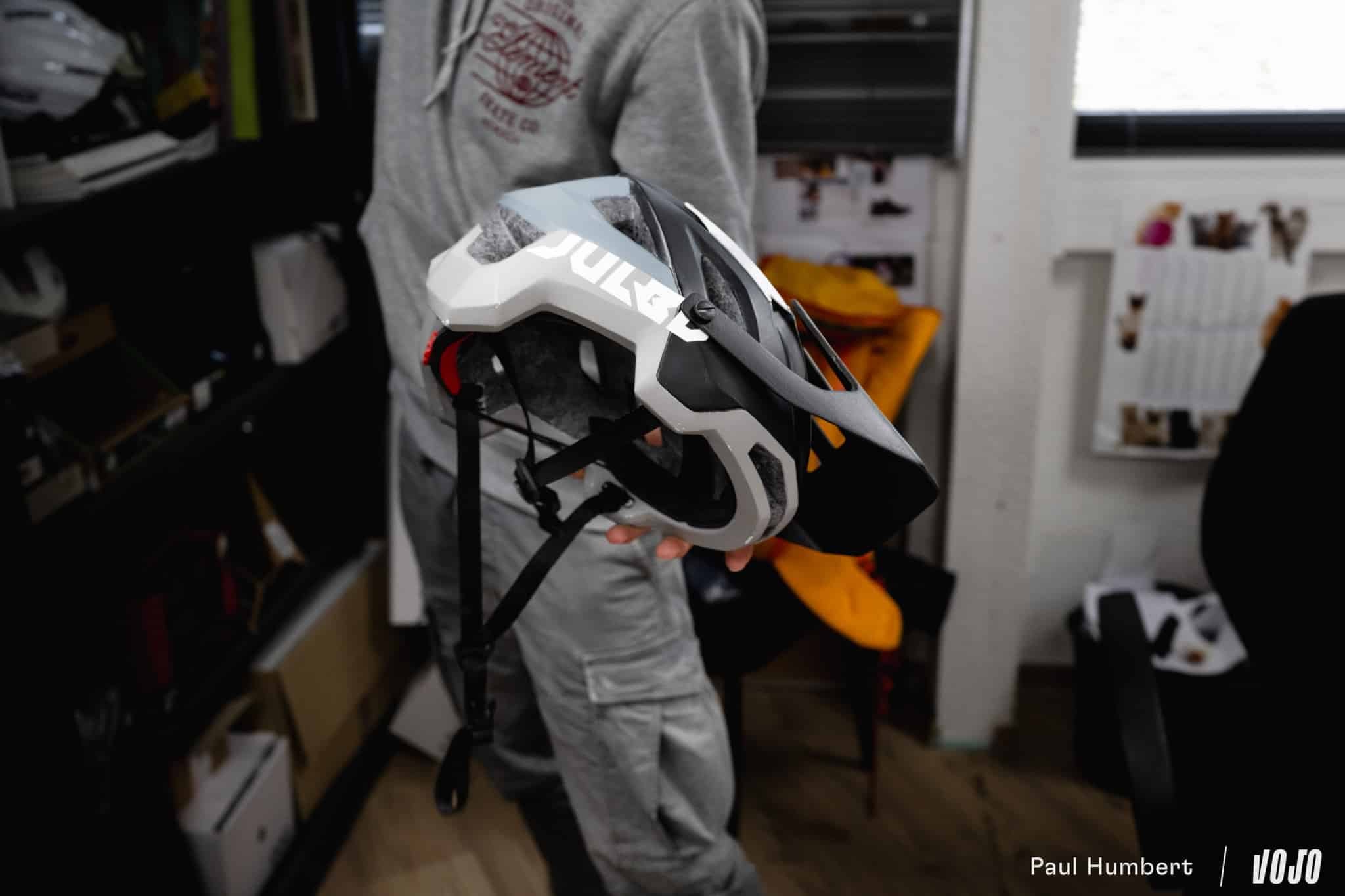 L’envie est née au contact des voisins et amis de Julbo : les vététistes jurassiens qui étaient à la recherche de ce type de casque. On pense évidemment à François Bailly-Maître, un des ambassadeurs de la marque, mais ce dernier était épaulé par Jérôme Clementz et Fabien Barel au début du projet. Nicolas continue : « On voulait faire un casque d’enduro, ils nous ont dit ce qu’était un casque d’enduro. »