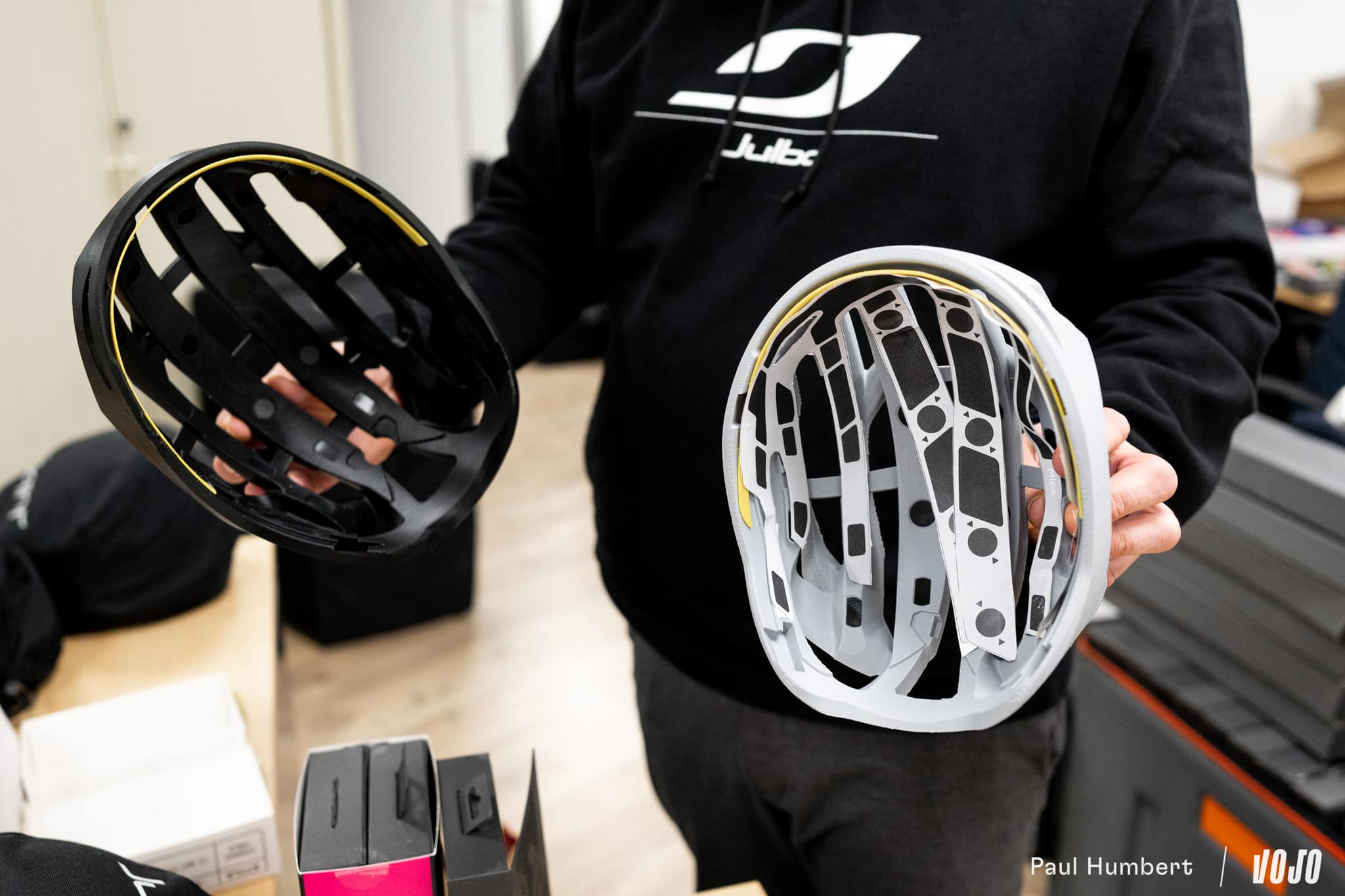 Après la validation de cet élément clé, il a fallu construire autour les caractéristiques de ventilation, de maintien, de confort, de poids… « On devait éviter l’erreur flagrante, et on y est arrivé […] à l’aide de beaucoup de maquettes et protos », nous explique Nicolas Defude.