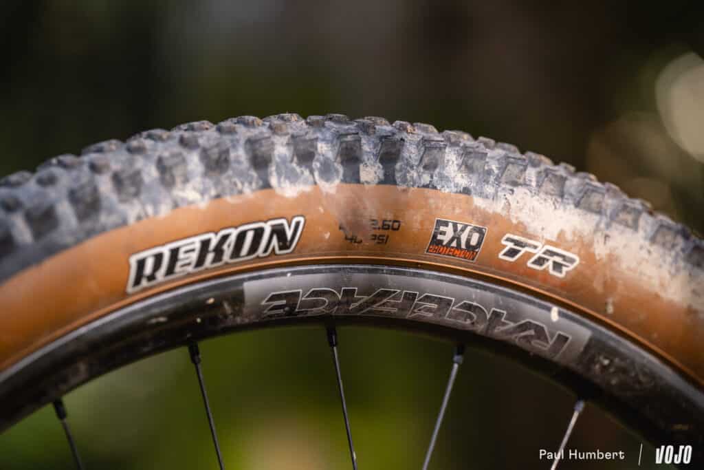 Toutes les gammes, qu’il s’agisse du Native ou du Vitae, sont équipées avec les mêmes Maxxis Rekon. Si le dessin est polyvalent, fonctionne bien dans de nombreuses situations et est plutôt en accord avec le programme annoncé (même si à l’avant quelque chose de plus cramponné aurait été plus judicieux), c’est surtout la largeur de 2.6″ couplée à la carcasse Exo qui sont une véritable catastrophe…