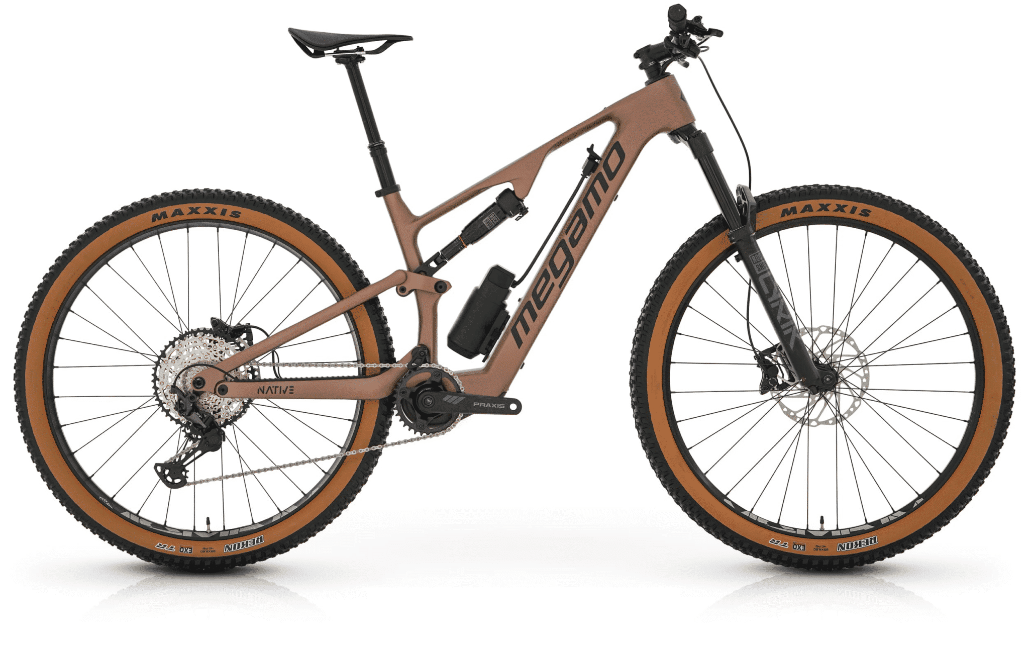 Commençons par le Native. Annoncé par Megamo comme « le vélo pour les cyclistes habitués aux VTT musclés ou qui font leurs premiers pas dans le monde des vélos électriques, le Native offre l’avantage de rouler plus vite, d’atteindre de plus grandes distances et de descendre avec plus de sécurité et de confiance. Tout cela sans sacrifier les sensations et l’agilité d’un VTT conventionnel. » Un discours finalement assez commun pour les VTTAE légers, et ce qui nous intéresse ici c’est la personnalité propre que Megamo a pu lui donner.