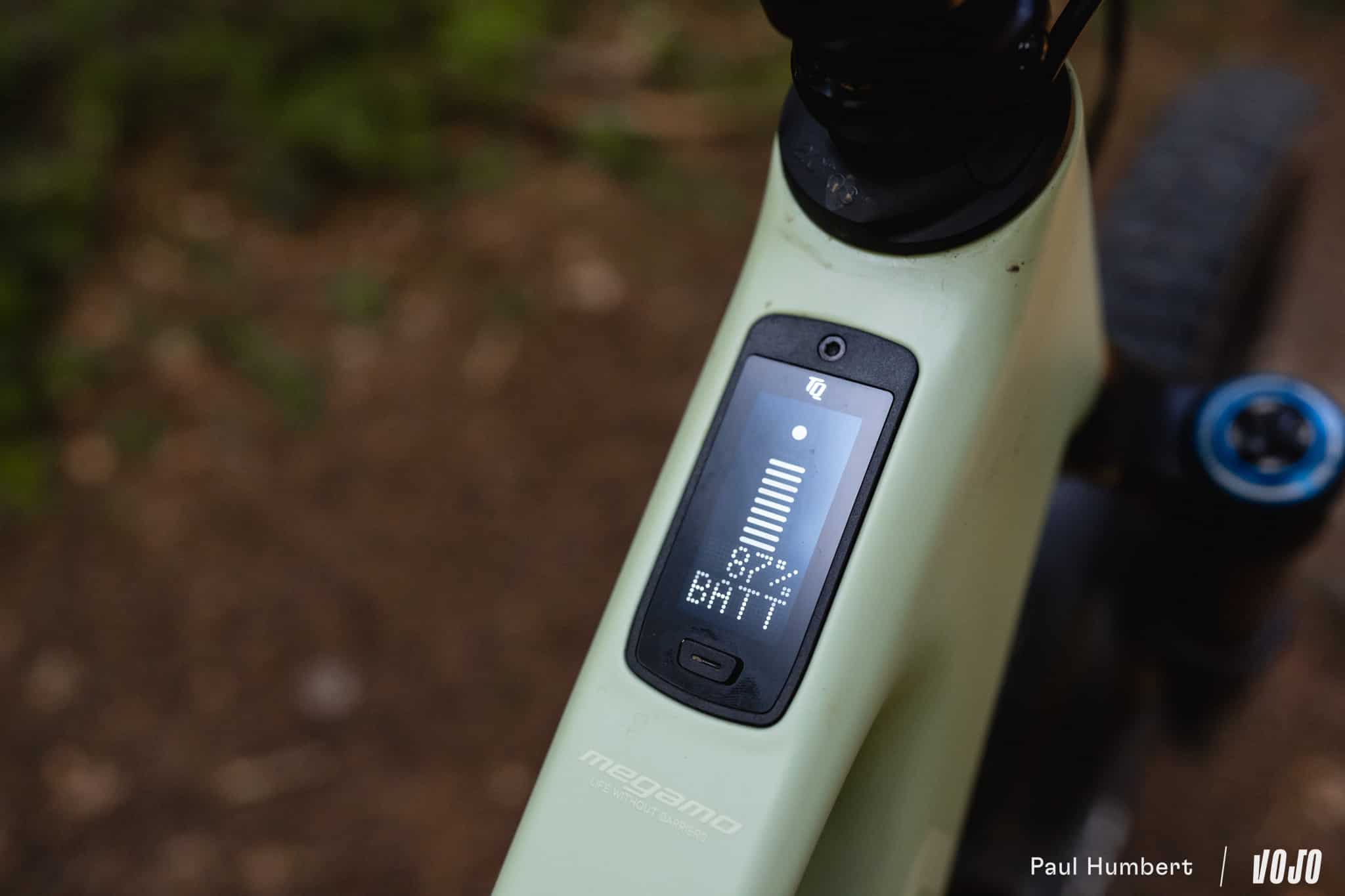Pour le Native, Megamo l’équipe du système à assistance légère, le TQ HPR-50. Au niveau des batteries (nous avons bien dit des batteries au pluriel), on trouve une batterie intégrée dans le cadre de 360 Wh et une seconde batterie additionnelle (et facilement amovible, accrochée via un support Fidlock) de 160 Wh, pour un total de 520 Wh, et ce dès la première gamme d’équipement !