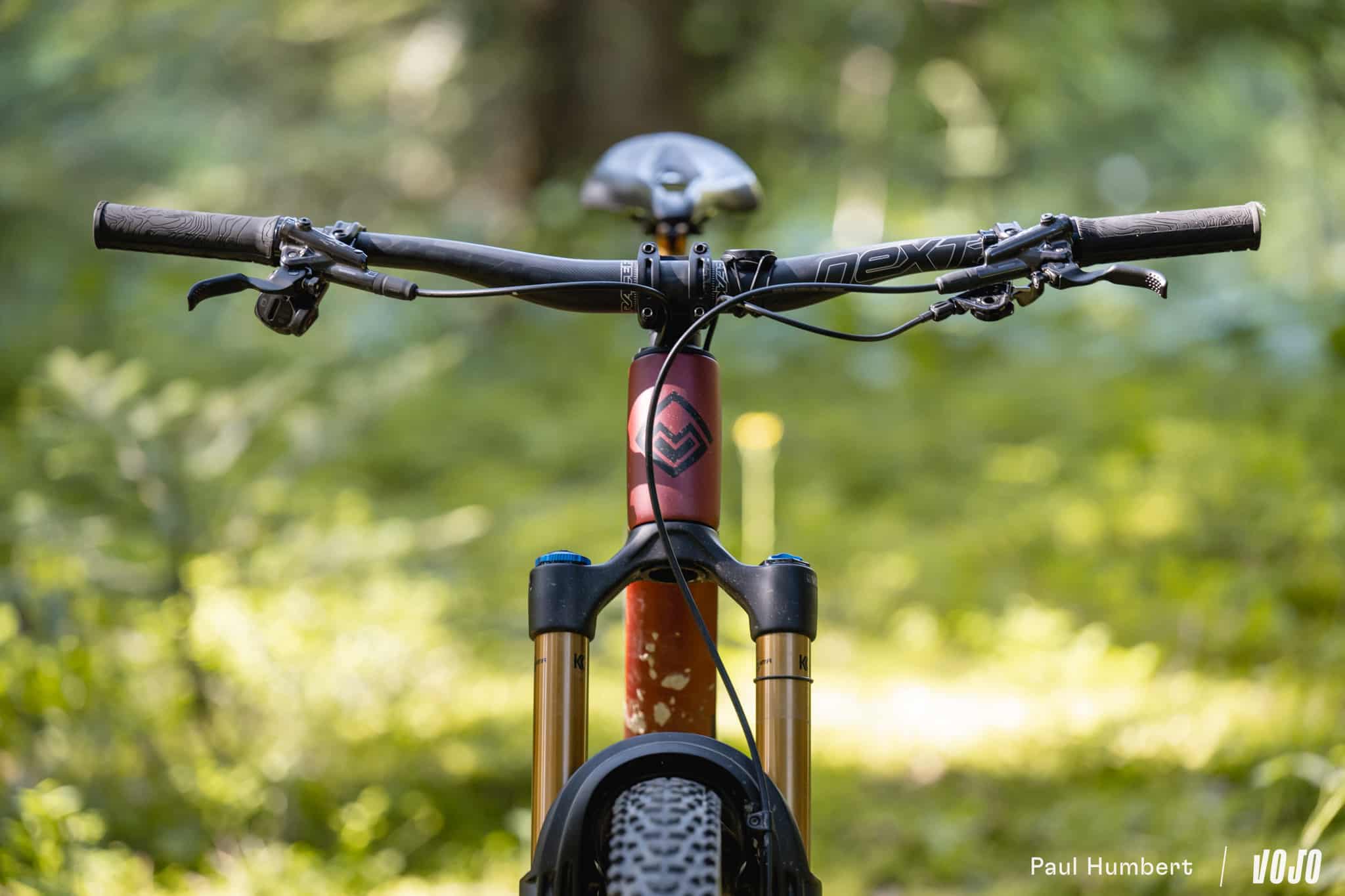 Lors de ces prises en mains, les deux modèles testés étaient dans les montages d’équipement les plus haut de gamme (Native 01 et Vitae 01), en taille L. Uniquement trois tailles sont disponible (S, M et L) et même si au premier abord, le reach en 487 mm dans cette taille peut paraître effrayant pour la majorité des testeurs qui sont passés dessus (entre 1m73 et 1m80), il a fallu simplement remplacer la potence d’origine de 70 mm (assez longue) par une de 40 mm pour qu’ils se sentent finalement tous plutôt bien installés.