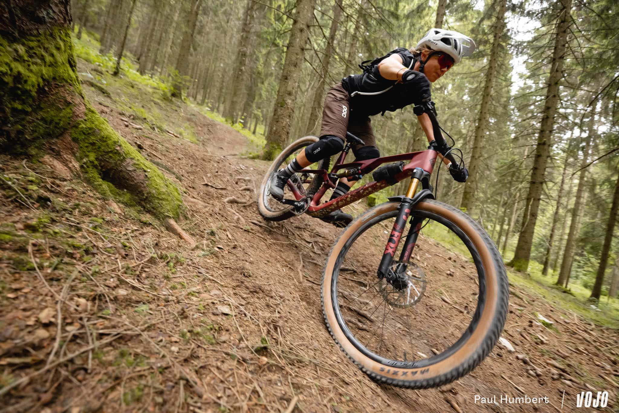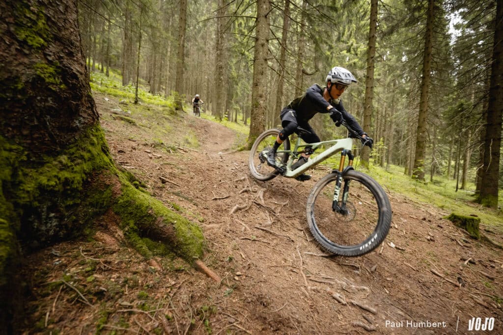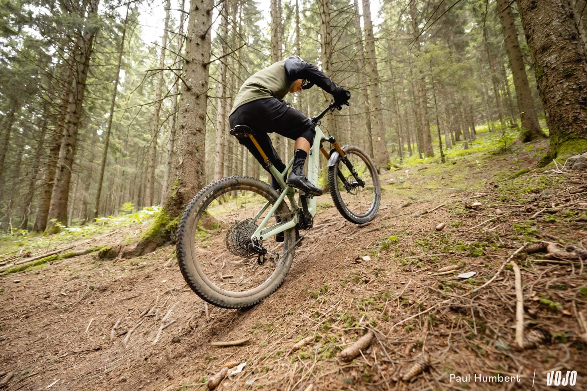 Une fois sur les sentiers, la différence est beaucoup plus flagrante ! Le Vitae fait clairement partie des vélos avec une âme XC, mais avec plus de débattement. Très joueur et bien vivant pour ses 150 mm de débattement, il n’est pas pour autant dur à prendre en main ou difficile à piloter, mais nécessite d’être canalisé et guidé en restant relativement actif dans son pilotage.