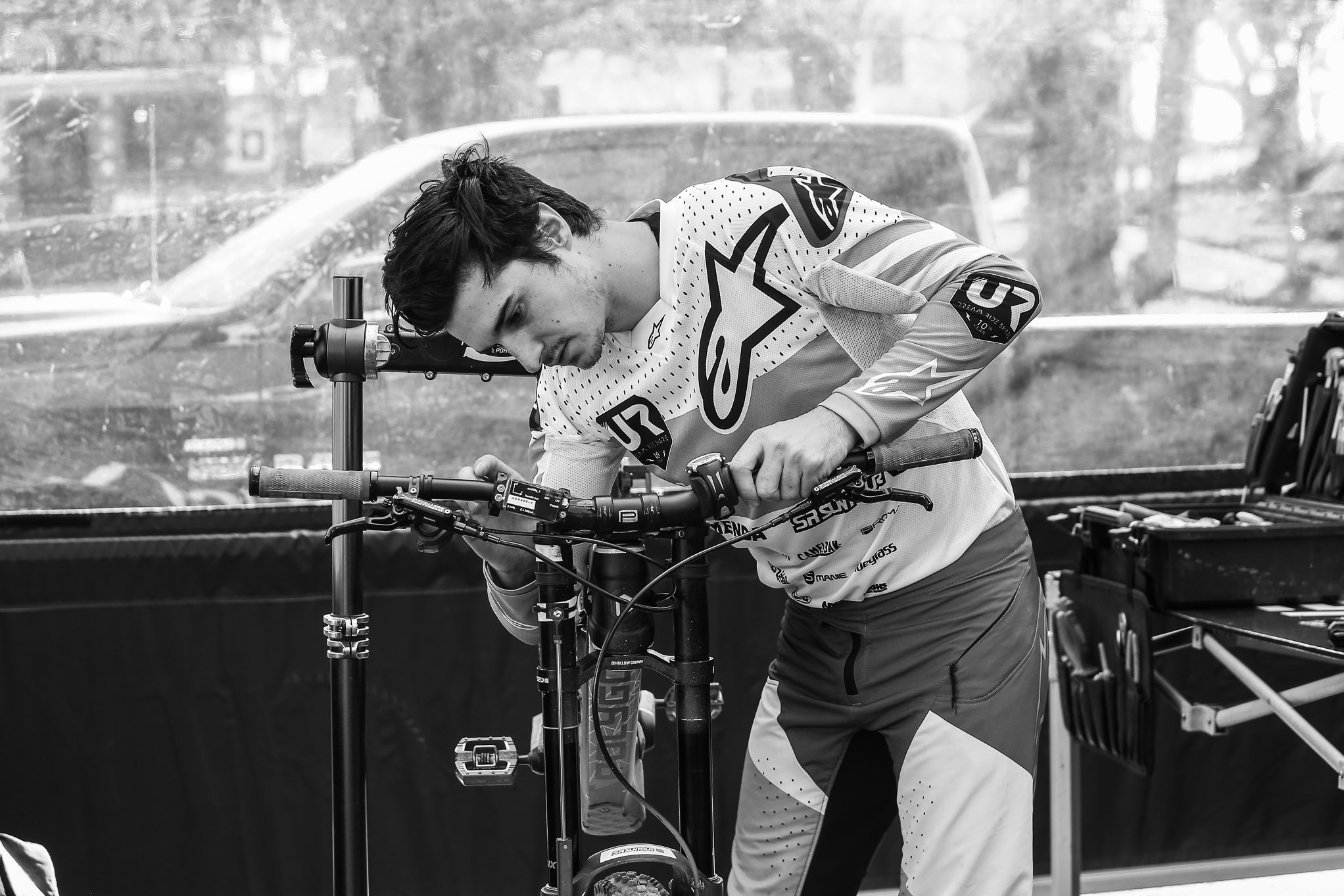 Avec le service course de Suntour porté par Kevin Allemand et en présence de Stéphane pour piloter l’exploitation des données, il pourrait être aussi envisageable de recourir à l’acquisition en course. Pourtant, Alex ne le souhaite pas: « Pas mal de pilotes font de l’acquisition de données en course, mais ça demande beaucoup d’expérience, car ça prend du temps: celui d’apprendre la piste, avoir des bonnes sensations, mettre l’acquisition, changer, retrouver les bonnes sensations… Moi, si je fais ça, je me concentre moins sur le profil de la piste. »