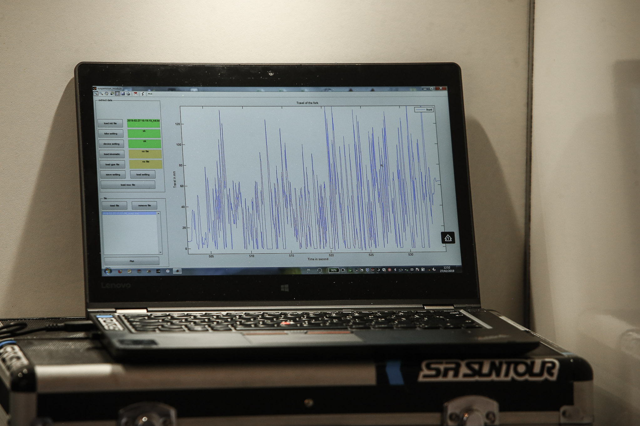 « Ça fait deux ans que je l’utilise, détaille Alex. Sur le vélo, ça n’est pas toujours facile de ressentir exactement la différence sur les chocs, car il y en a énormément. Avec l’acquisition, on peut toucher exactement ce qui bouge, quand, et ça permet ensuite d’ajuster en fonction de chaque piste, des terrains. Ça peut contredire mes ressentis, donc c’est bien de l’avoir. En fait, avec, on va tout le temps dans la bonne direction, on n’a pas besoin de chercher: on rentre au camion, on analyse et on va dans le sens voulu. »