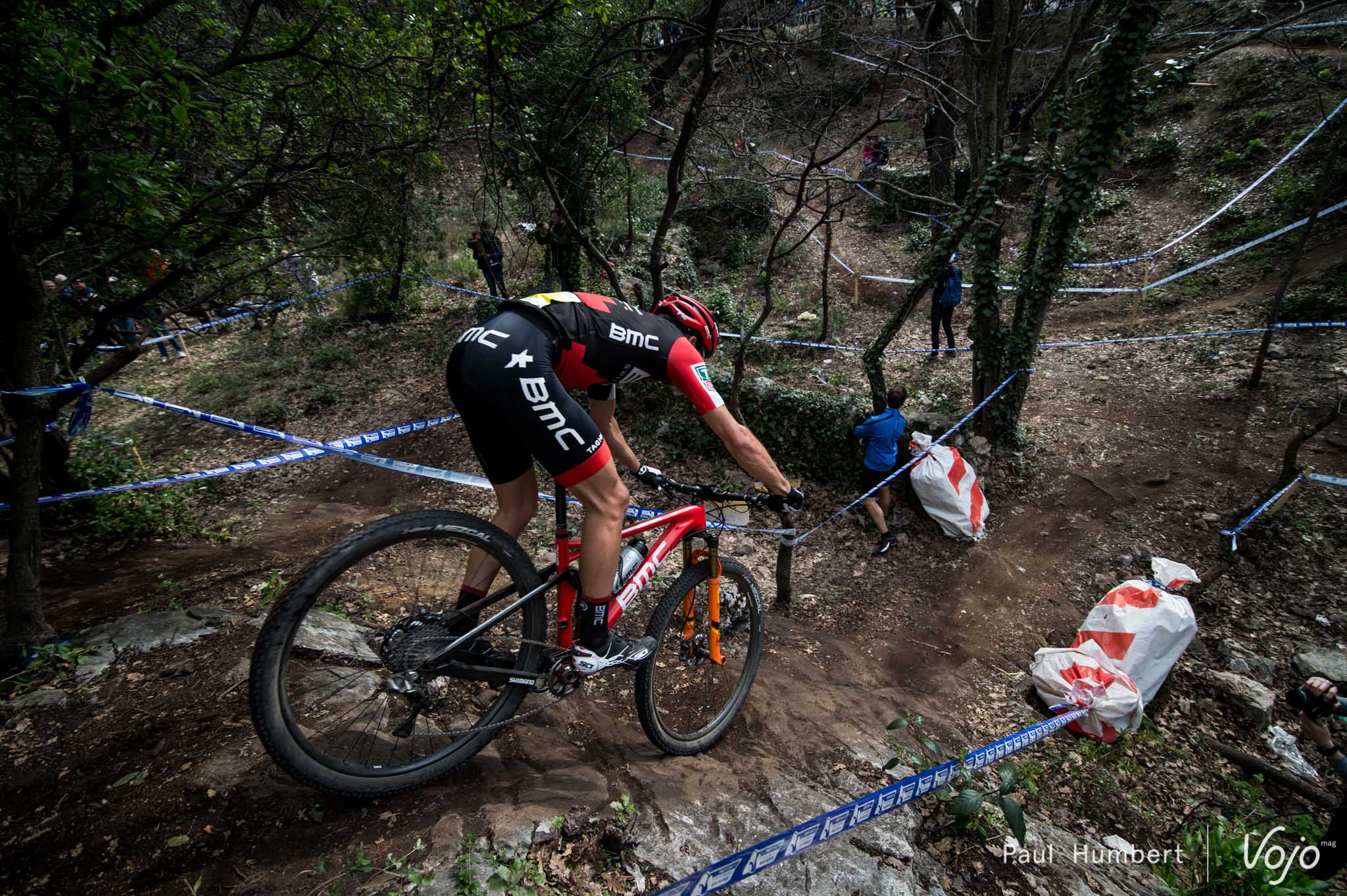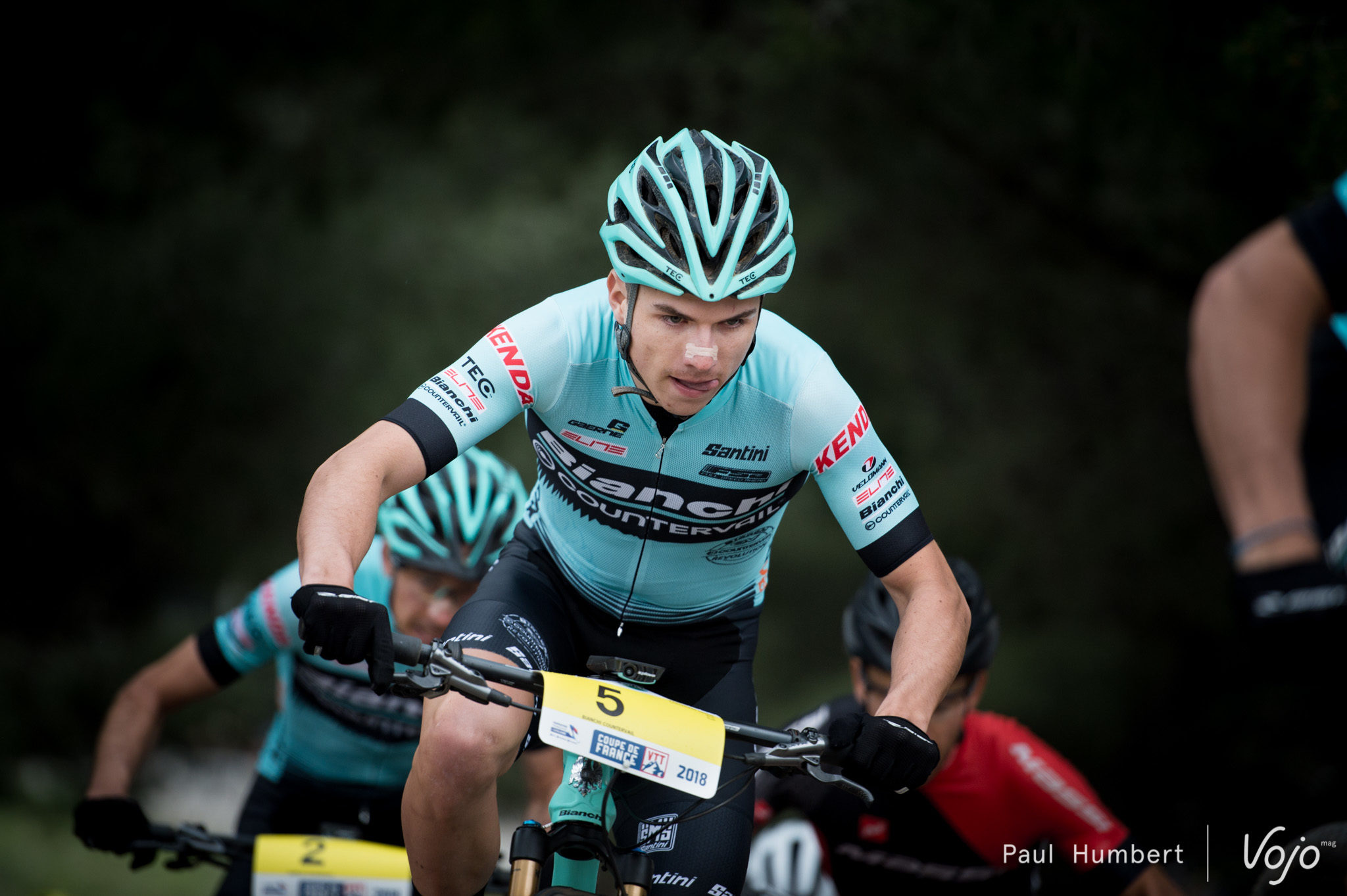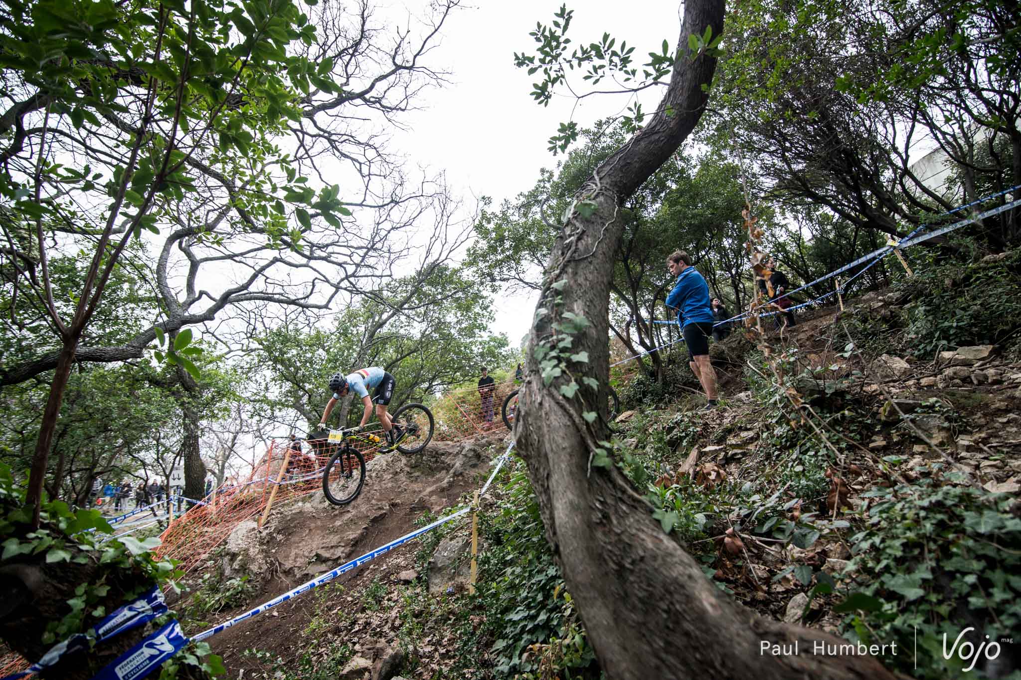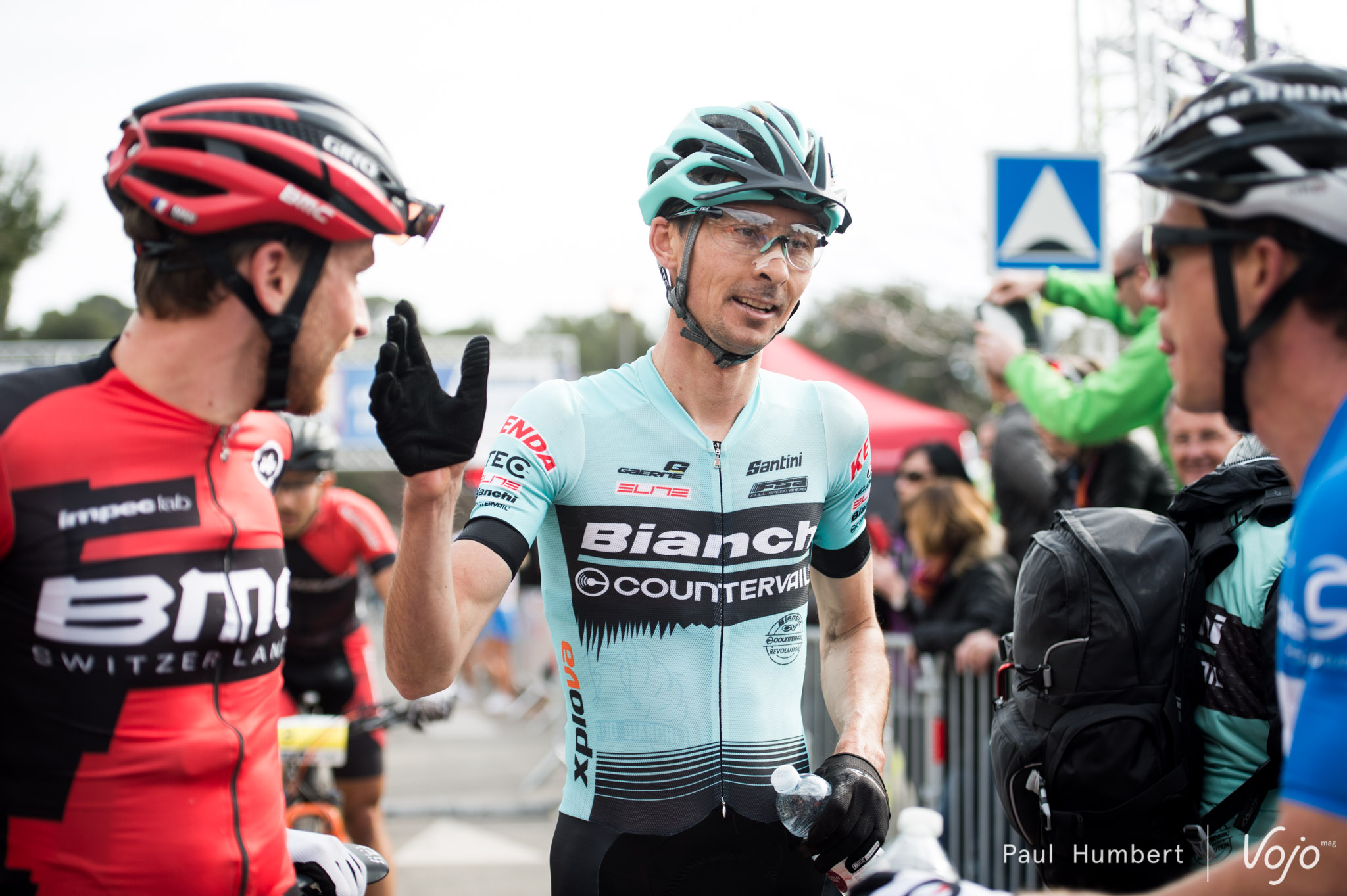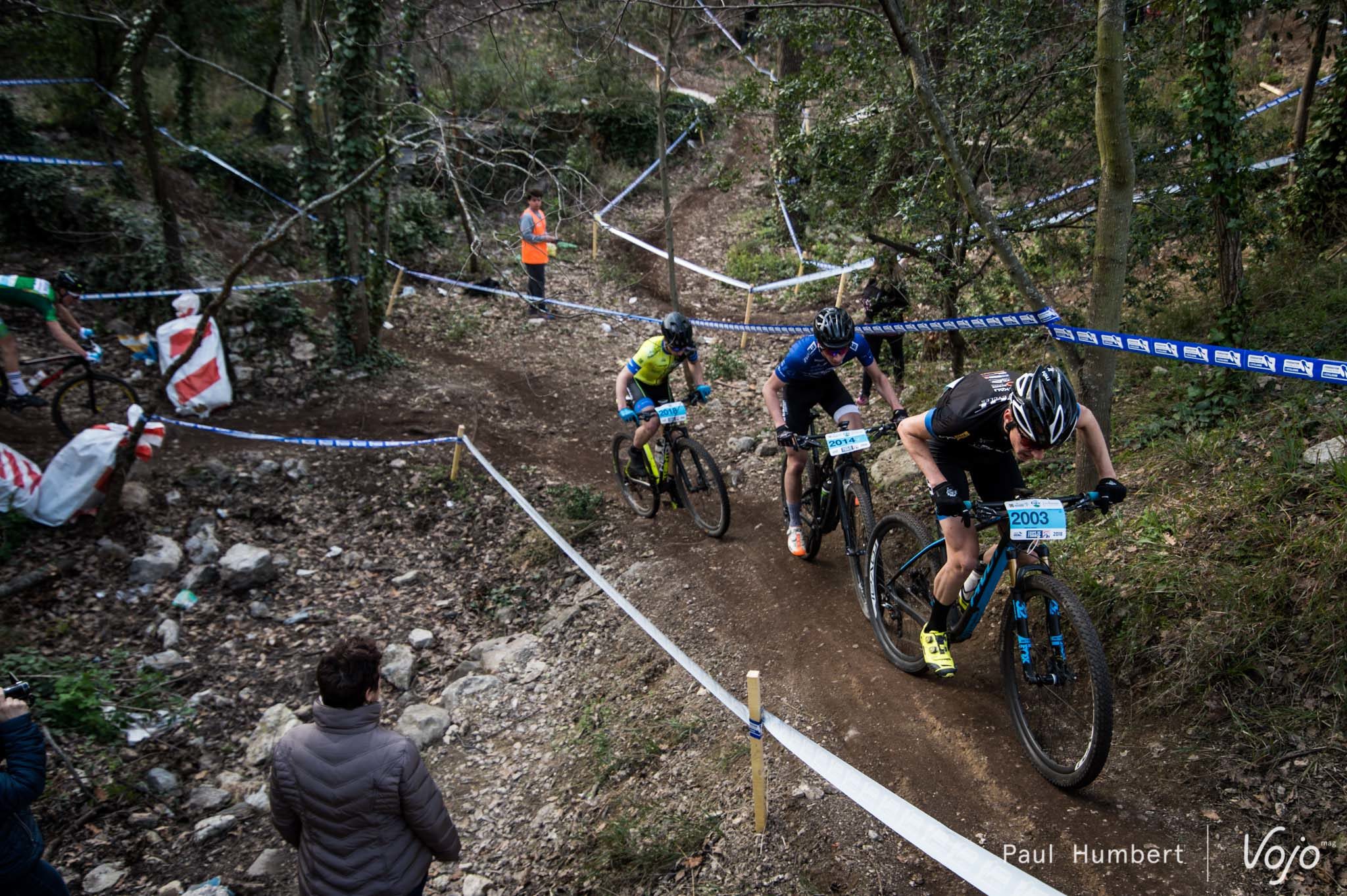 C’est une pluie fine qui donnera le top départ de la course des hommes. À l’instar de la course Dames, la première ligne compte de nombreux pilotes internationaux. On repère Marco Aurelio Fontana, Andra Tiberi, David Rosa ou Gioele Bertolini.