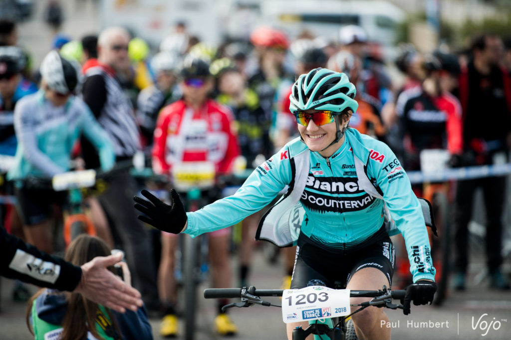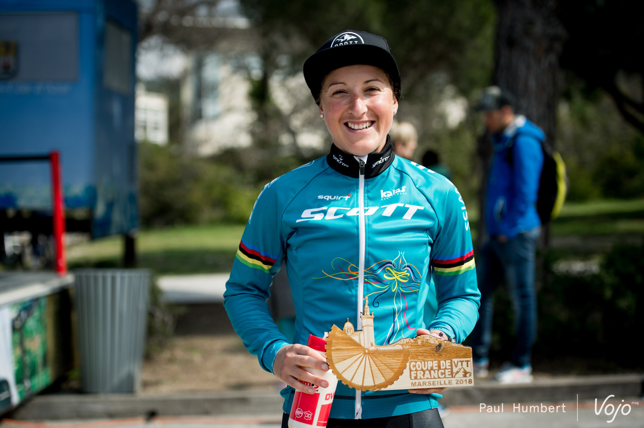 La vainqueur s’exprime après la course : « Hélène était très forte et j’ai réussi à faire le trou dans le dernier tour. Ici j’avais de bonnes jambes et je suis très contente après cette course. À la suite de la première coupe du Monde à Stellenboch, ça a été dur mentalement car je n’ai pas réussi la performance que j’espérais. Depuis le championnat de France l’année dernière, c’est ma première vraie victoire. »