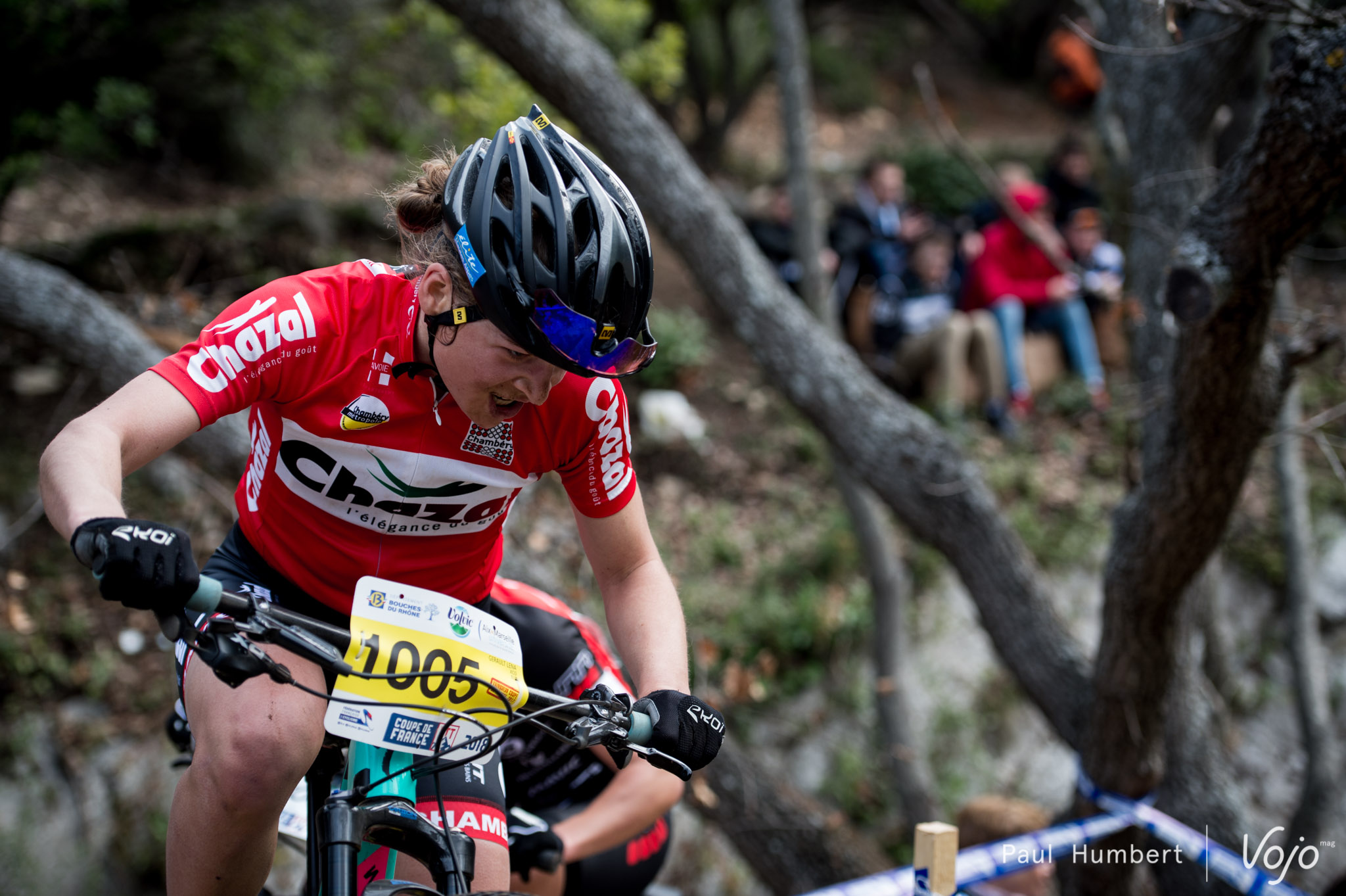 Dès le départ donné, direction la garrigue pour retrouver une Lena Gerault partie très fort.