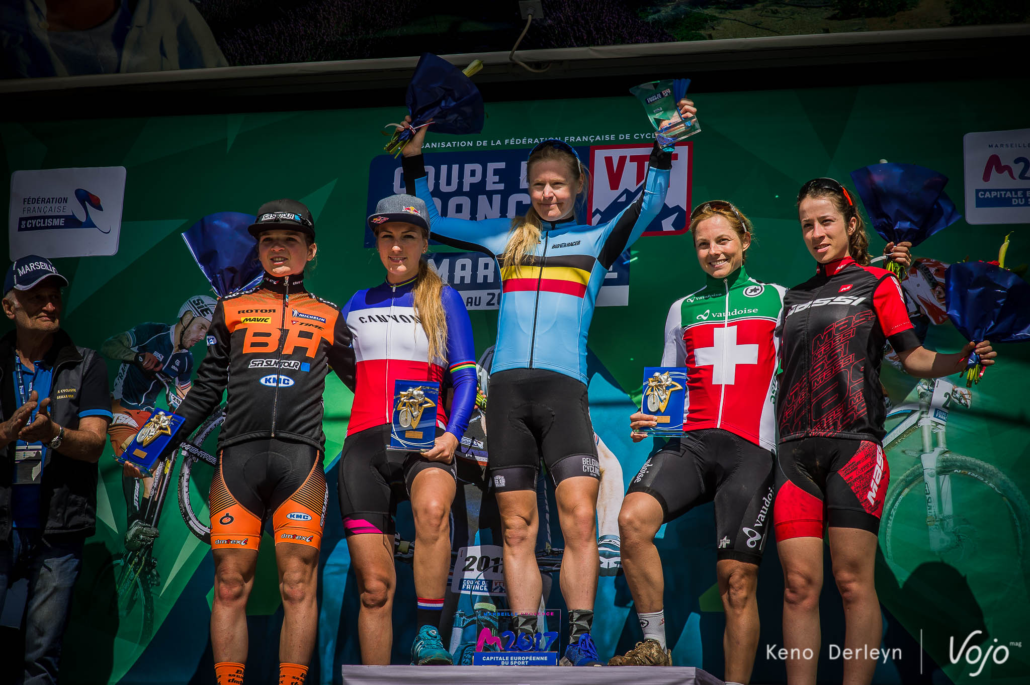 La première coupe de France de cross-country s’est déroulée ce weekend à Marseille. Sur un tout nouveau circuit, le plateau était relevé. La boue s’est invitée dans les festivités ! Githa Michiels l’emporte chez les femmes et Maxime Marotte chez les garçons. Pauline Ferrand-Prévot, 2ème, repart sur de bonnes bases.