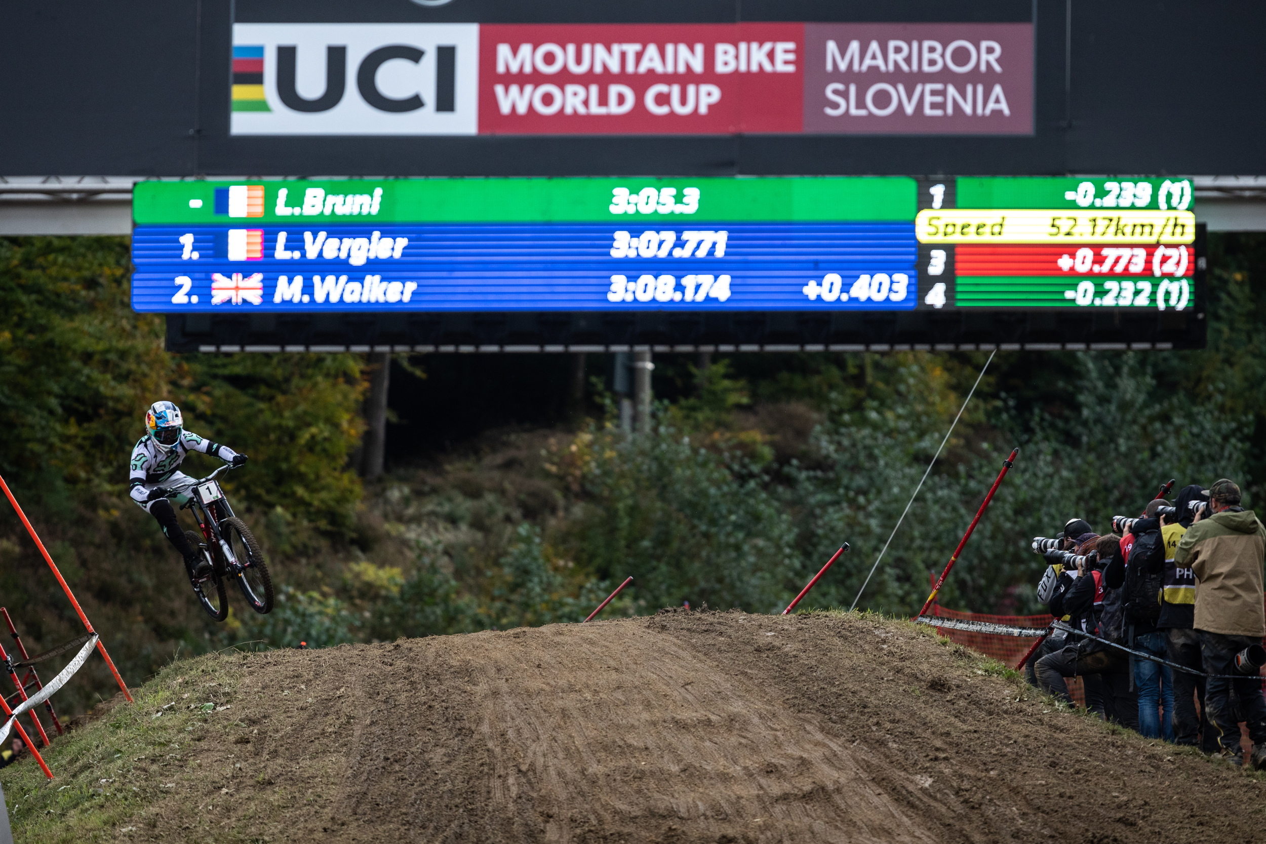 Alors qu’il n’avait jusqu’ici remporté qu’une seule manche de coupe du monde, Loris Vergier repart de Maribor avec deux victoires de plus à son palmarès. Aux côtés du vainqueur et de Bruni, ce sont Matt Walker, Finn Iles et Troy Brosnan qui montent également sur le podium.