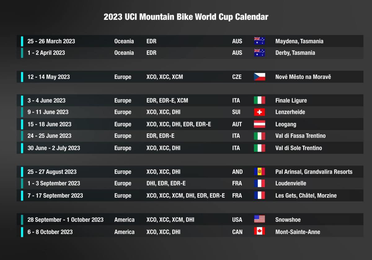 Plus tard en juin, Leogang accueillera la première semaine de coupe du monde vraiment multi-disciplinaire avec, au programme, l’enduro, l’enduro e-bike, le XC, le XCC et la descente, alors que les Portes du Soleil (Les Gets, Châtel et Morzine) feront encore plus fort mi-septembre en ajoutant le marathon au programme pour un double week-end de compétition qui s’annonce inoubliable. Entre ces deux gros morceaux, Val di Fassa sera le théâtre fin juin d’une simple manche EDR/EDR-E tandis que Loudenvielle proposera début septembre un week-end 100% gravity avec l’enduro, l’enduro e-bike et la descente.