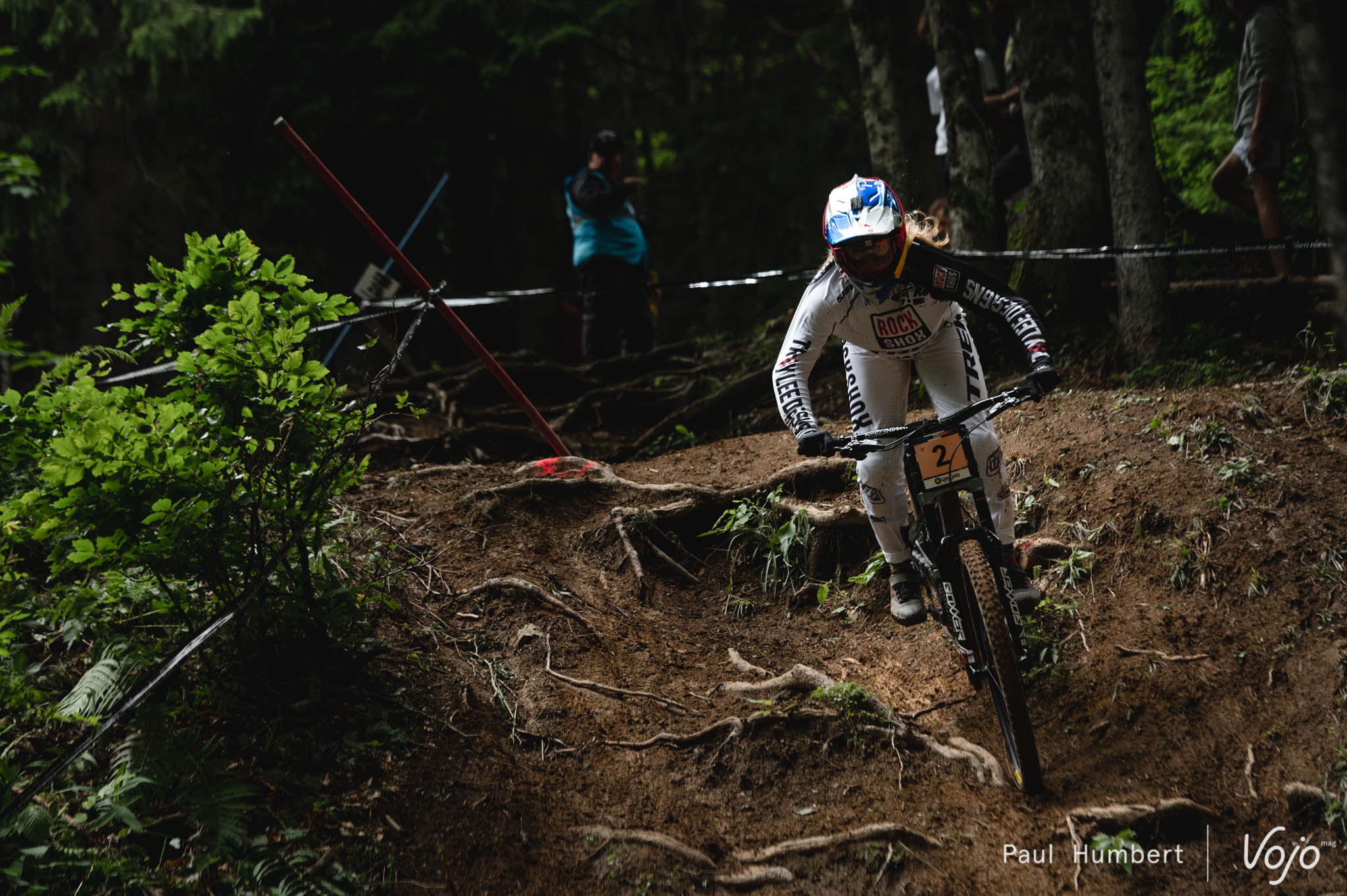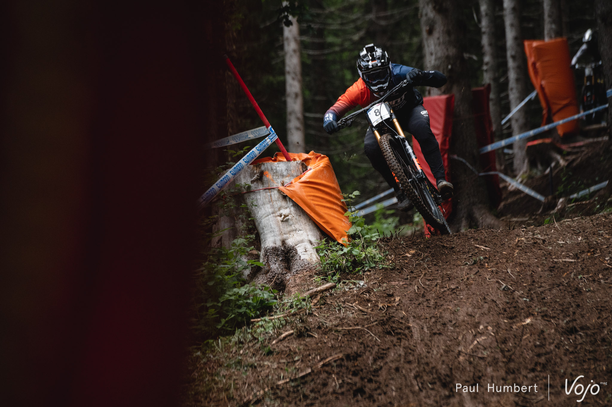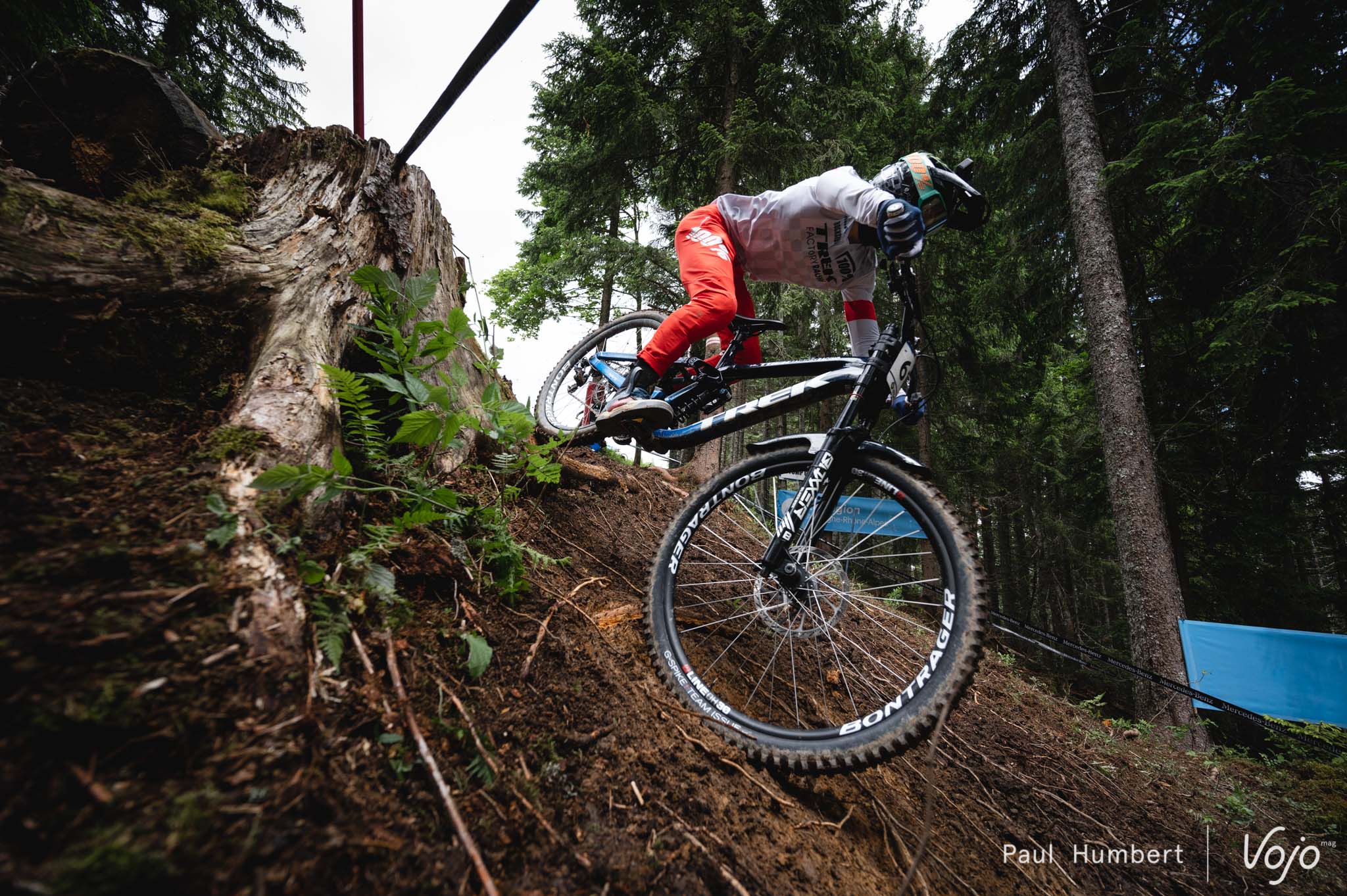 De l’avis des pilotes rencontrés, on a affaire à un très beau tracé, encore très frais et proposant de nombreuses lignes. Les riders s’élancent dans l’alpage avant d’enchaîner plusieurs sauts et un enchaînement de zones à chaque fois plus raides et techniques en sous-bois, amenant à une série de tables avant de retrouver la ligne d’arrivée de l’année dernière.