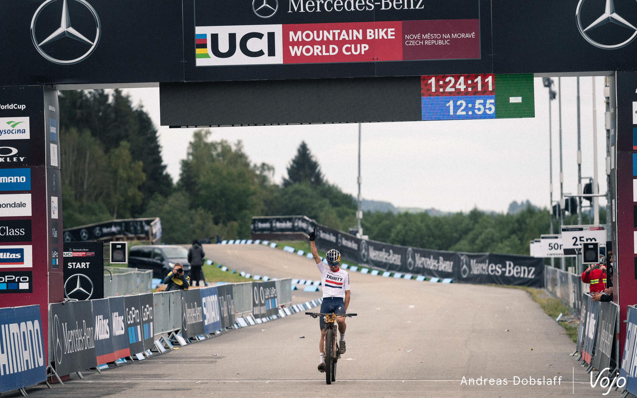 Avec une petite dizaine de secondes d’avance, c’est donc Simon Andreassen qui s’impose à Nove Mesto ! Comme pour Loana Lecomte un peu plus tôt, c’est sa première course en catégorie Elite Hommes. Le résultat est d’autant plus impressionnant qu’Andreassen n’était que 67e sur la grille de départ et a donc dû produire un effort très violent en début de course pour remonter.