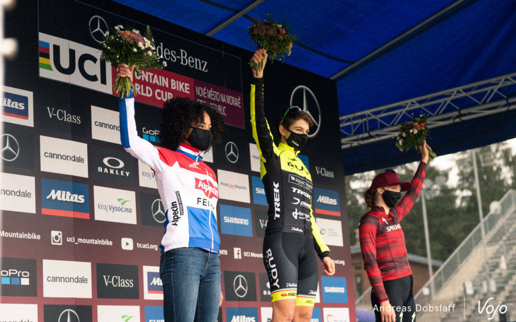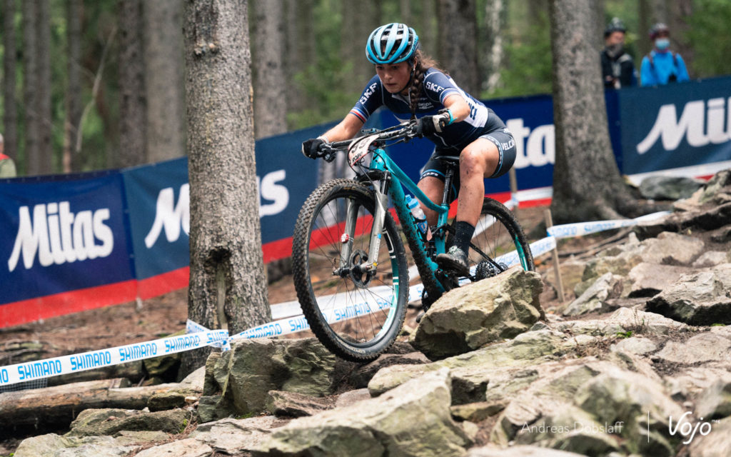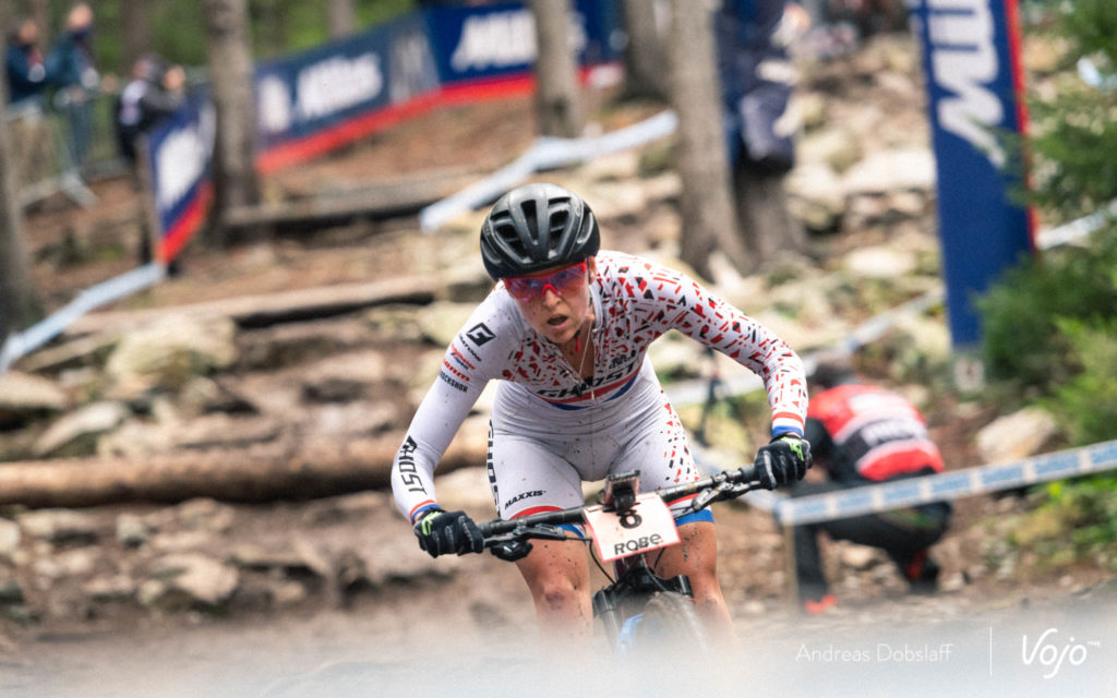 Néanmoins, la course de Stigger est à saluer car la jeune Autrichienne n’a que 20 ans et devrait elle aussi courir chez les Espoirs (ou U23, 19-22 ans). Championne du Monde sur route et en XC chez les Juniors, déjà au rendez-vous chez les Espoirs pour sa première saison dans la catégorie l’année dernière, elle a demandé en 2020 à être surclassée pour la même raison que Loana Lecomte. Notons qu’elle roulait en semi-rigide, un choix pour le moins inhabituel à Nove Mesto.