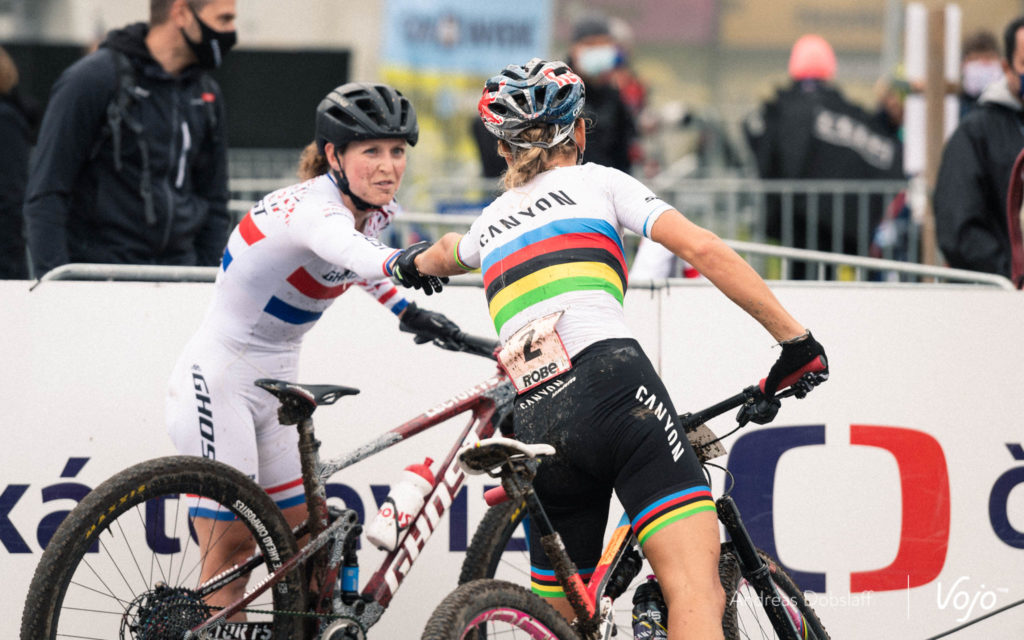 Julie Bresset est 16e, un beau résultat pour la coéquipière de Loana Lecomte. Elle signe d’ailleurs sa meilleure performance de ces trois dernières années, après sa 17e place à La Bresse en 2018. Elle devance Jolanda Neff, qui aura un peu reculé en fin de course, tandis qu’Annika Langvad prend la 19e place.
