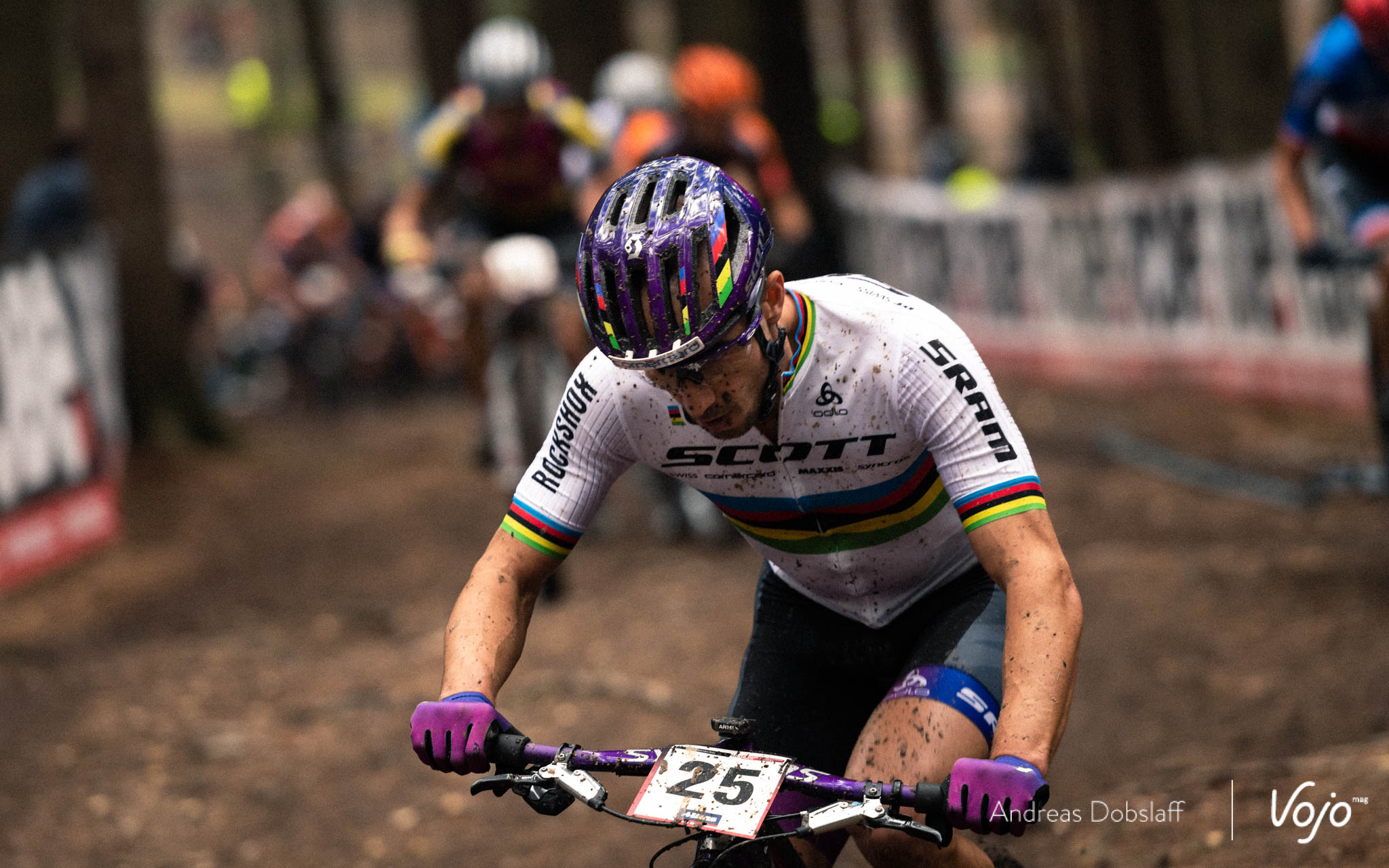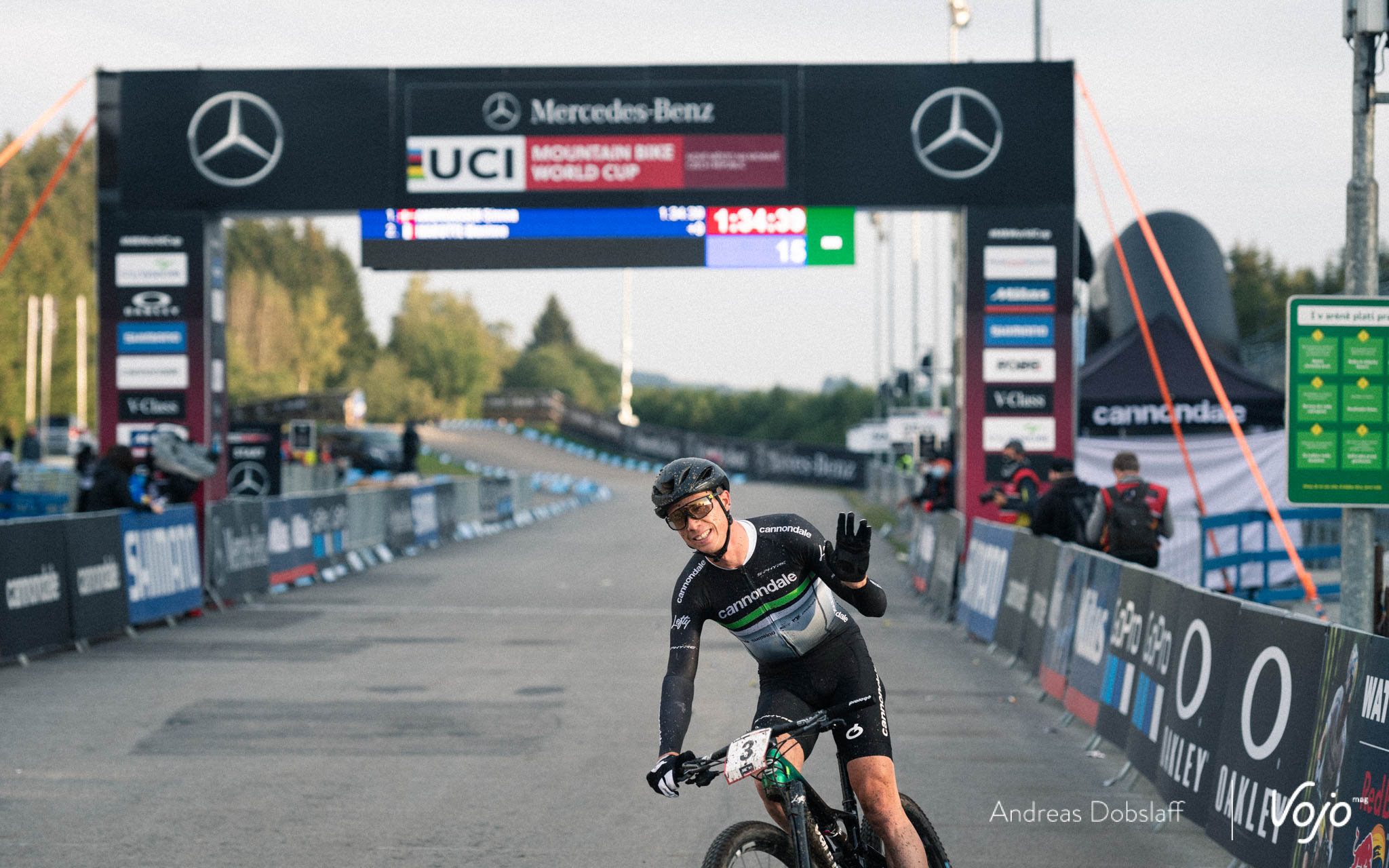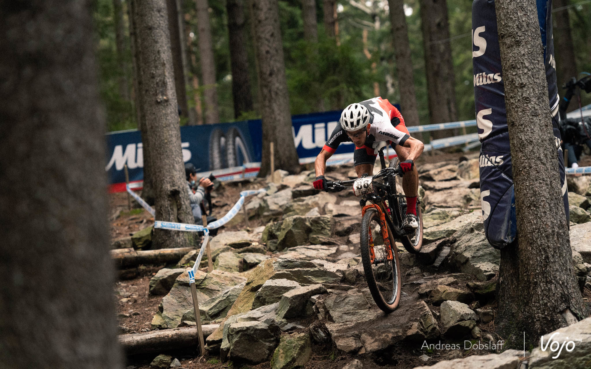 Dès le départ, le champion du Monde montre ses intentions et pointe en tête du peloton au sommet de la première bosse de la start-loop. Il faut dire qu’il n’est plus qu’à une victoire en coupe du Monde du record de Julien Absalon et qu’il a clairement annoncé que c’était un objectif pour cette saison.