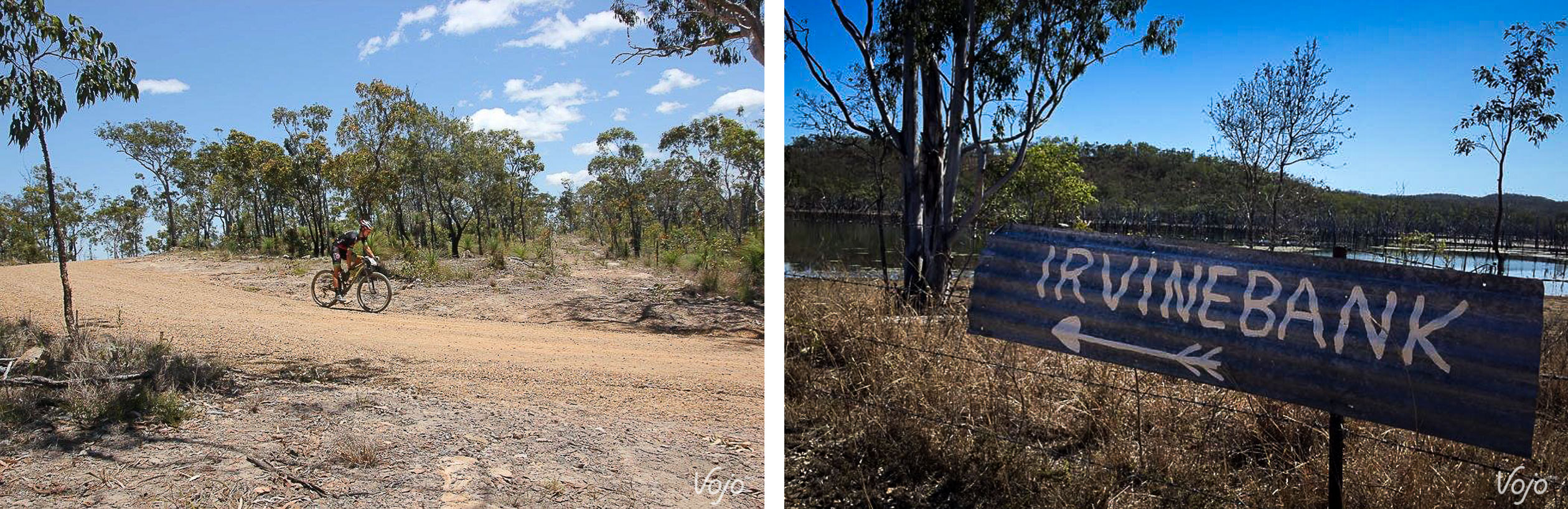 L’étape 5 nous fait quelque peu voyager dans le passé au sein d’une petite bourgade digne des meilleurs westerns. Le temps semble s’être arrêté il y a quelques années. Une route, un musée à l’abandon, un pub dont le crocodile trophy vient animer la journée des quelques habitués. Le soleil se couche dans une rougeoyante teinte pendant que l’autochtone tente de maintenir un dialogue avec un accent incompréhensible. Avant d’arriver dans la désertique ville d’Irvinebank, nous avons encore posé nos roues dans la Rainforest pour quelques montées avant d’entamer une portion plate de 40 kilomètres. Pour la première fois de la course, la chaleur devient très compliquée à gérer. La transpiration colle sur notre peau la poussière qui émane de notre passage. Il devait y avoir un ruisseau en contrebas de la piste que nous empruntons, mais son lit n’est plus qu’un amas de cailloux. Seules quelques flaques, ici ou là, témoignent de son lointain passé plus torrentiel.