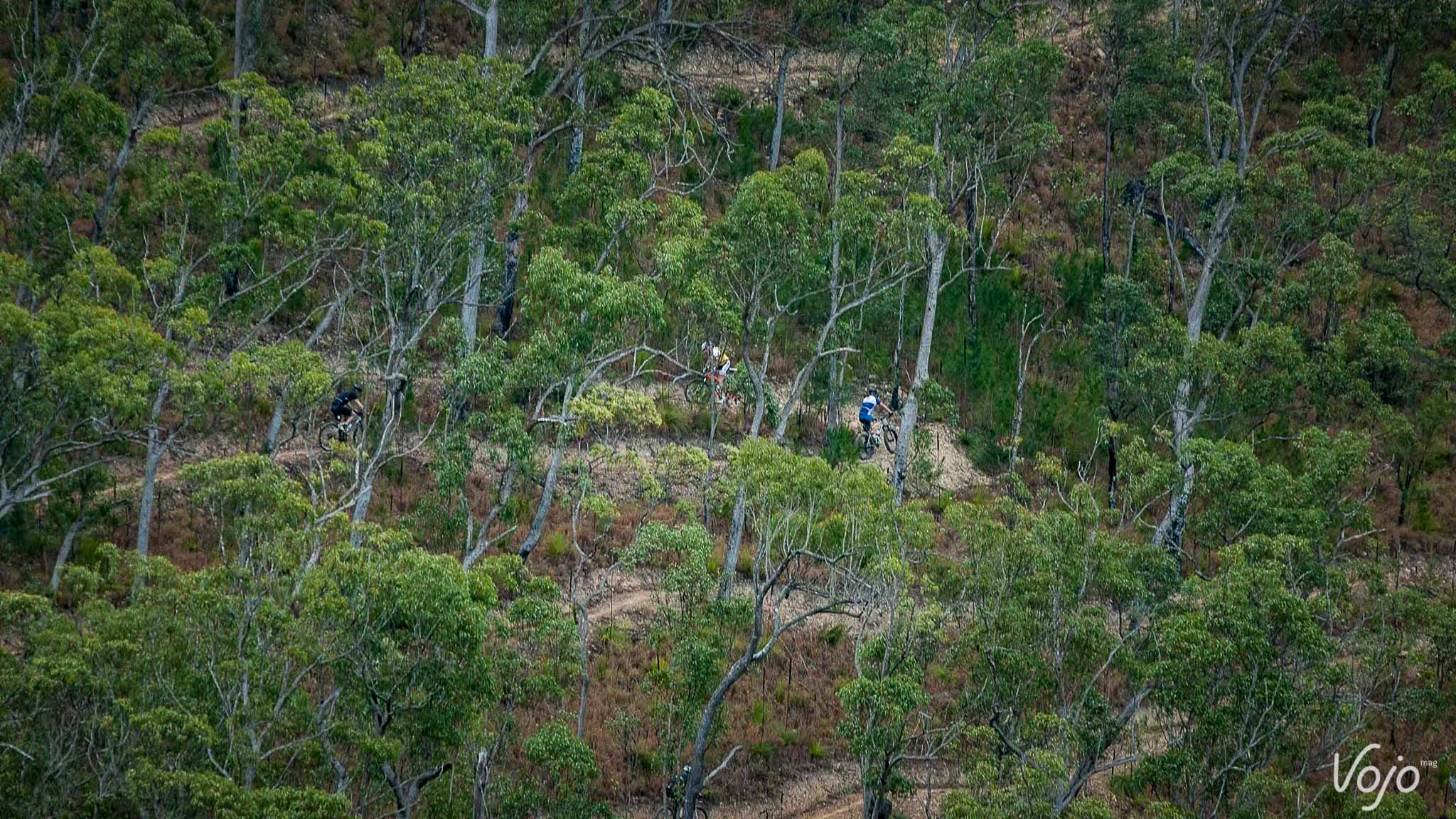 L’érosion physique est inévitable et la dernière montée va faire de terribles dégâts. Une vingtaine de kilomètres et 600 mètres de dénivelé séparent le dernier ravitaillement de l’arrivée. Mais qu’ils vont être longs ! La pente frise parfois avec les 25%. Bref chacun se penche sur sa machine, espérant que la douleur soit brève. Les australiens ne s’embêtent pas avec des cols, nous grimpons au point culminant directement. Si le point de vue n’est que plus beau, l’effort physique nous fait vraiment regretter ce choix.