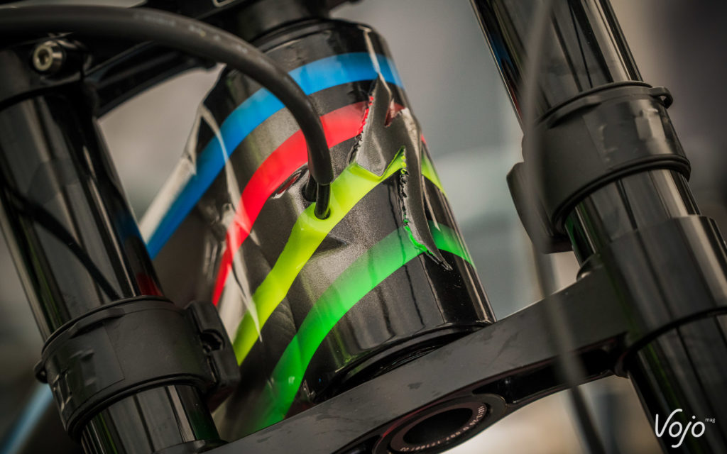 Au niveau de l’amortisseur, le team fait confiance à l’artisanat français, avec Fast Suspension. Le fourche provient de chez Suntour, dont le service course est aussi situé en France.